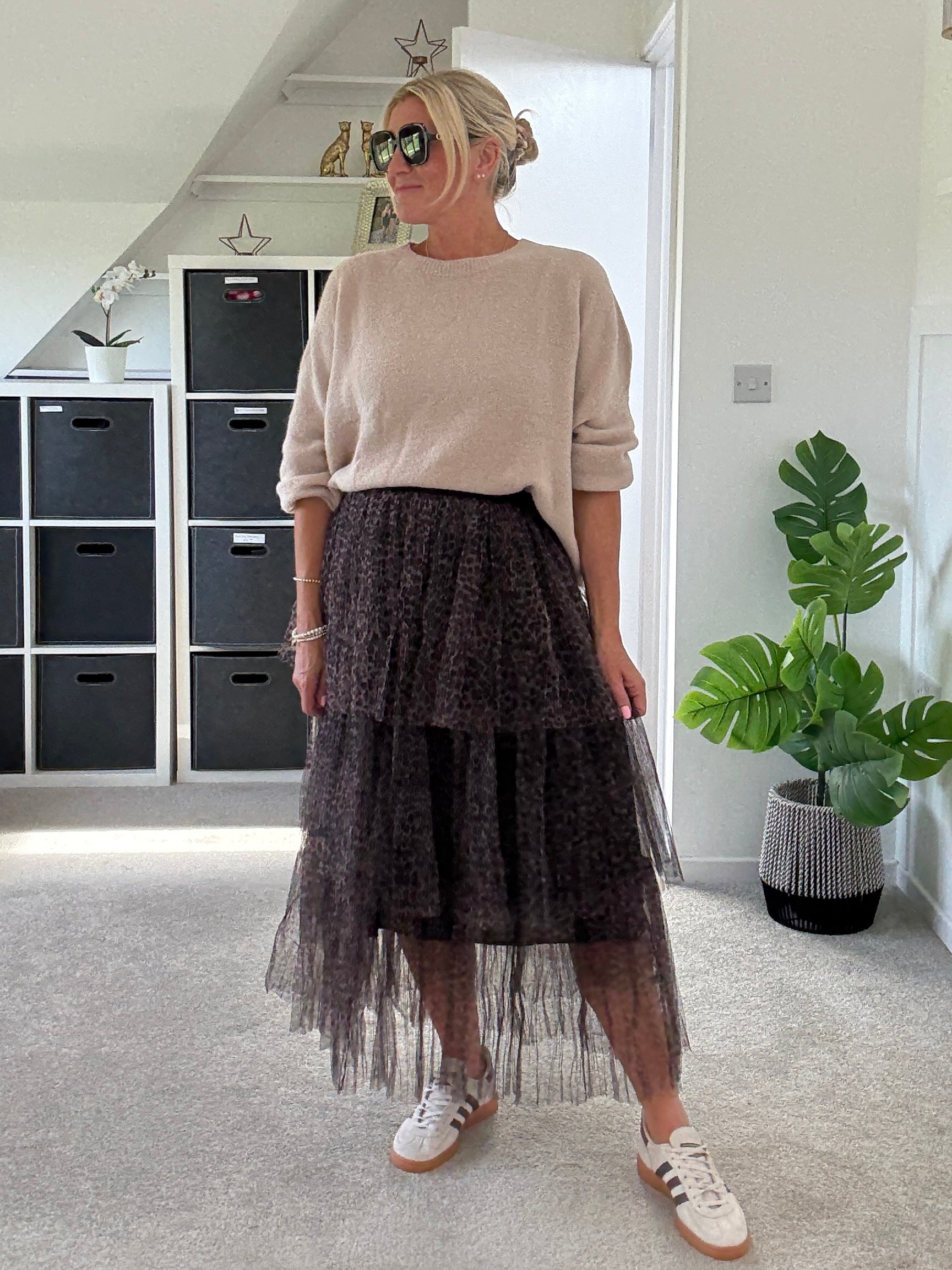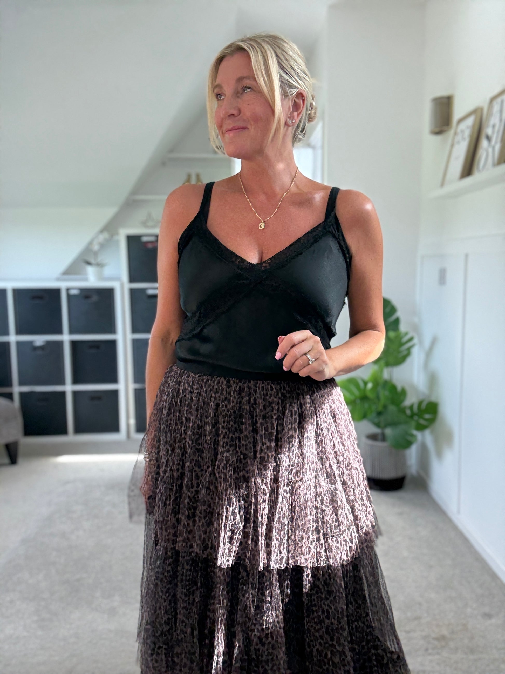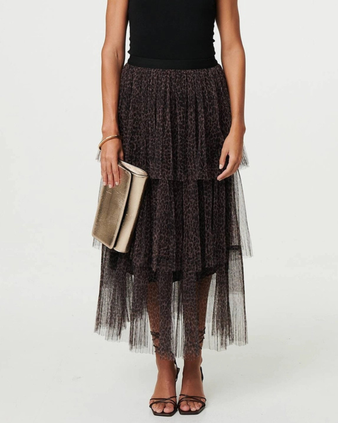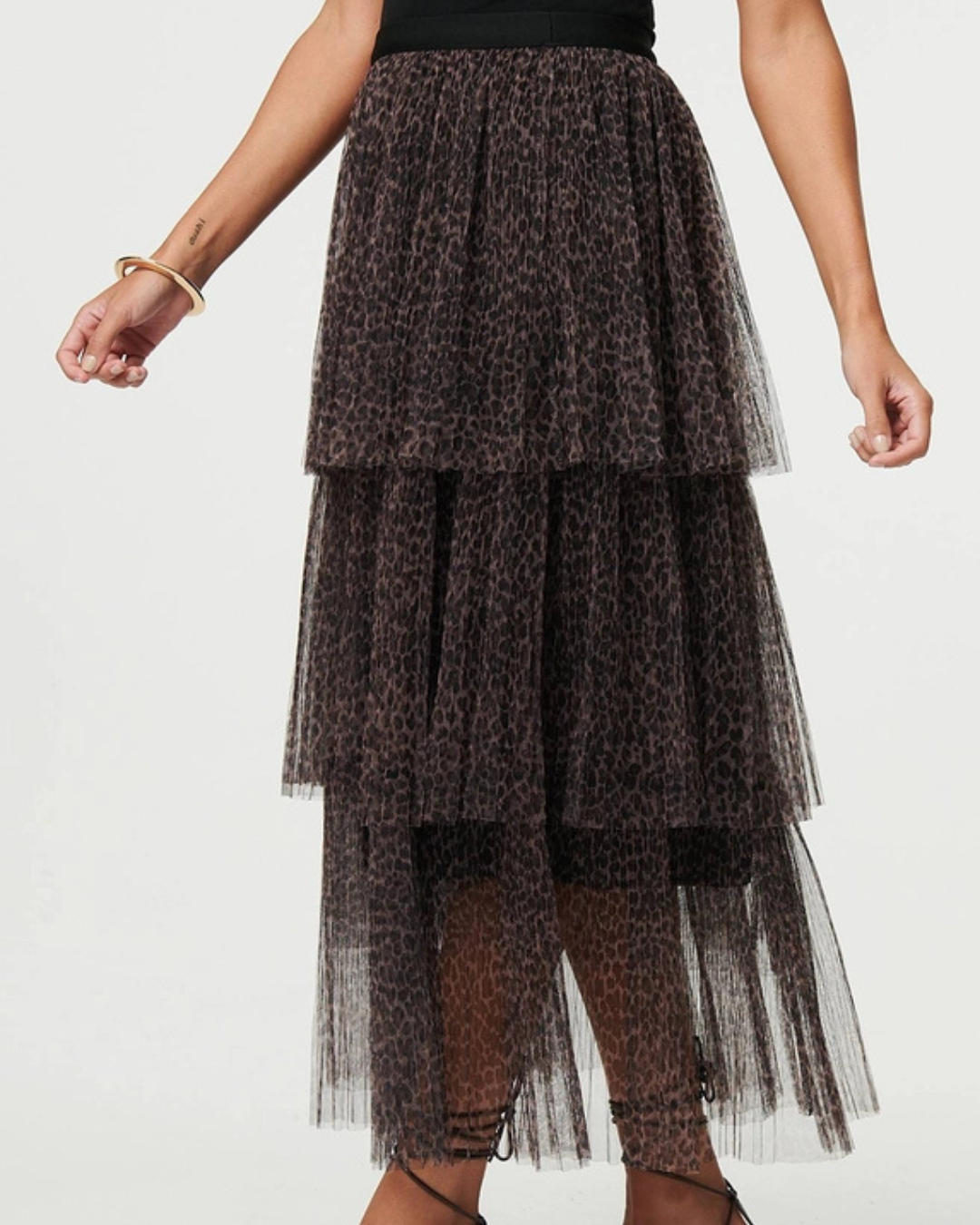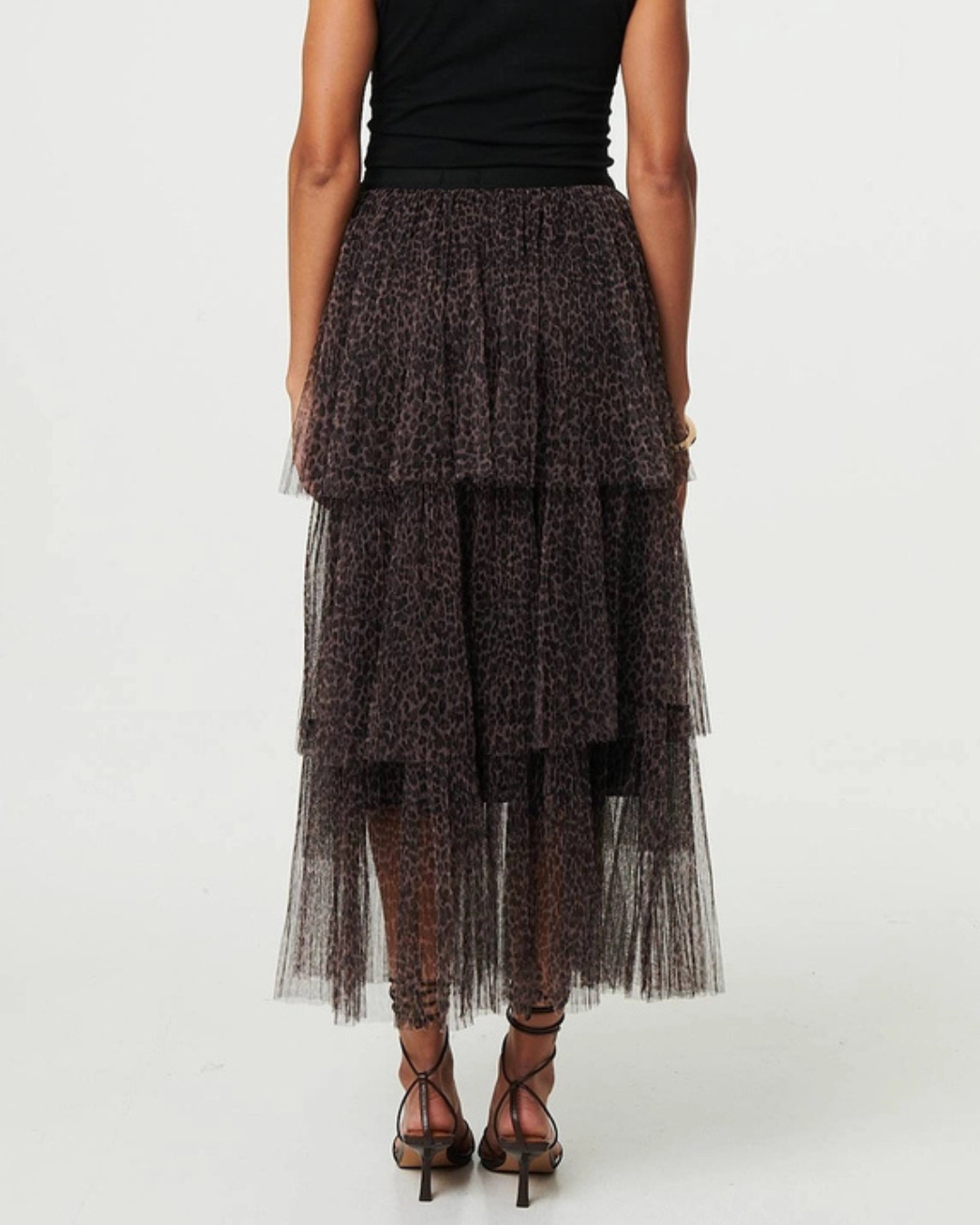 Stella Tiered Leopard Print Tulle Maxi Skirt