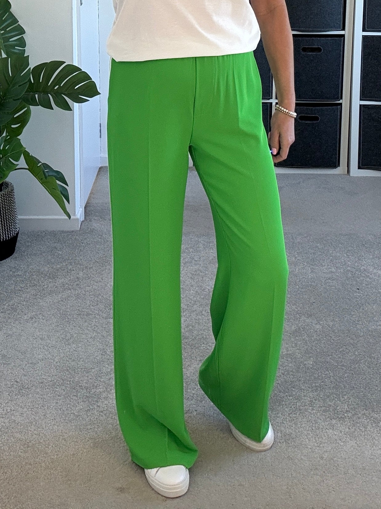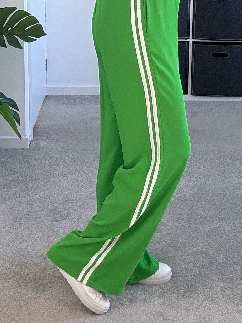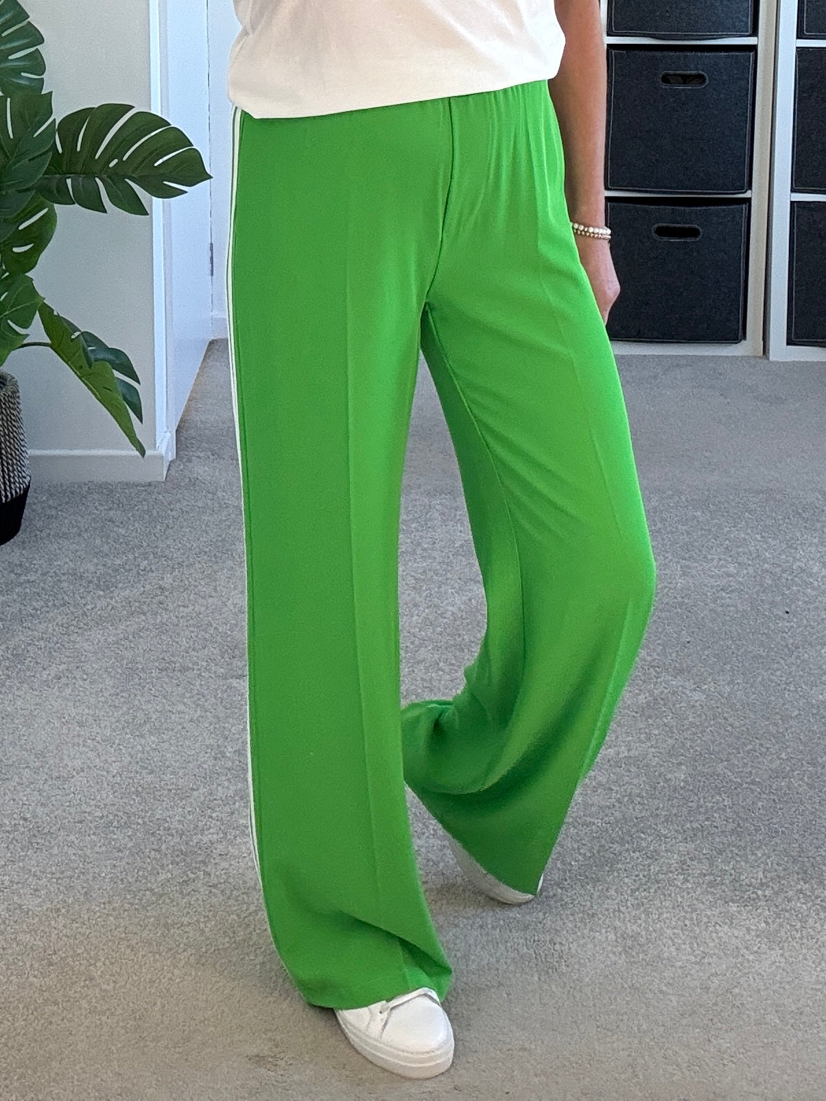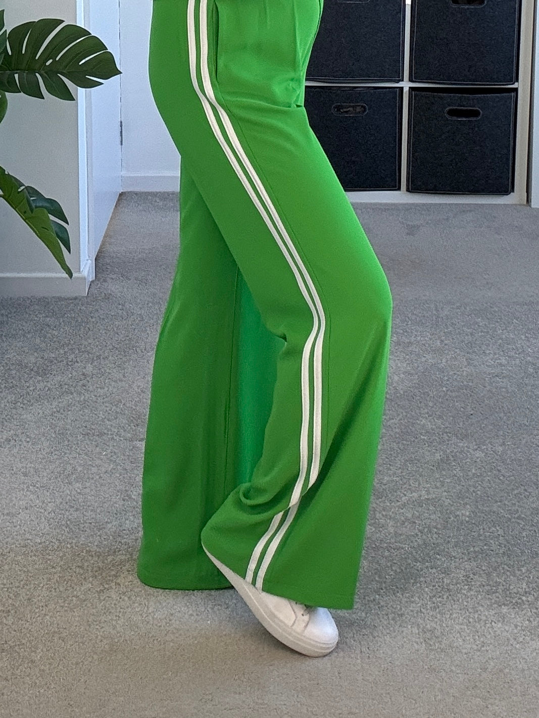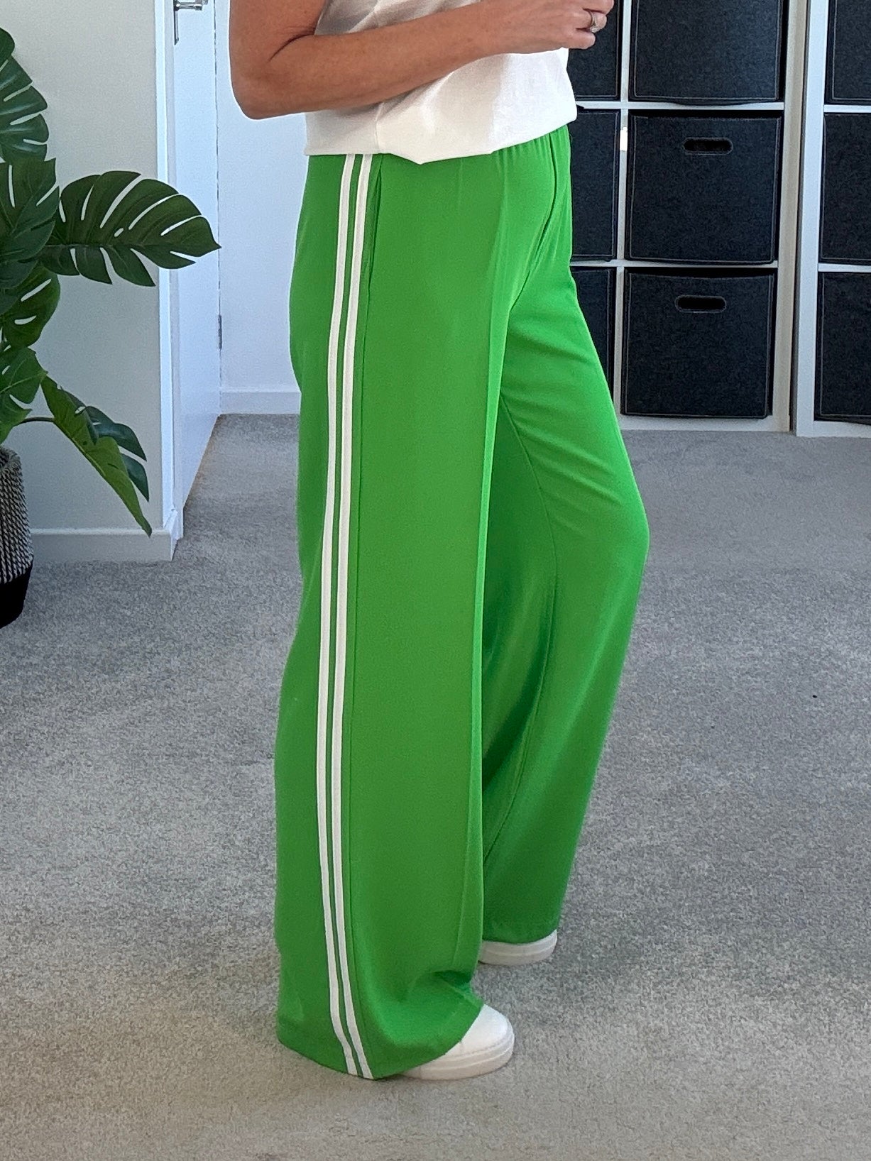 Stunning loose fit wide leg trousers, with comfy pull on elasticated waist, faux fly front, front and back pleat and side pockets. With two satin side stripe creating a flattering silhouette and they hang beautifully. They are such a great cut and amazing quality....
