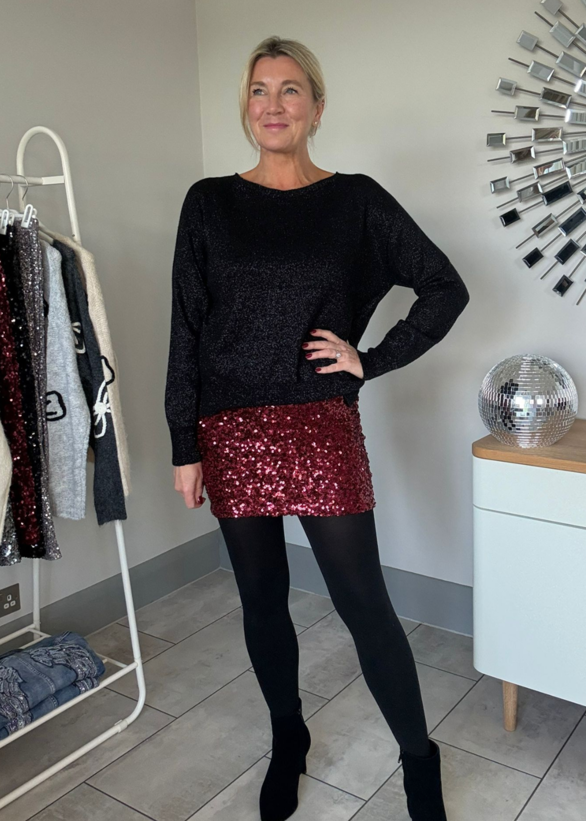 Super sparkly sequin mini skirt. Perfect for the party season! Team with opaque tights, heels and my Ava Black/Silver Lurex Glitter Top or go full on with sequin jacket. With comfortable pull on elasticated waist and also fully lined.