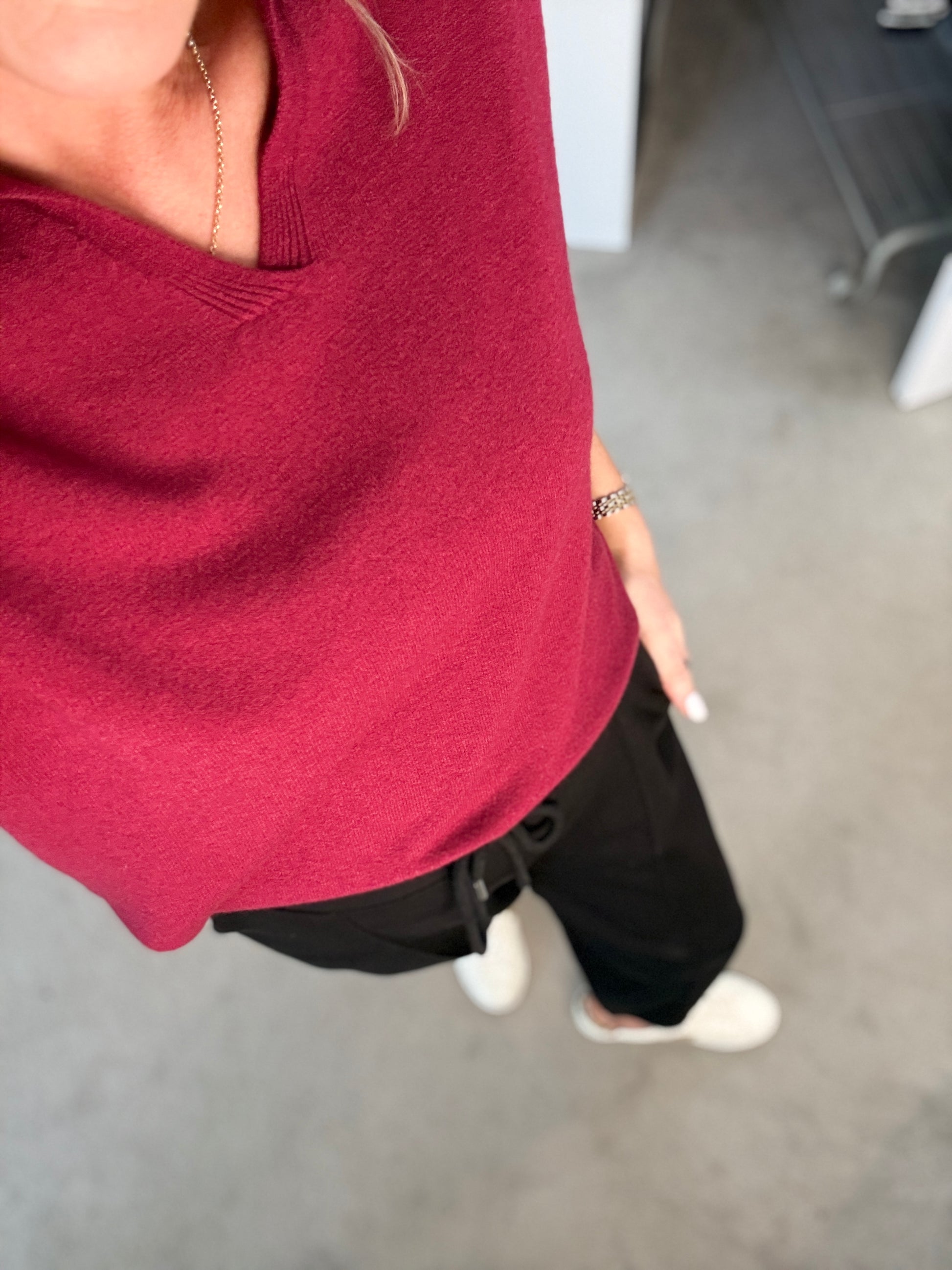 This lightweight soft knit features a relaxed, easy fit with a V-neck and polo collar for a fresh, on-trend preppy feel.
