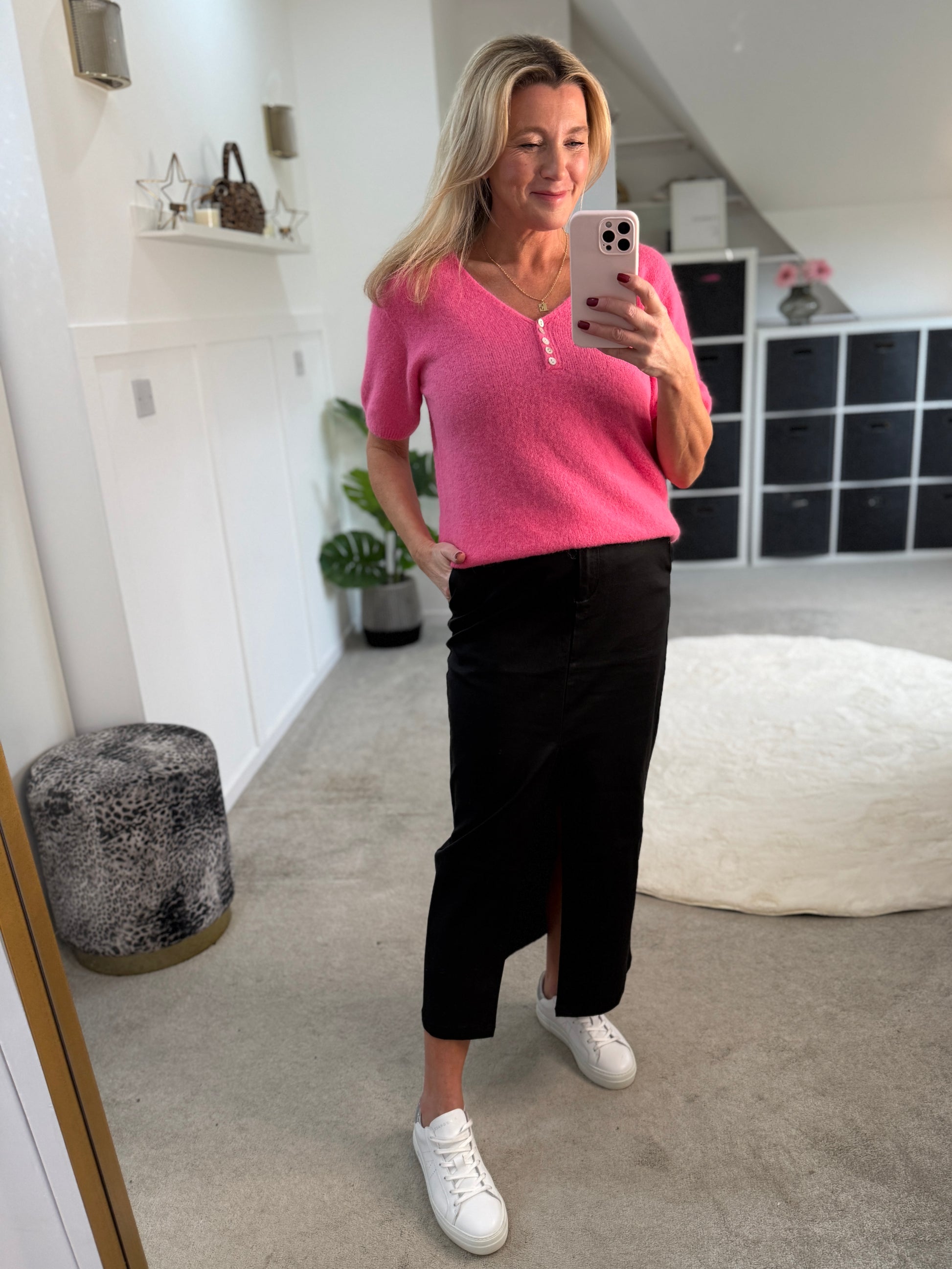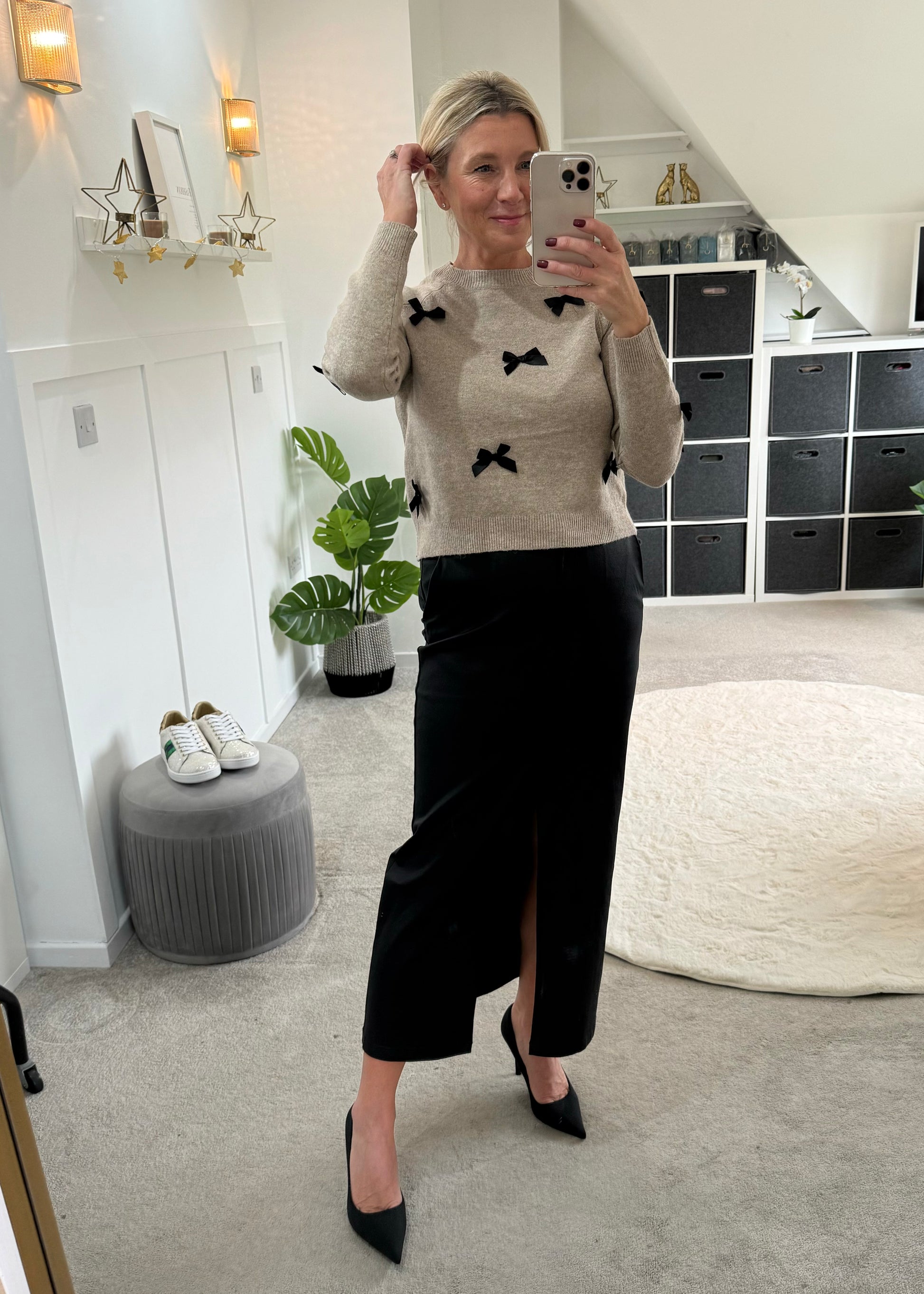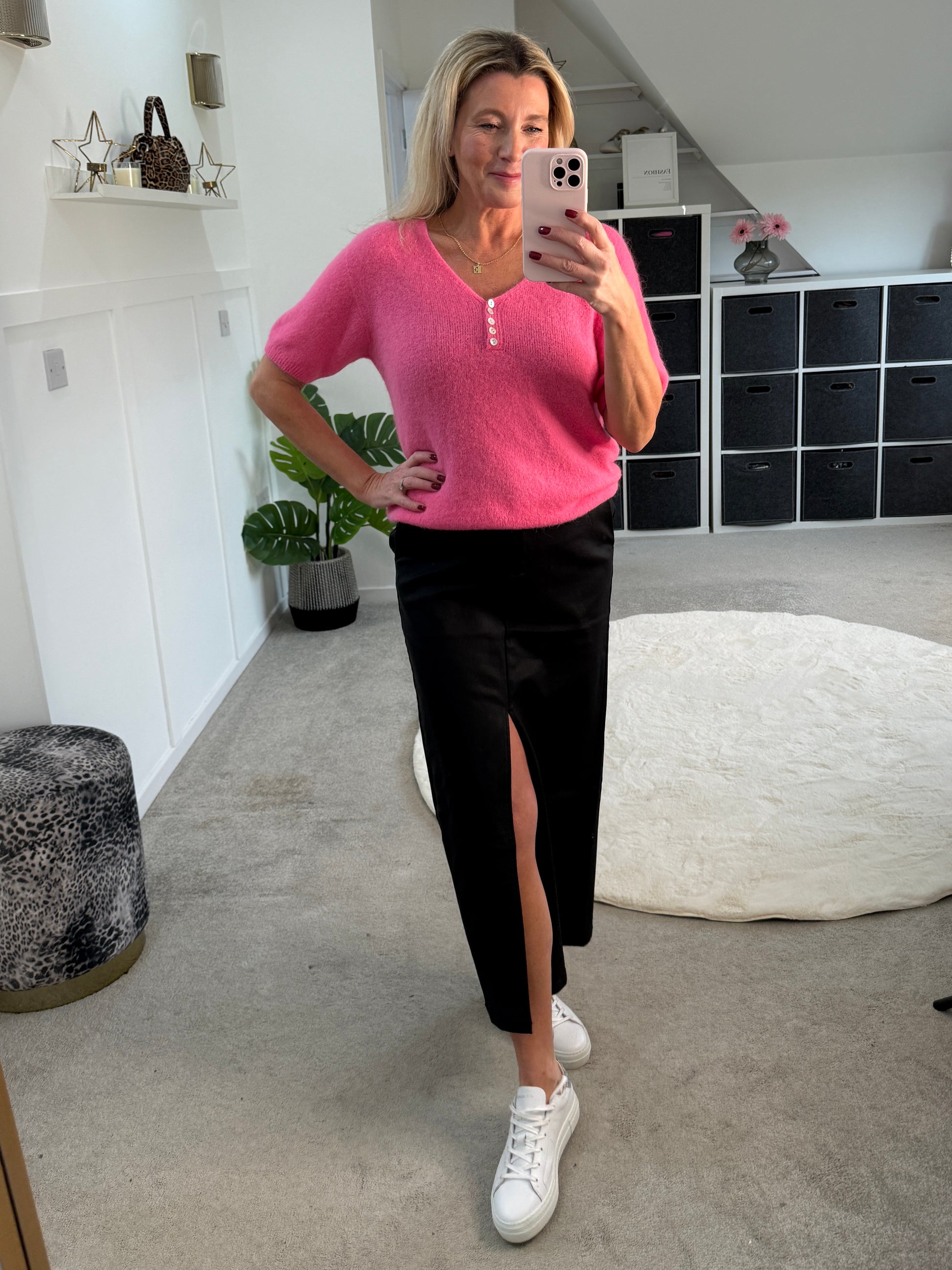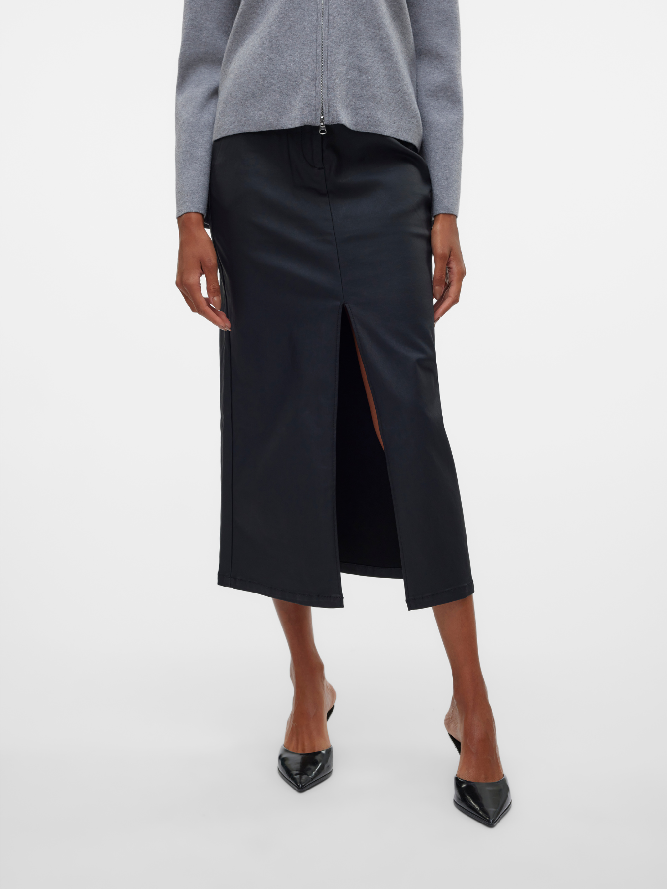 Super cool mid waisted pencil skirt, featuring a front fly zip and hook and eye fastening and front spilt. Really gorgeous quality from Vero Moda. Style this trendy skirt with a simple T-shirt or oversized Jumper or cardi for a stunning look. Add tights, boots, and a cool bomber jacket on colder days. Dress up with a sparkly jumper/blouse and heels!