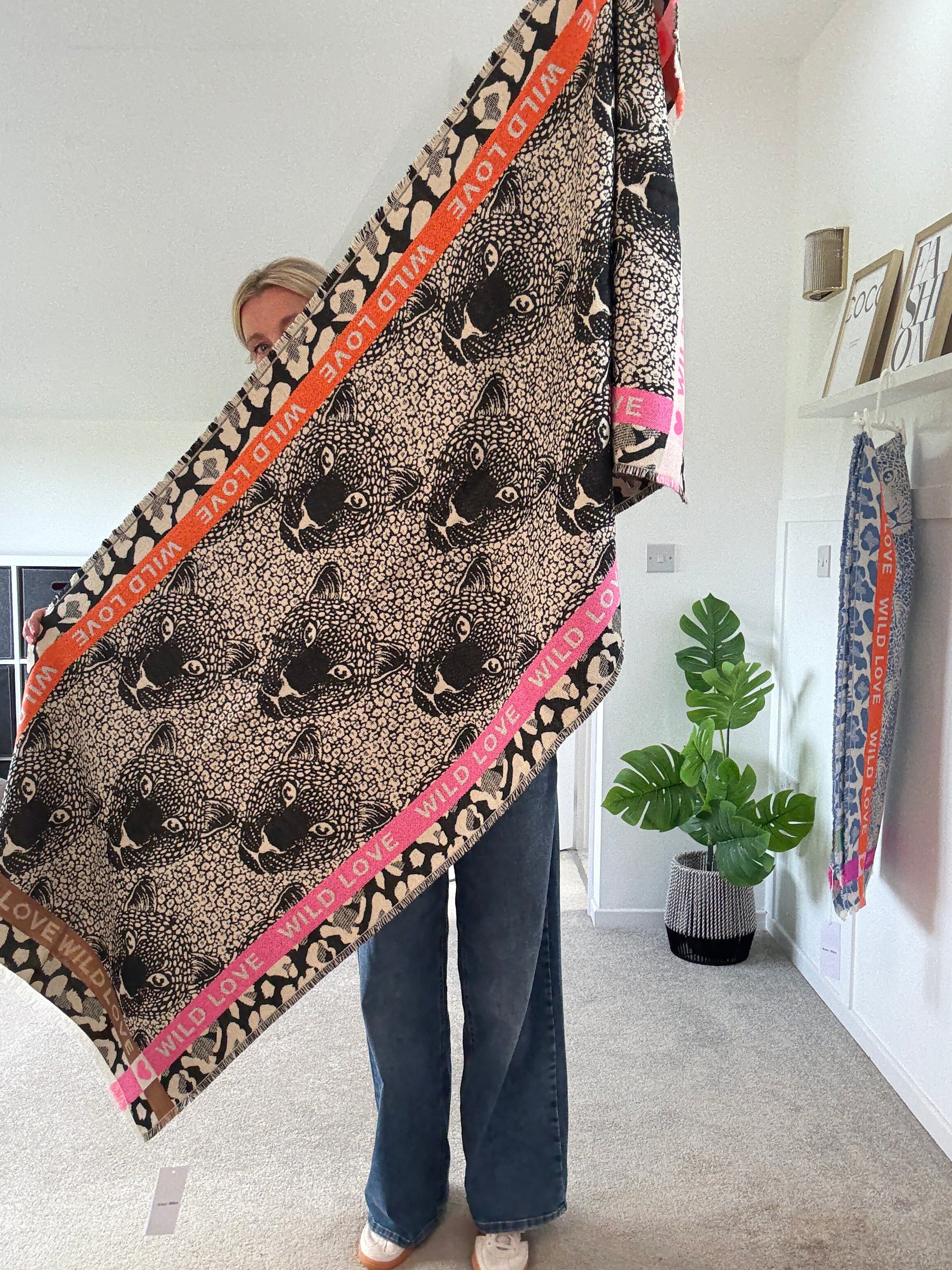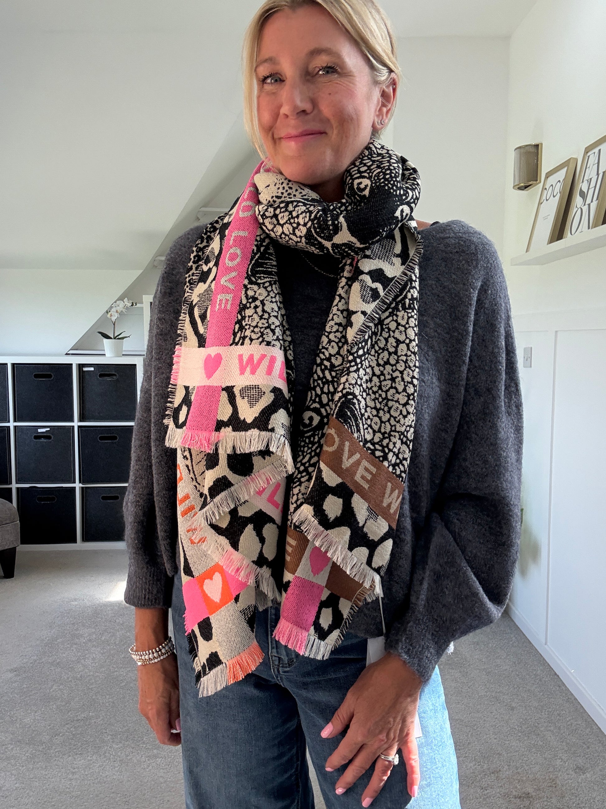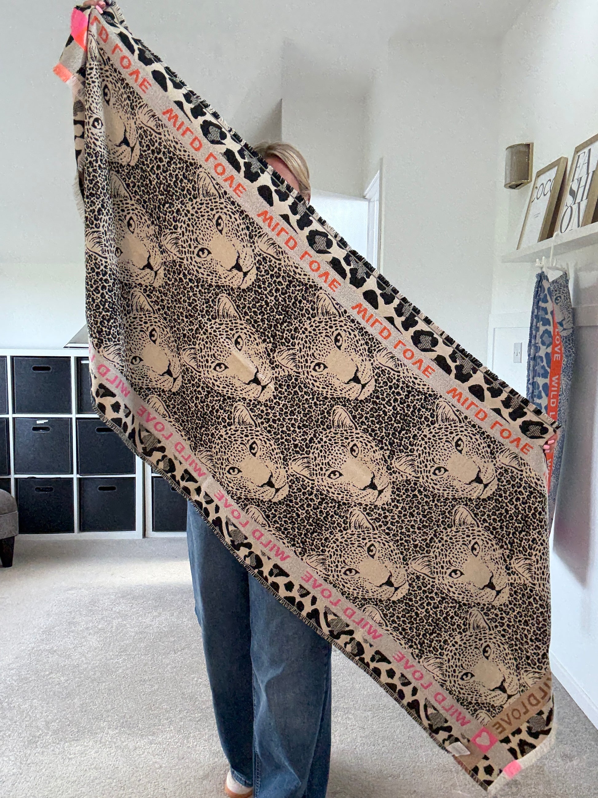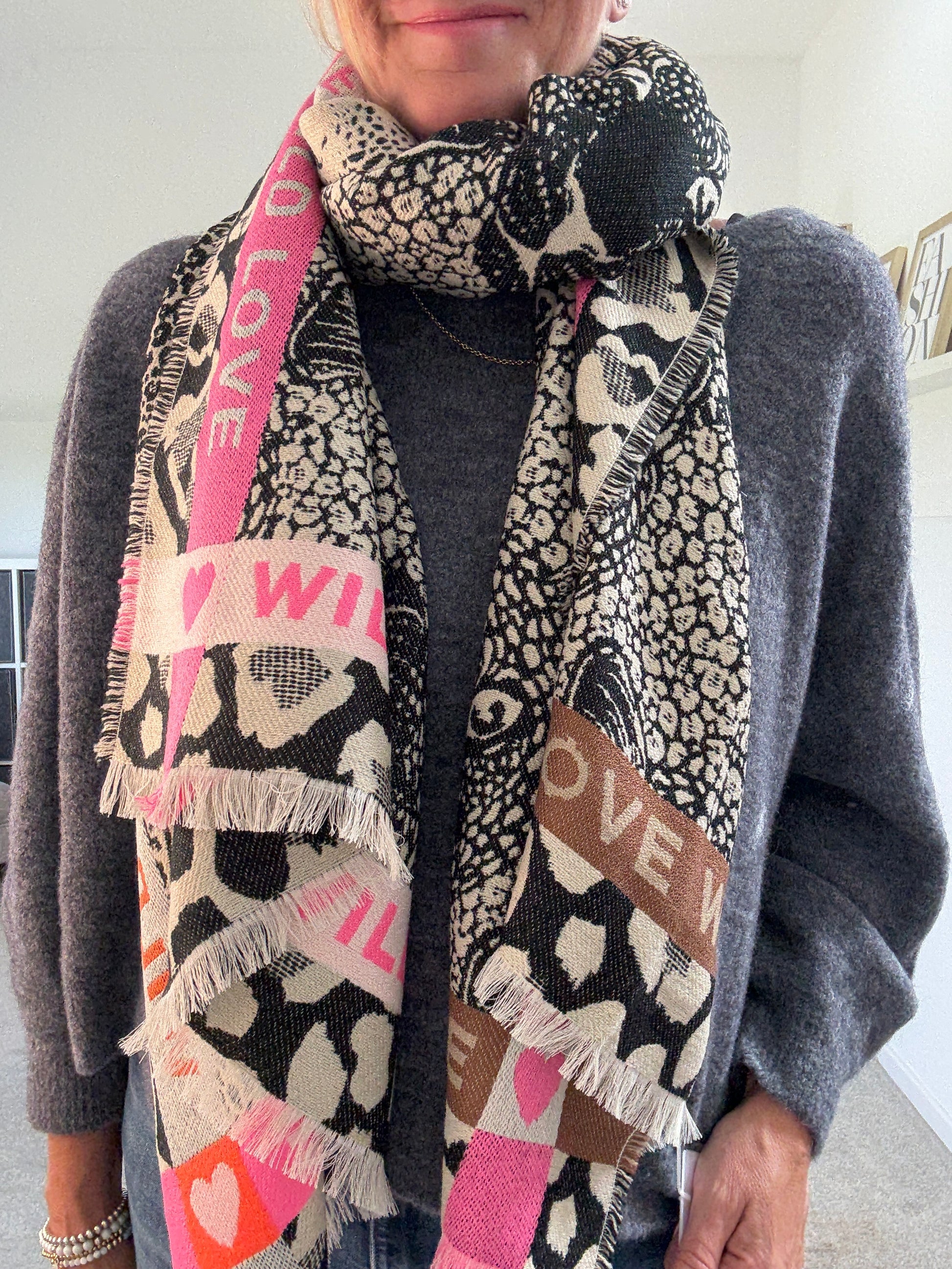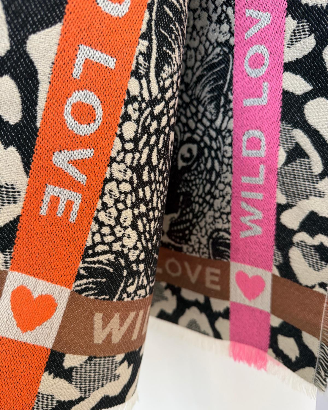 Wrap yourself in bold style with this statement oversized "Wild Love" scarf.
