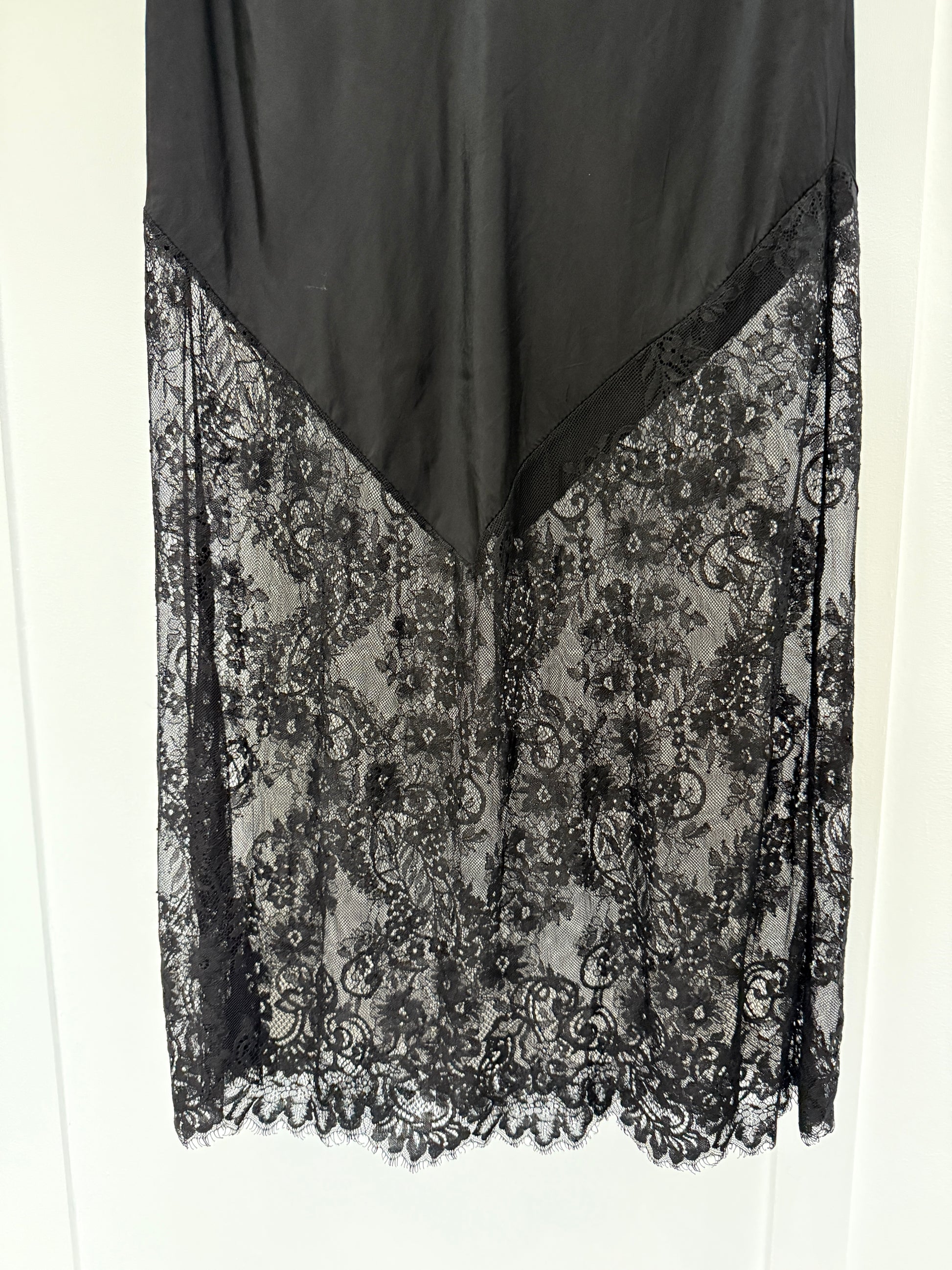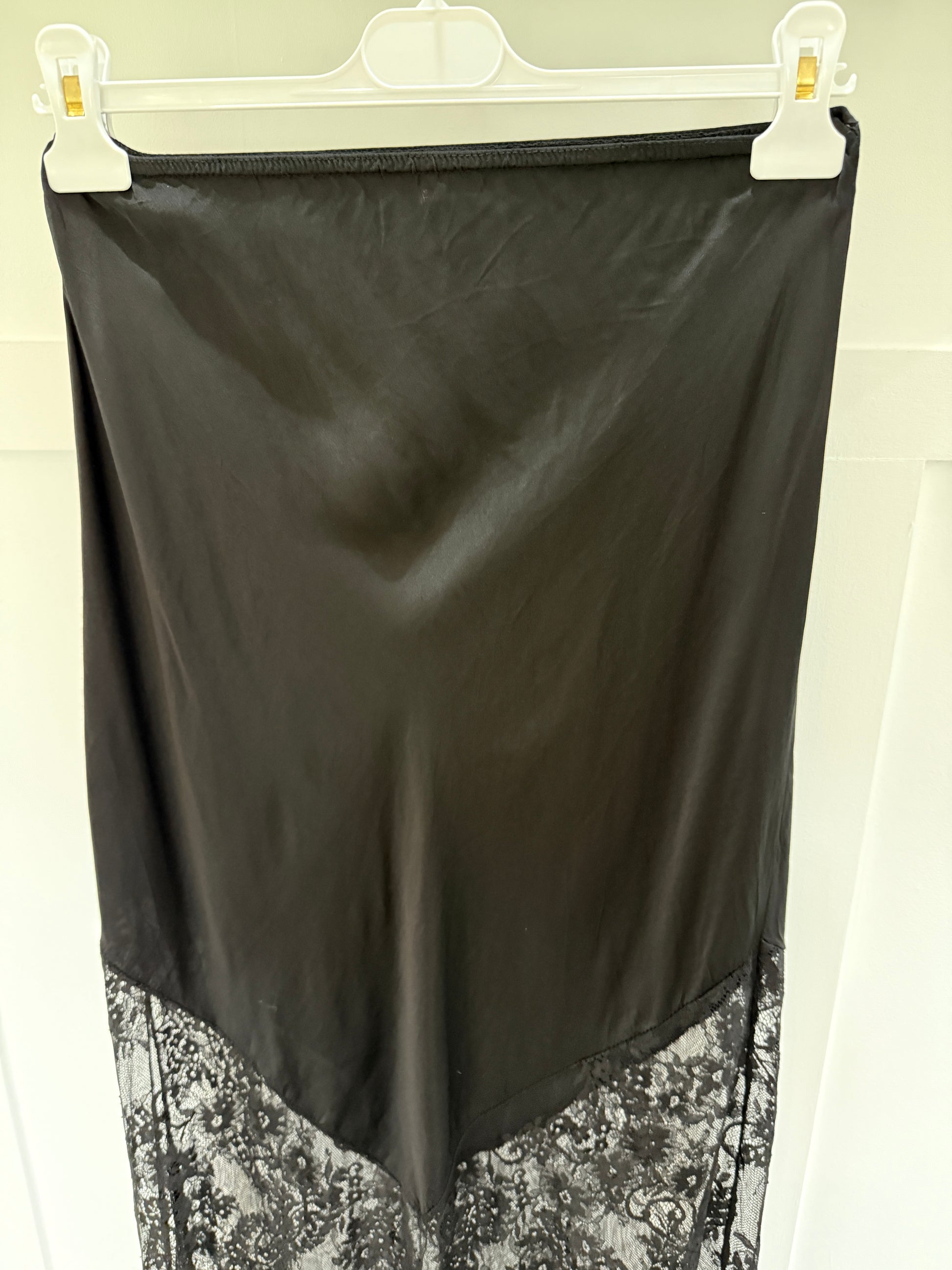 Black Satin Lace Detail Maxi Slip Skirt