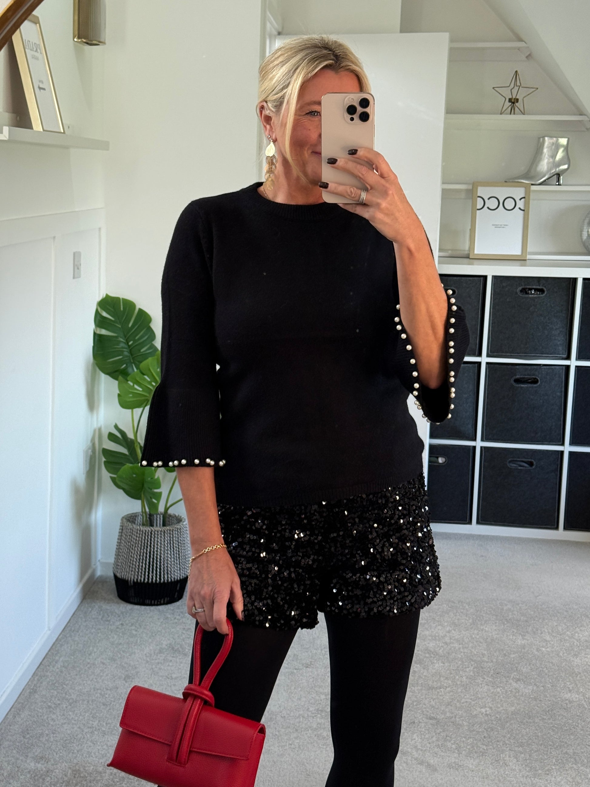 Elevate your everyday style with this super-soft jumper, featuring elegant pearl detailing on chic fluted sleeves.