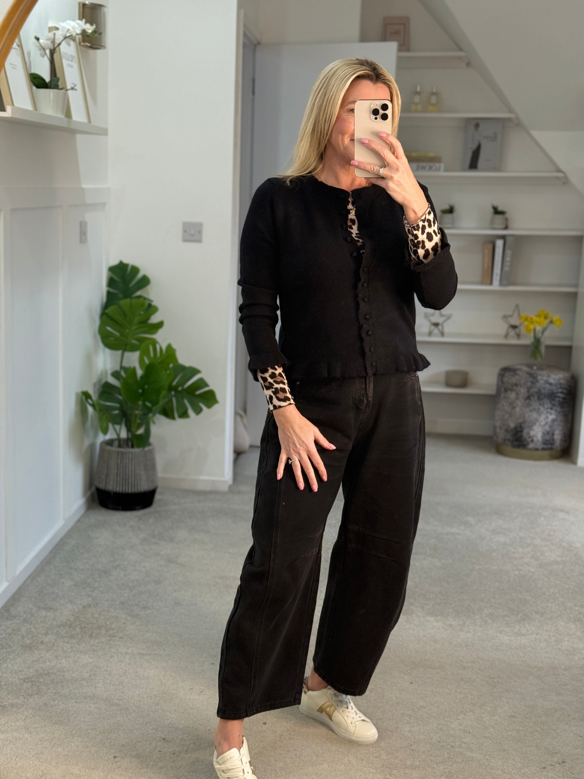 Black Ruffled Buttoned Cardigan