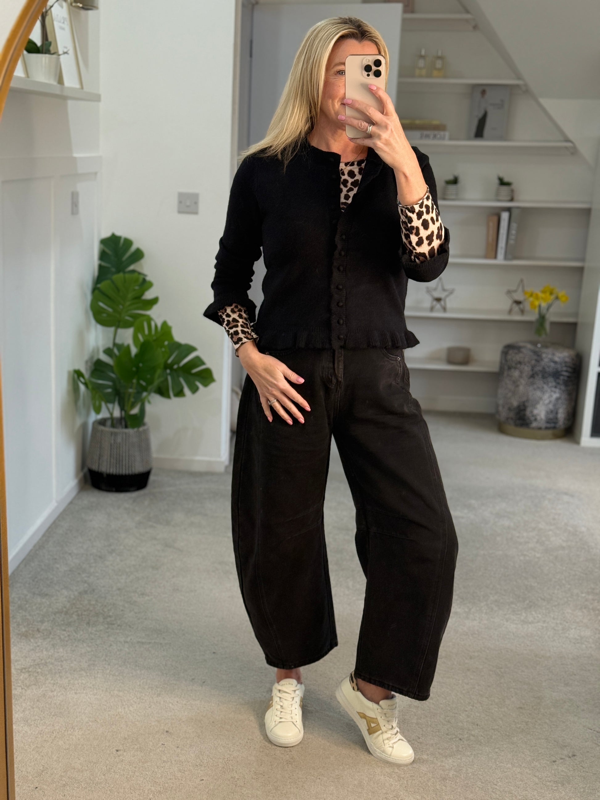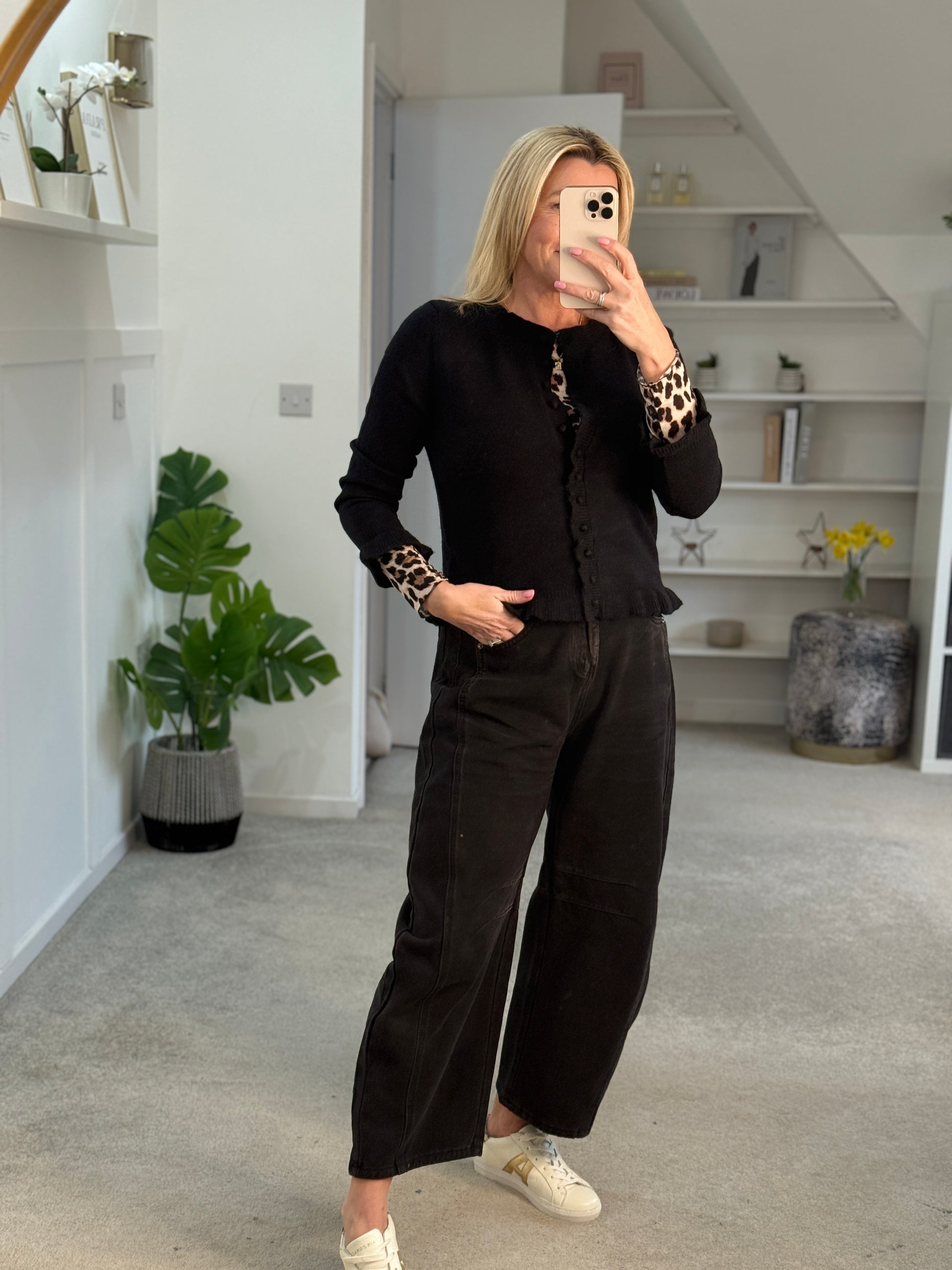 Style it with the Leopard Cashmere Blend Layering Top and slouchy jeans for an effortless look.