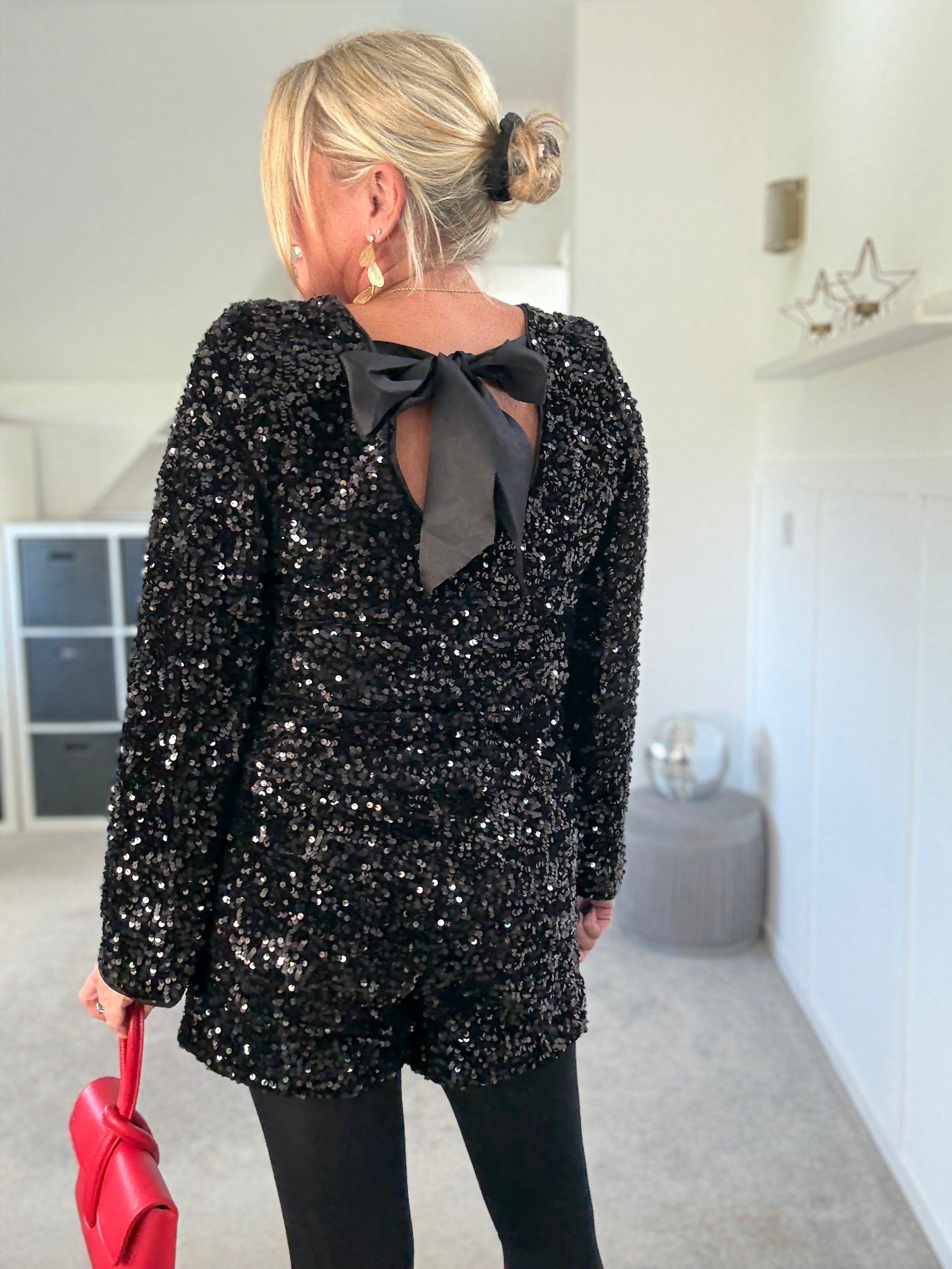 Style them with the matching Sequin Satin Bow Back Top for a head-to-toe statement look, or pair with a crisp white shirt, or oversized jumper for effortless party chic!