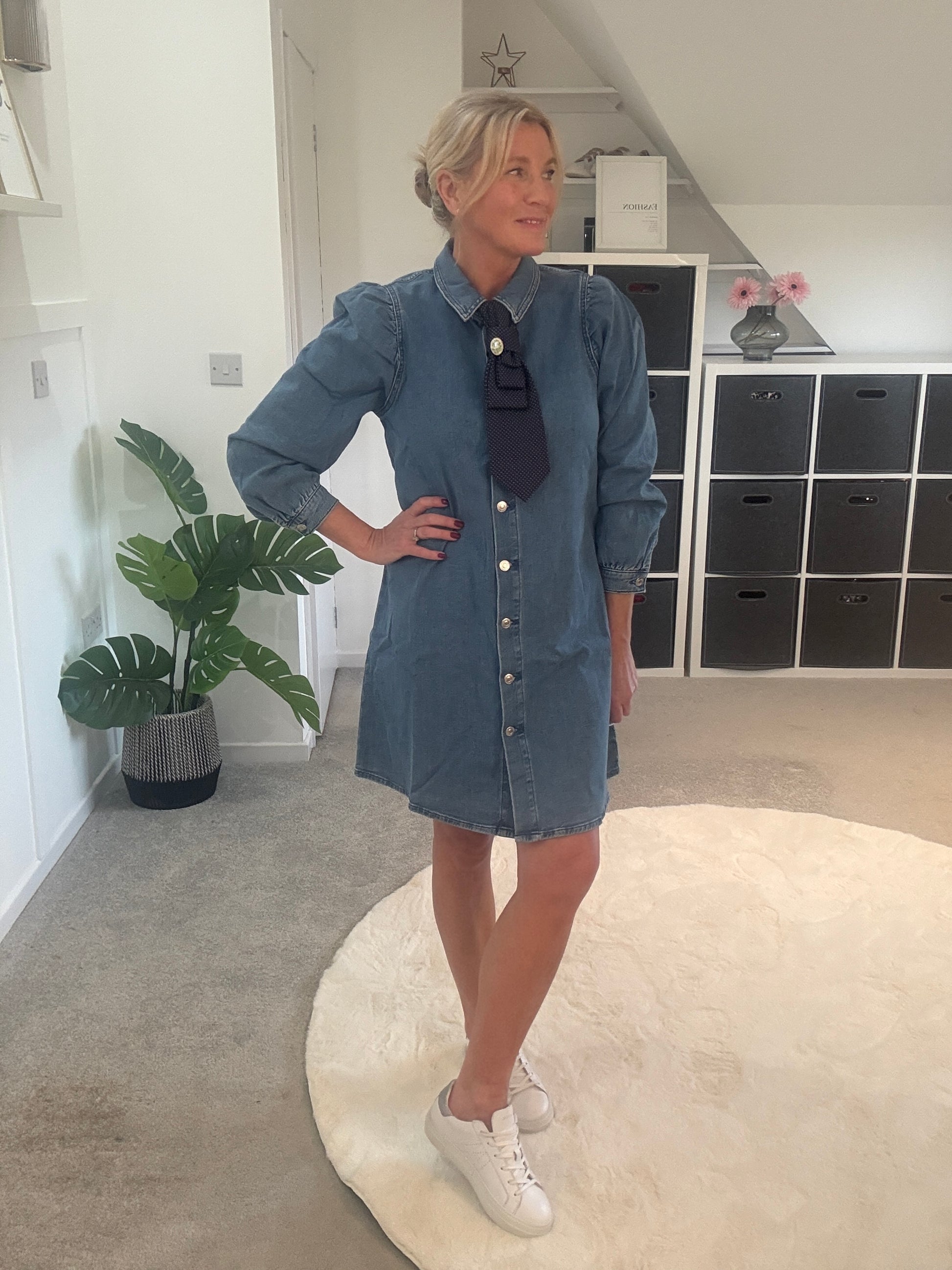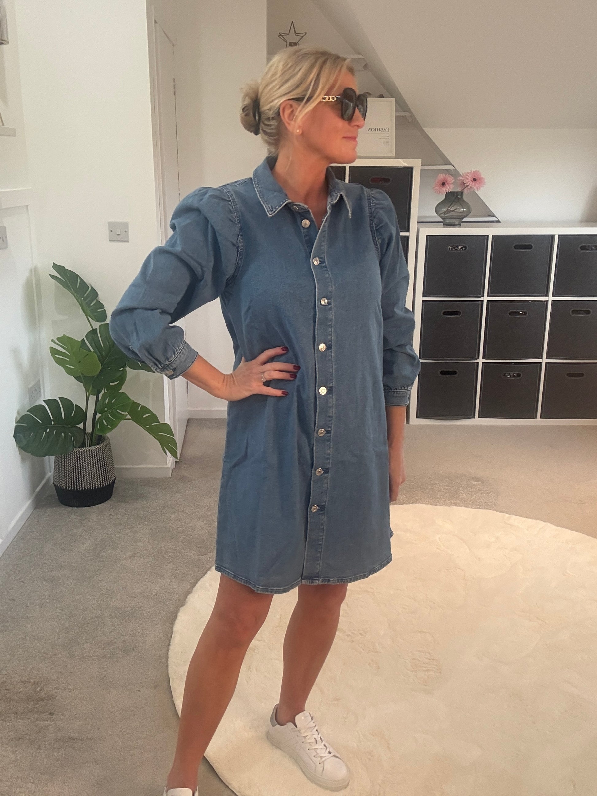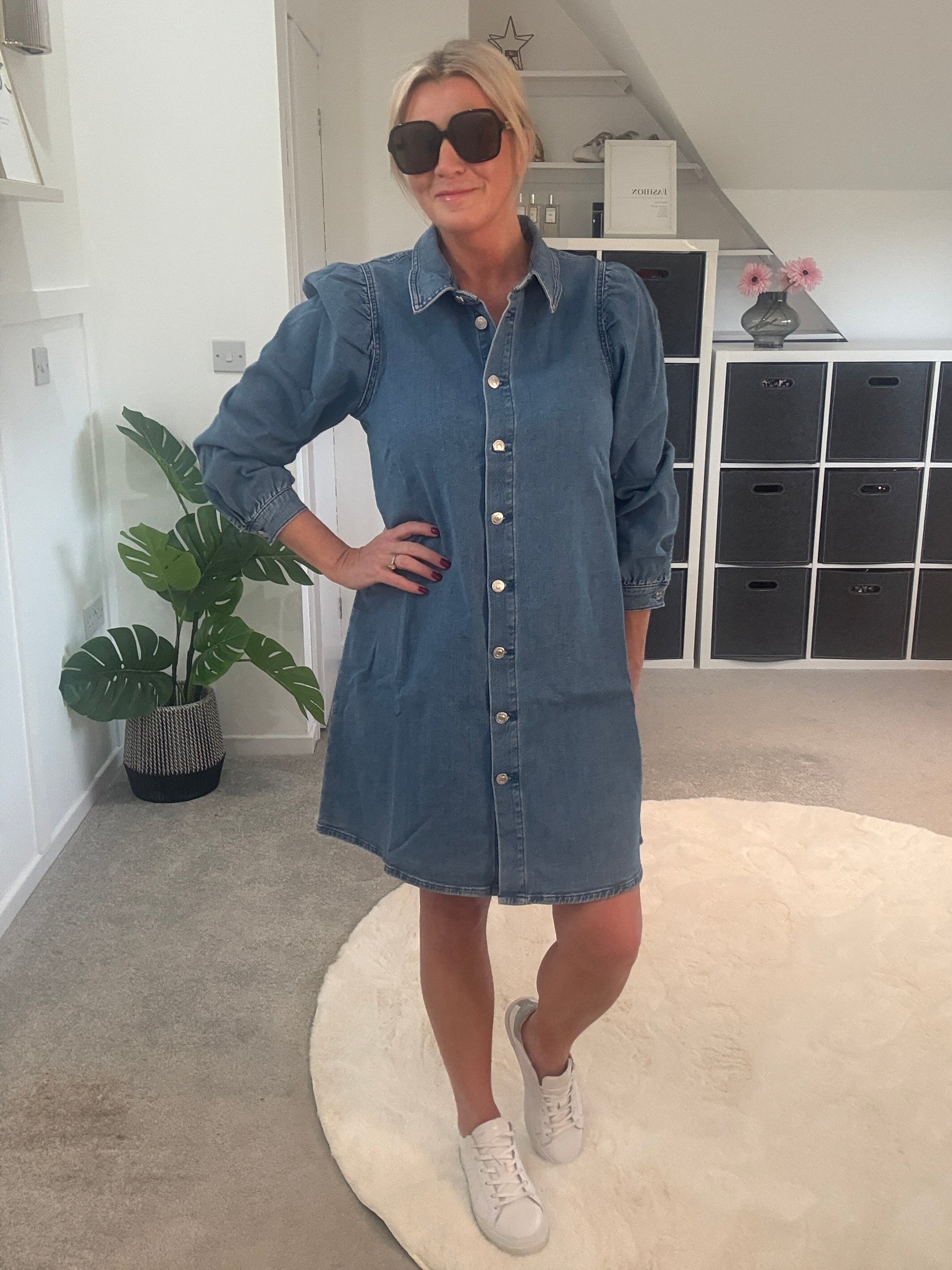 Gorgeous Denim shirt Dress by ONLY. Classic shirt collar and button down front and super cute puff sleeve, AND has a slight stretch so will be really comfy to wear. This versatile dress with be a go to staple and can be styled with tights and ankle boots, for now and sandals/trainers in Spring/Summer.