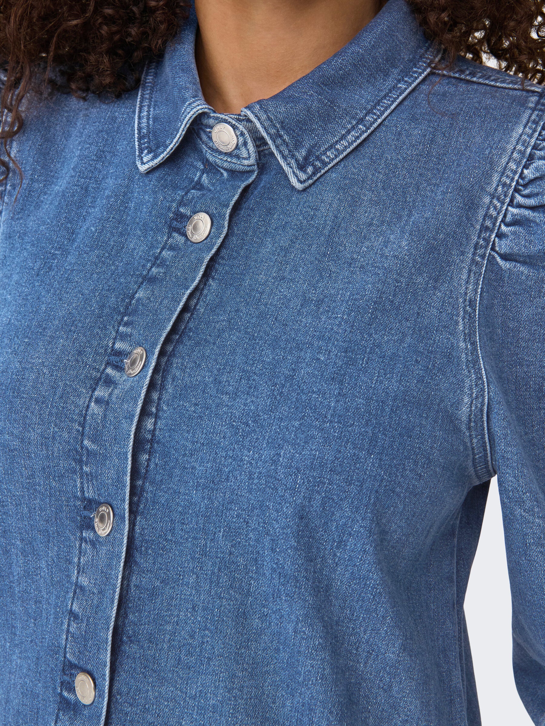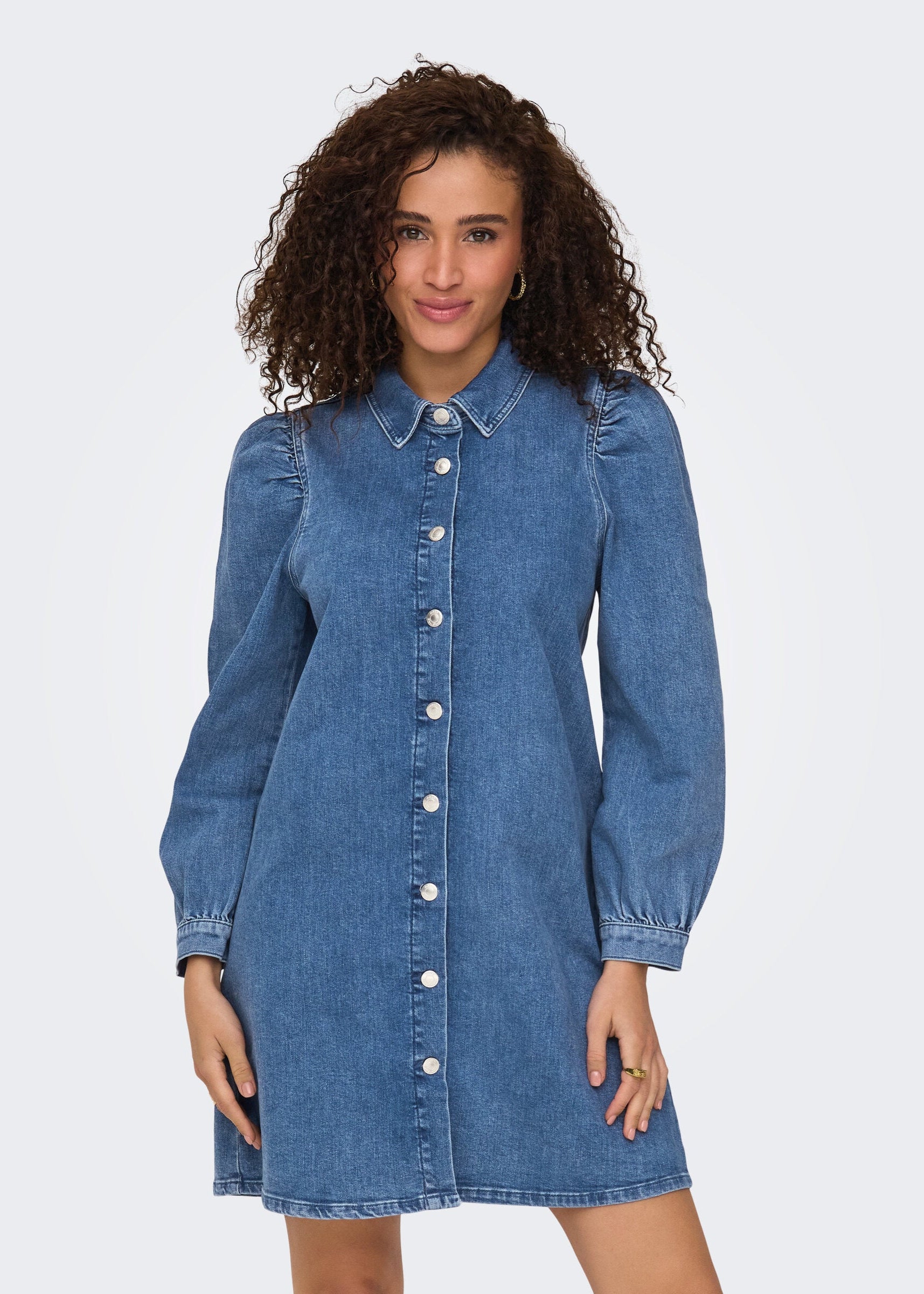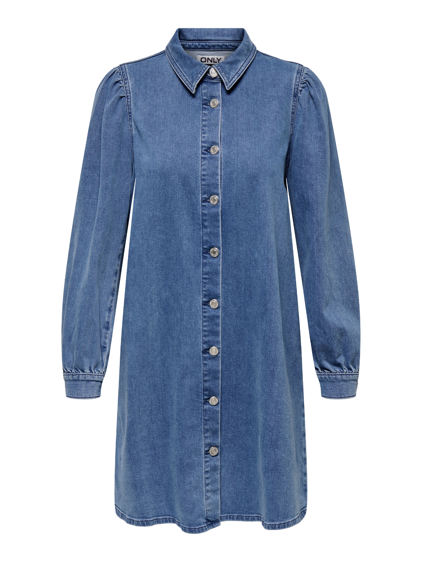 Gorgeous Denim shirt Dress by ONLY. Classic shirt collar and button down front and super cute puff sleeve, AND has a slight stretch so will be really comfy to wear. This versatile dress with be a go to staple and can be styled with tights and ankle boots, for now and sandals/trainers in Spring/Summer.