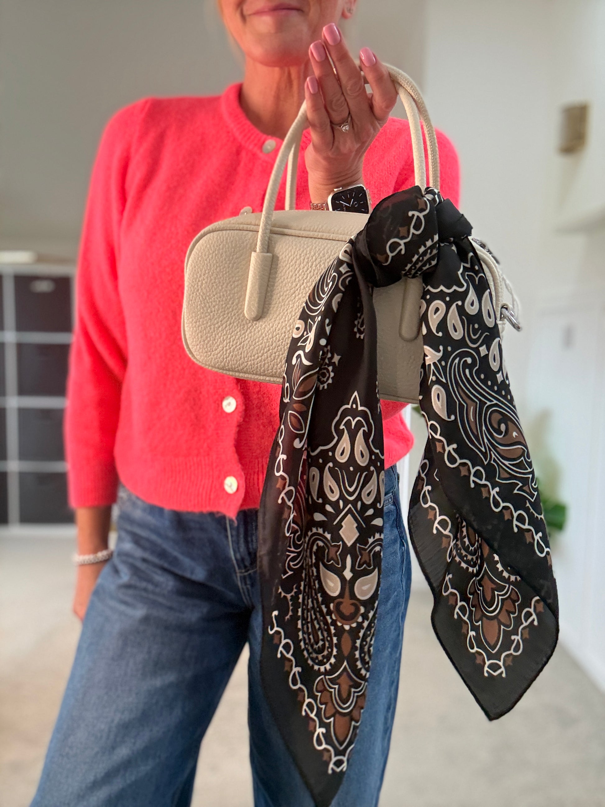 Versatile and chic, wear it around your neck, in your hair, as a headband, or tied to your bag or wrist for a modern, fashion-forward finish. Slightly bigger than my usual silk square scarves.