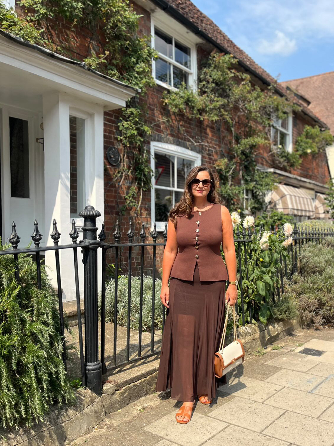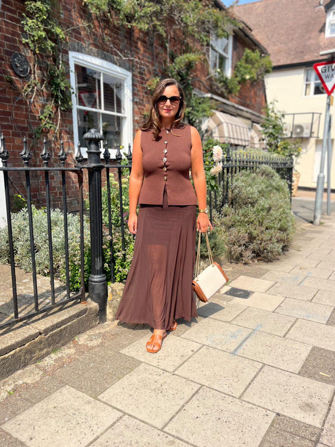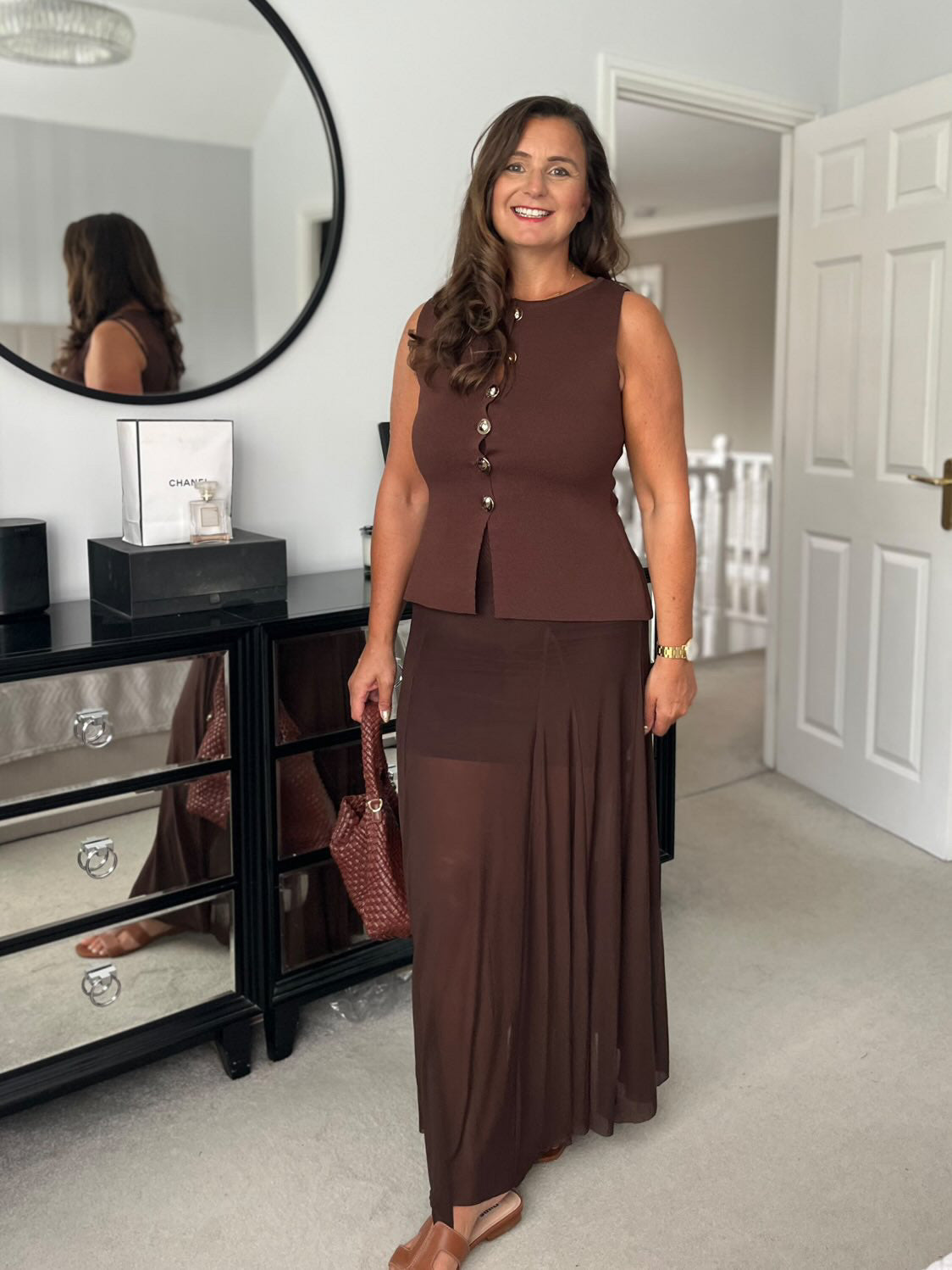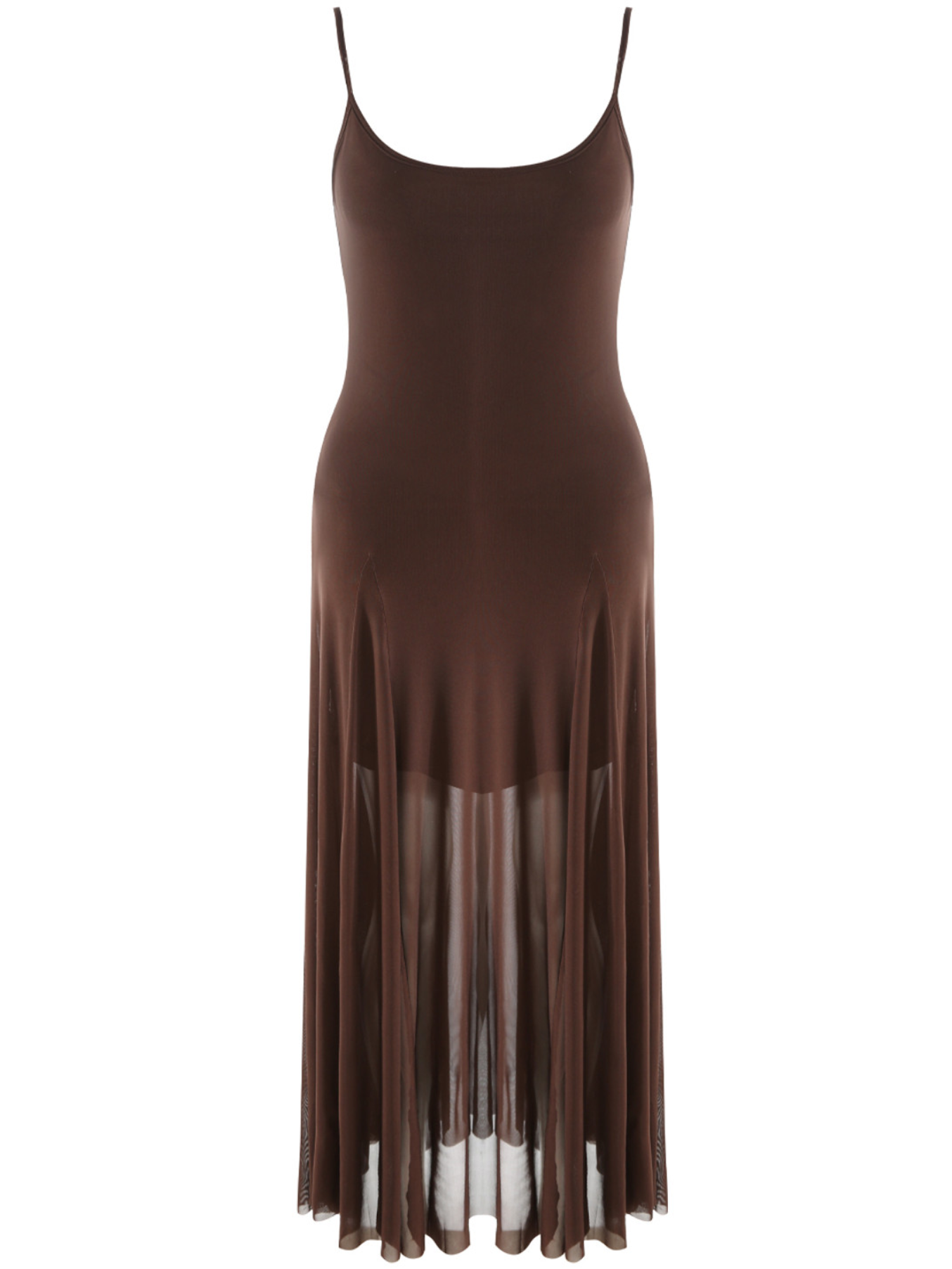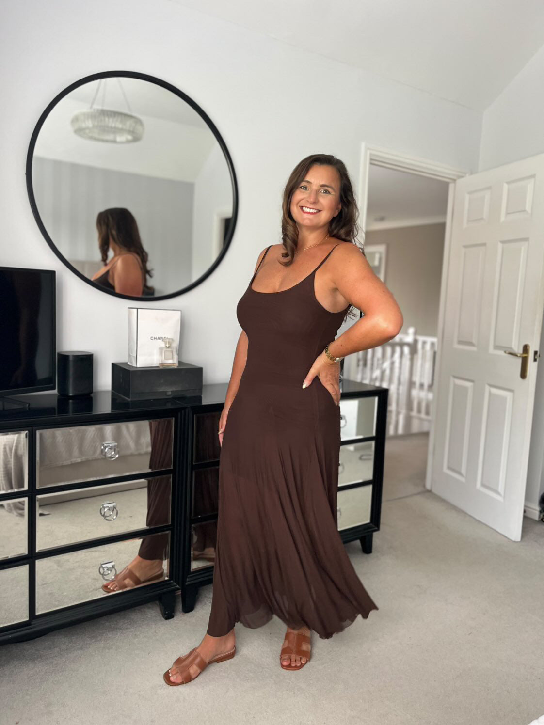 Effortless and edgy, this stretchy mesh maxi dress features a fitted dress underneath and has a gorgeous swishy skirt. It also has adjustable straps. Perfect solo with heals or sandals, or dressed down with an oversized jumper, cardigan or denim/leather jacket and trainers/boots....more pics to follow styling with knitwear aswell