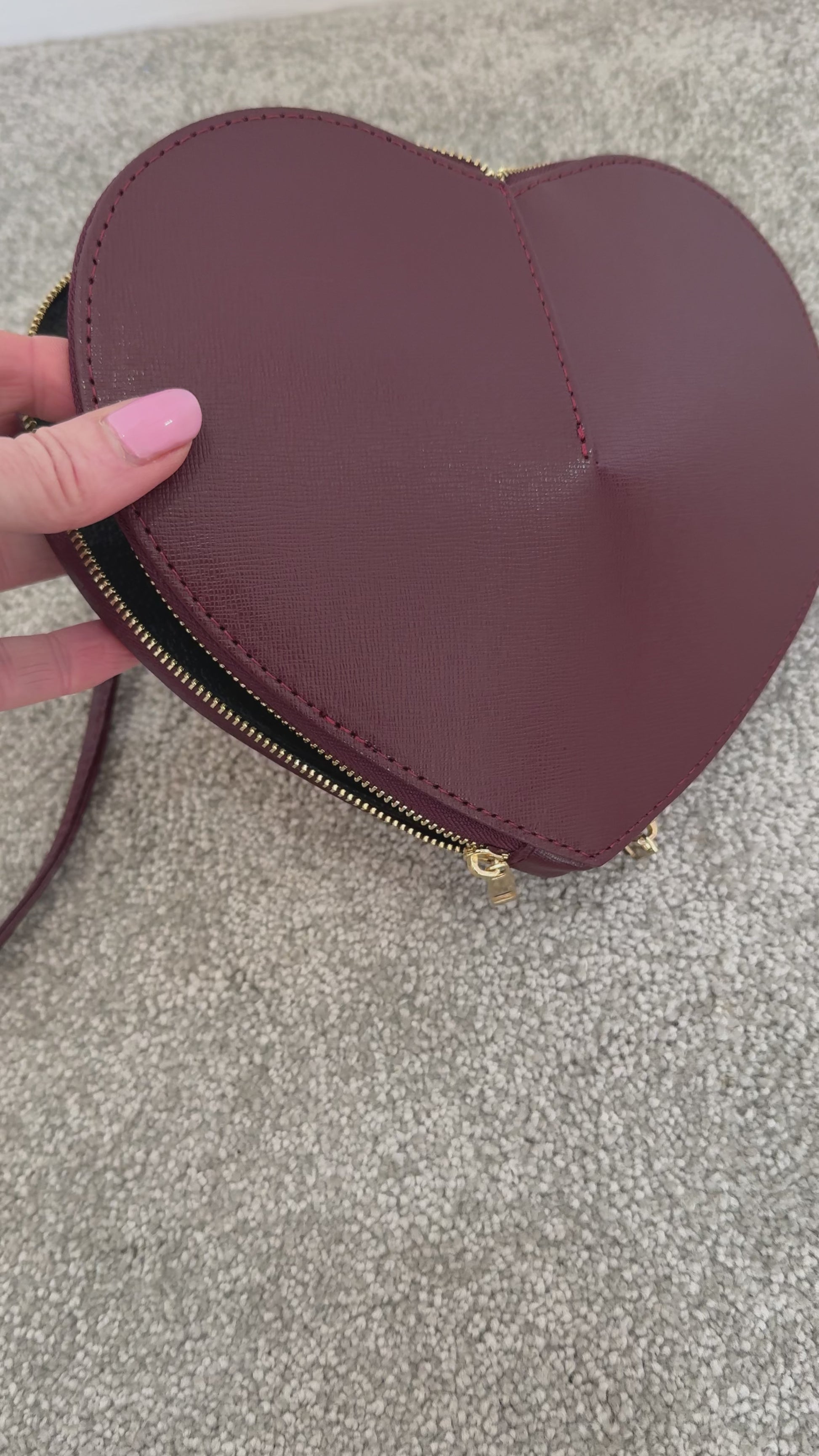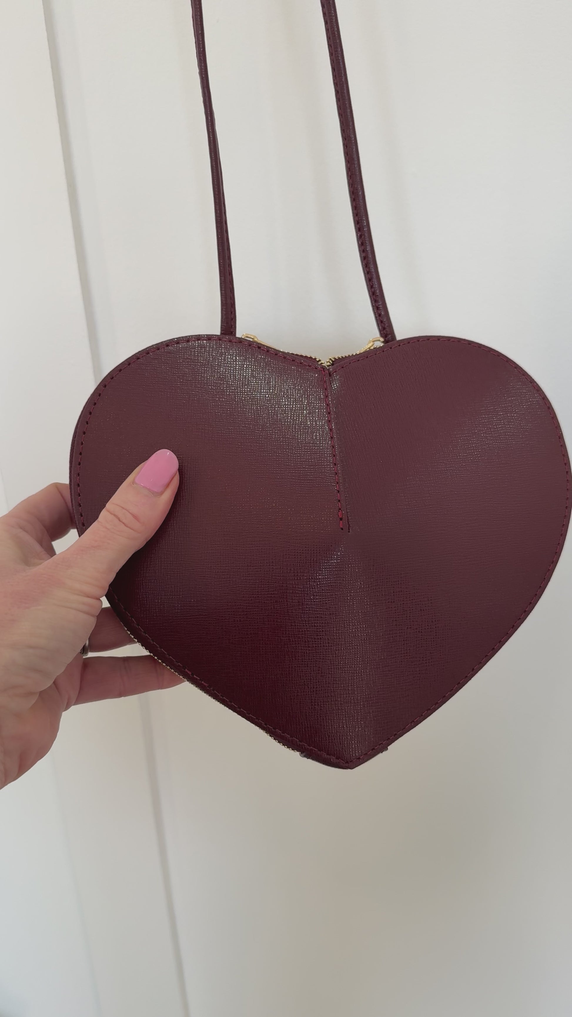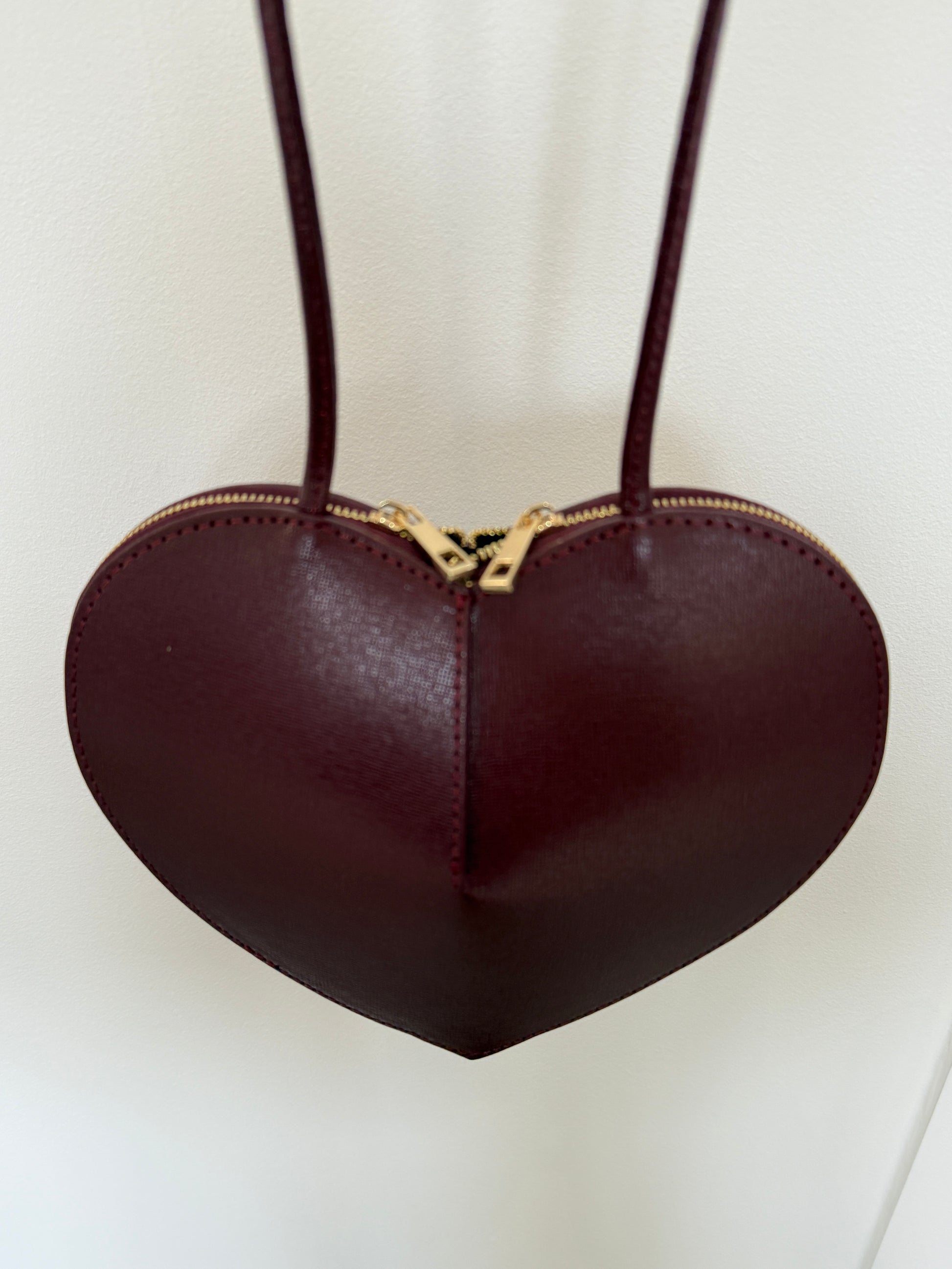 Burgundy Leather Heart Bag
