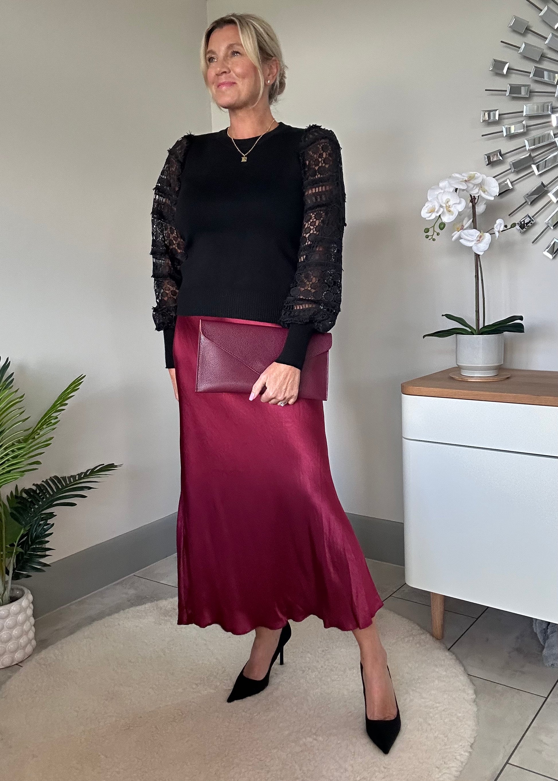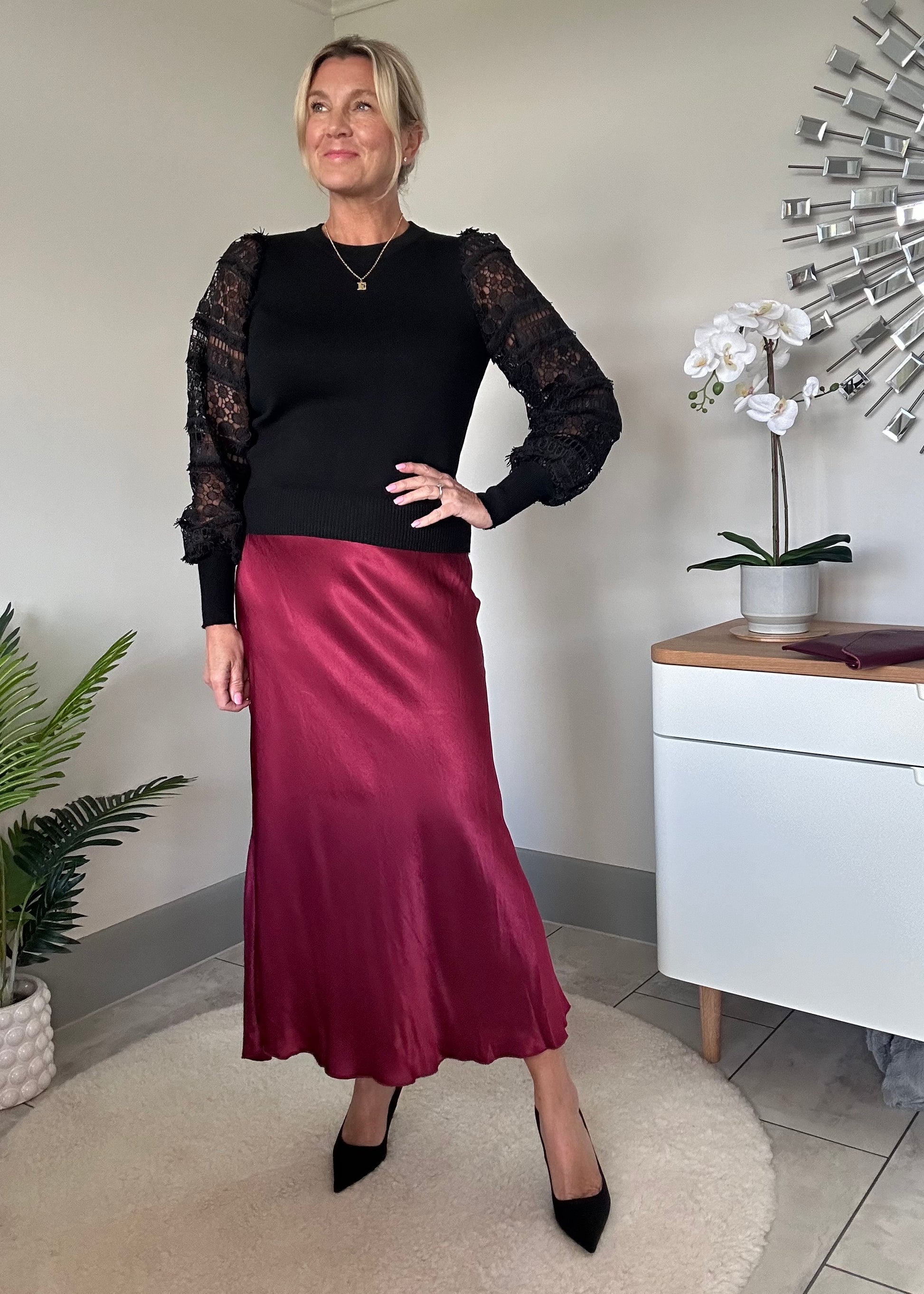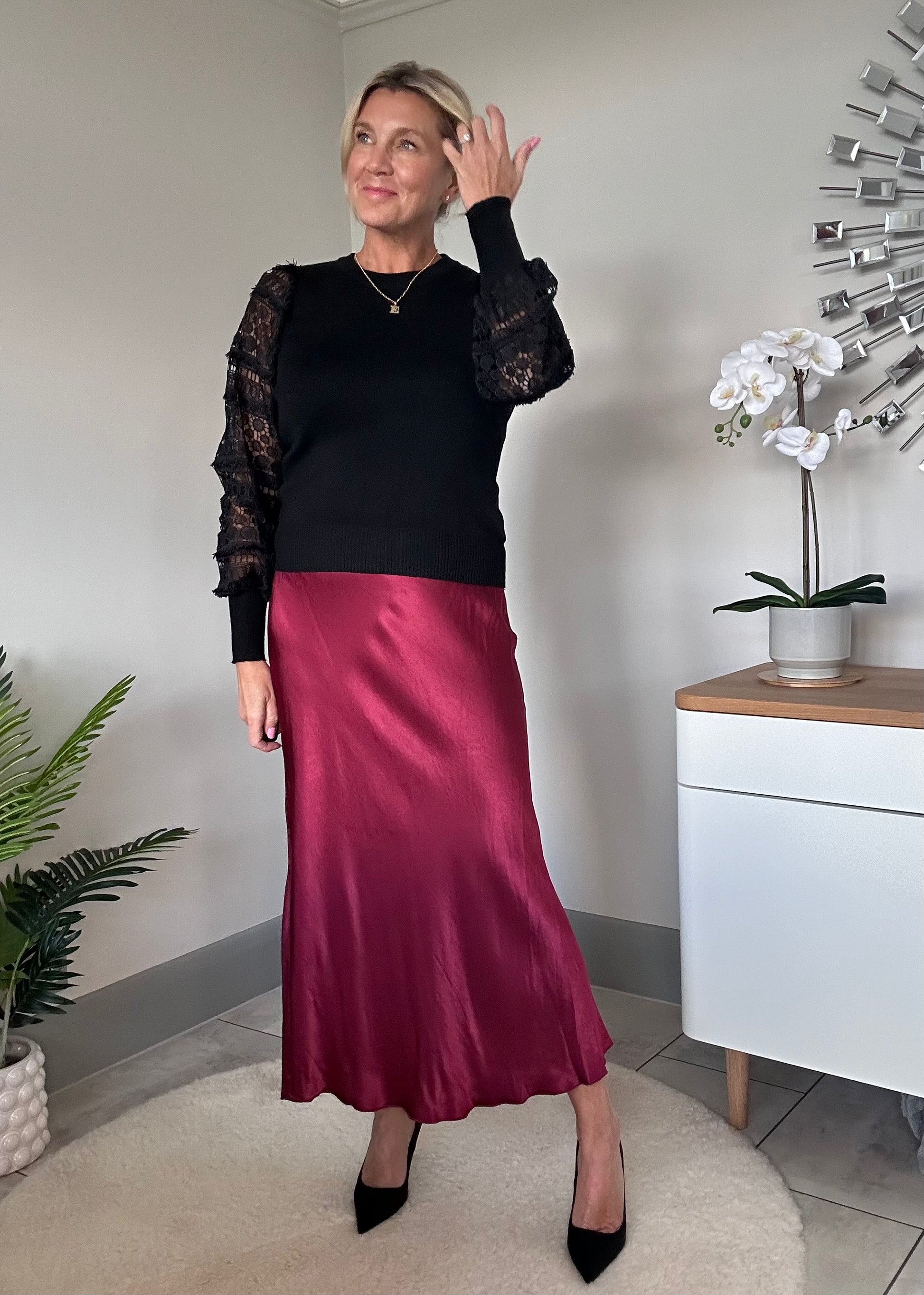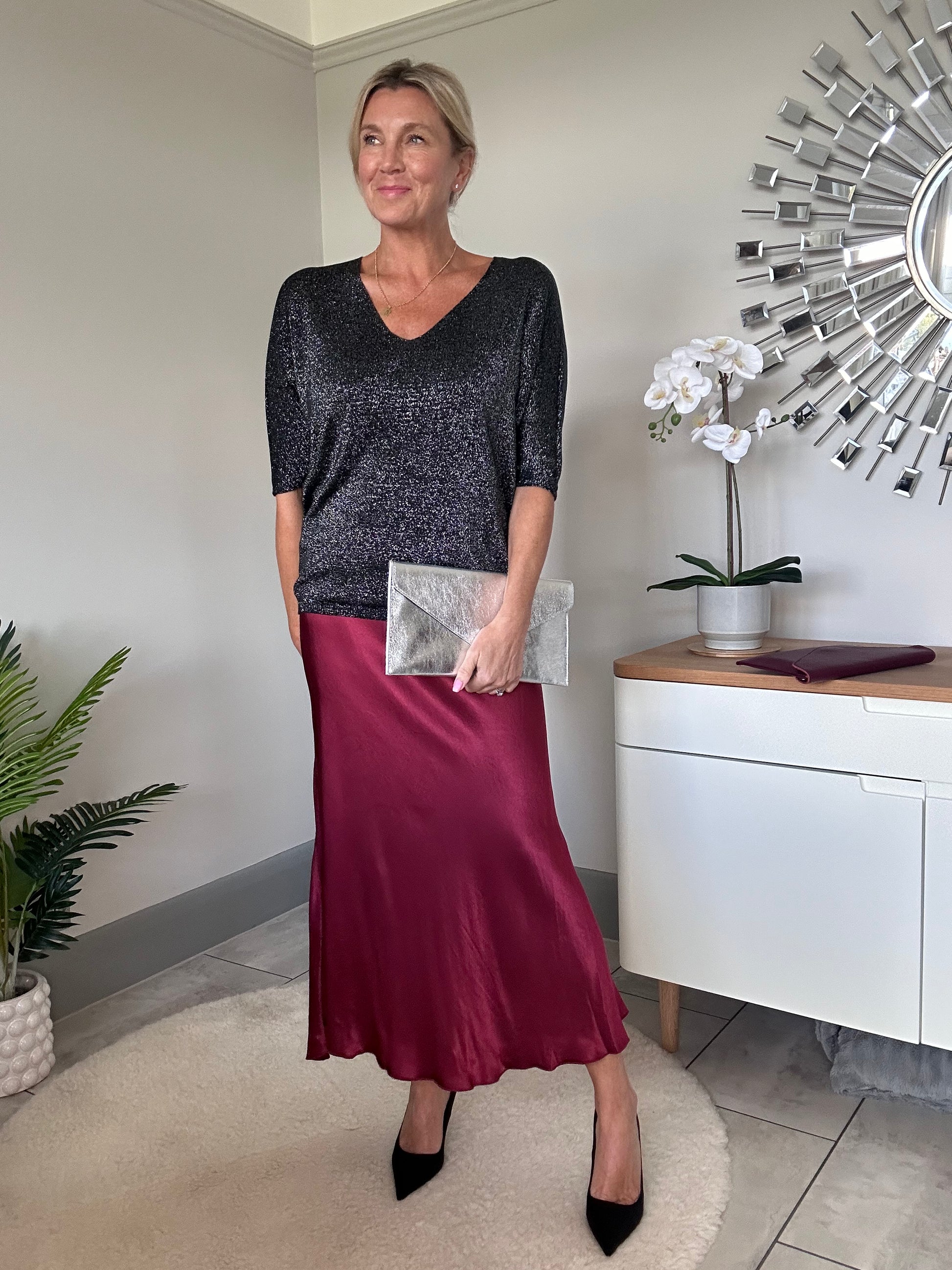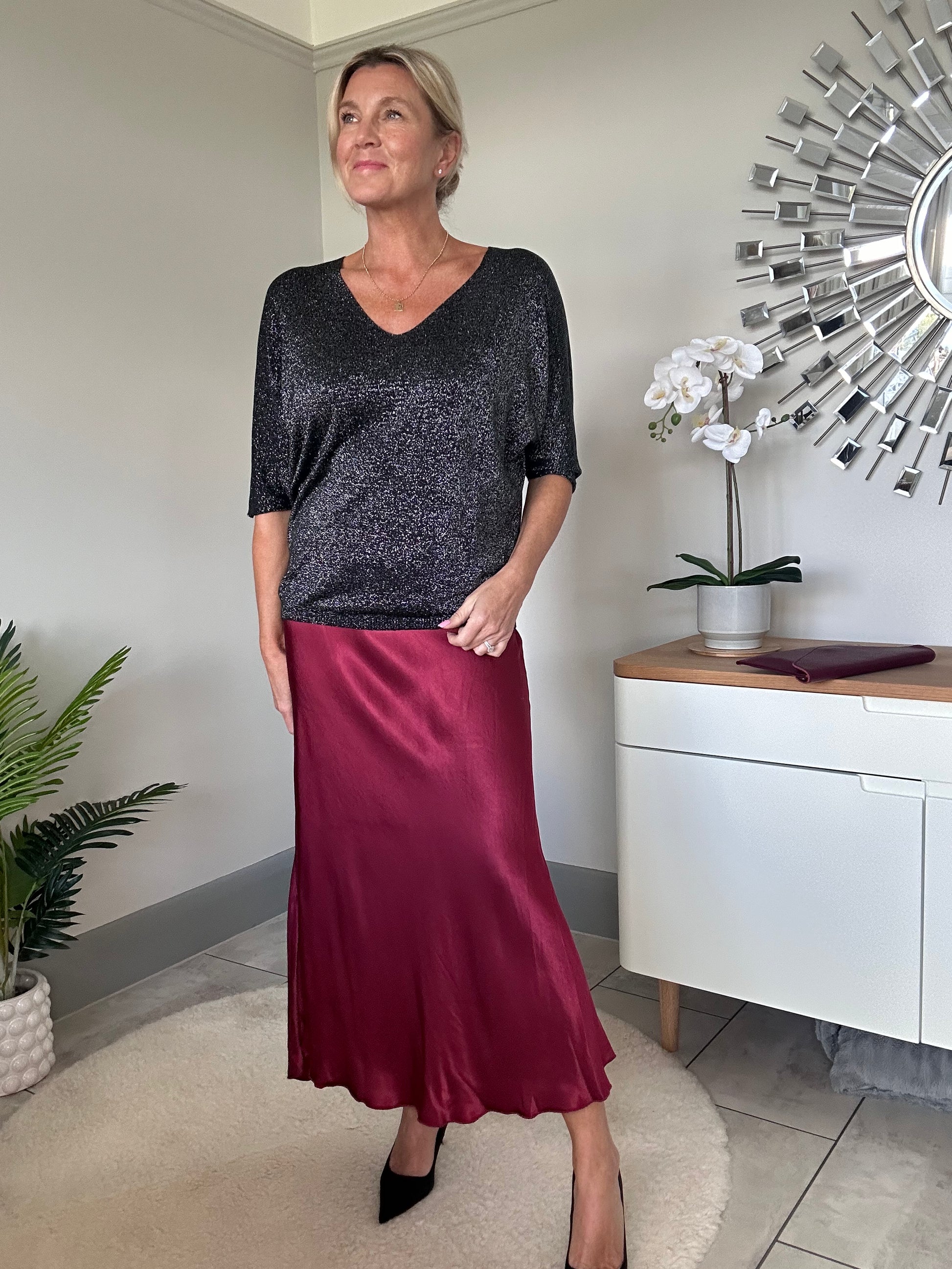 Beautiful silky feel slip skirt. With comfortable elasticated waist and gorgeous floaty curved hem. Team with heels and the silkie tops or wear casually with a knit and trainers. Perfect dressed up or down!