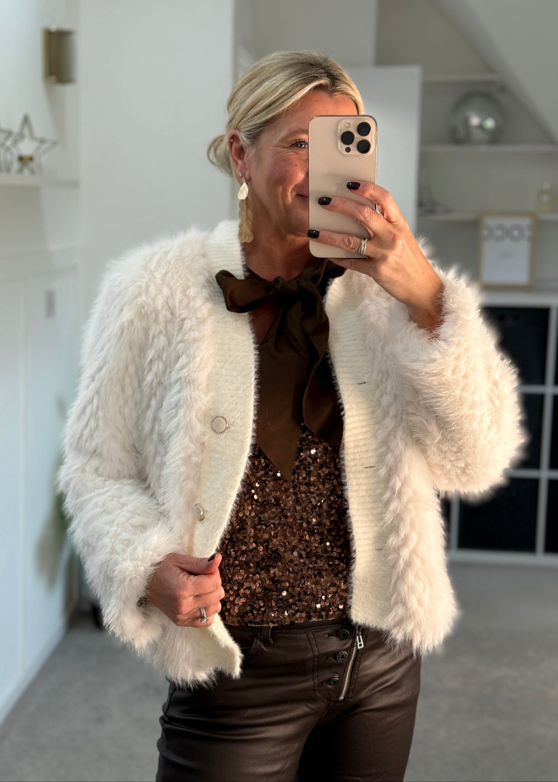 Style it with matching sequin shorts, or jeans or leather skirt and heels for a night-out look that oozes understated glamour...Style with the bow to the front or back!