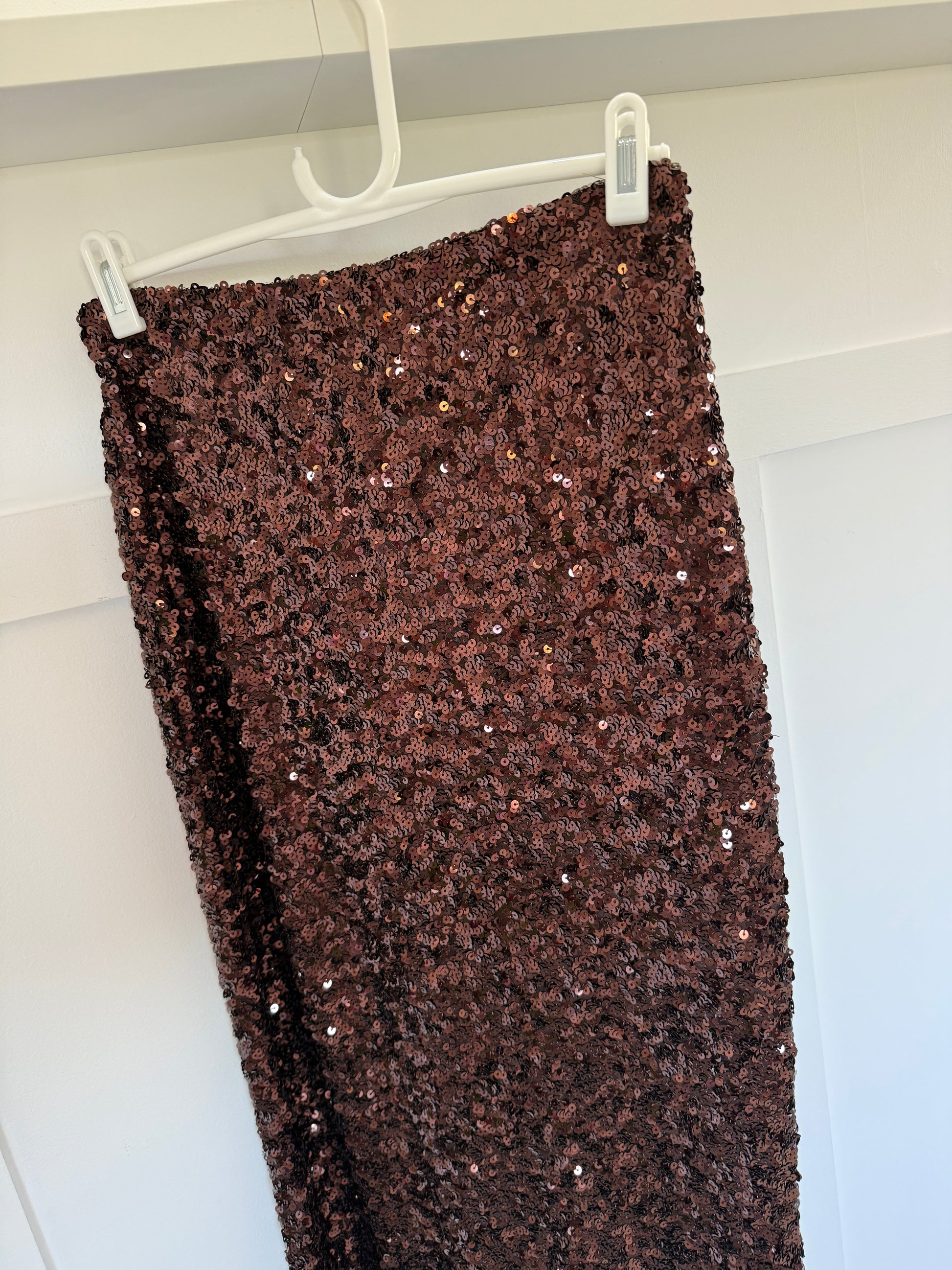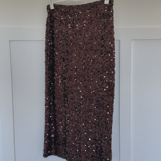 Stunning sequin pencil midi skirt with back split. Super quality and is fully lined. Wear with my new sequin or Fair Isle knits and statement jewellery for a truly show stopping look.
