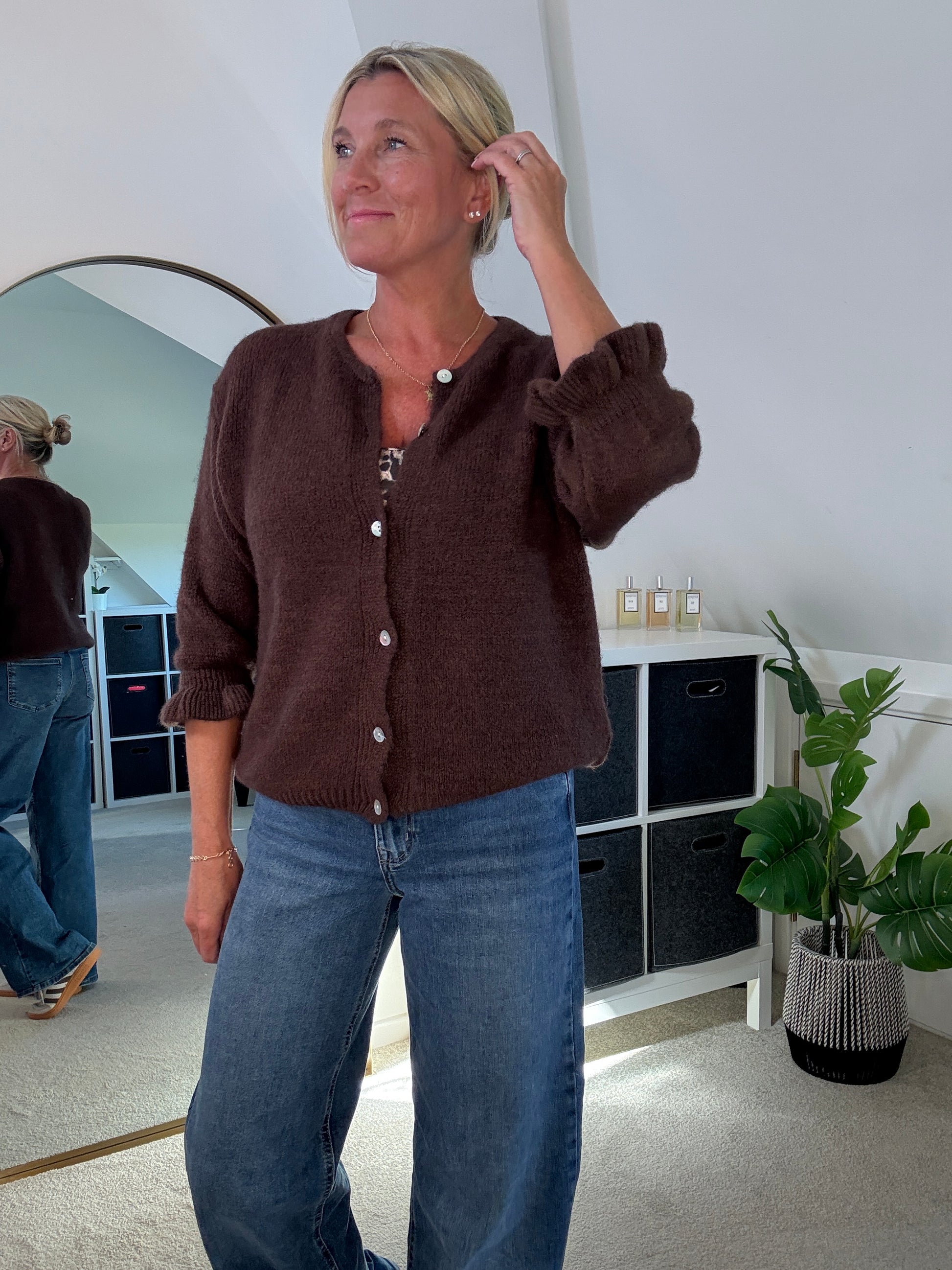 Chocolate Alpaca Mix Frill Sleeve Cardigan