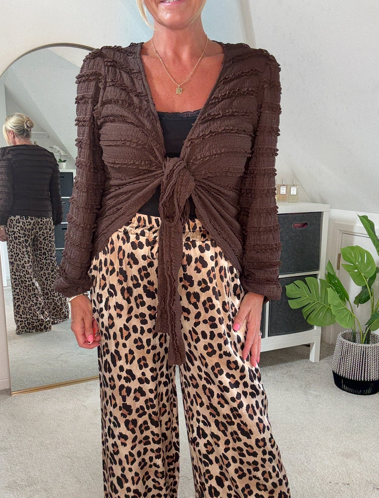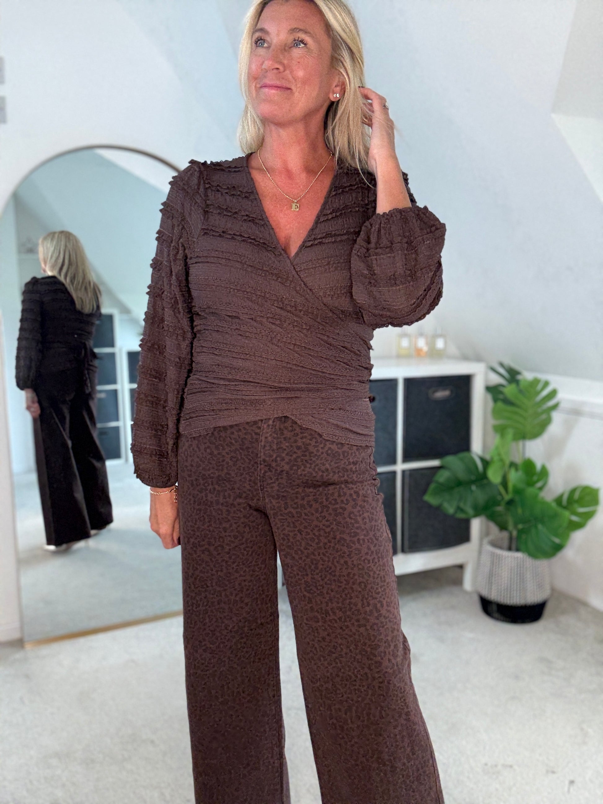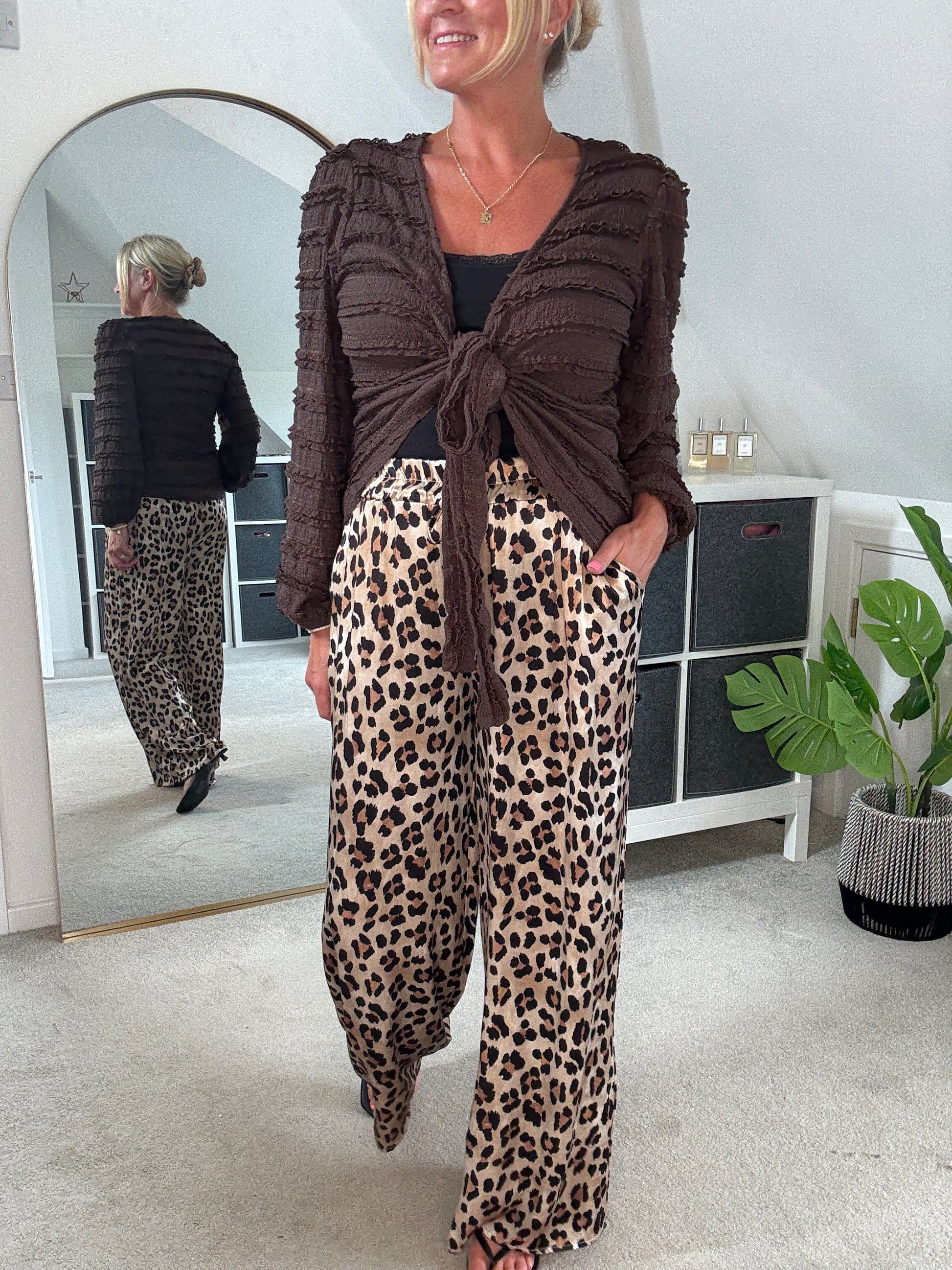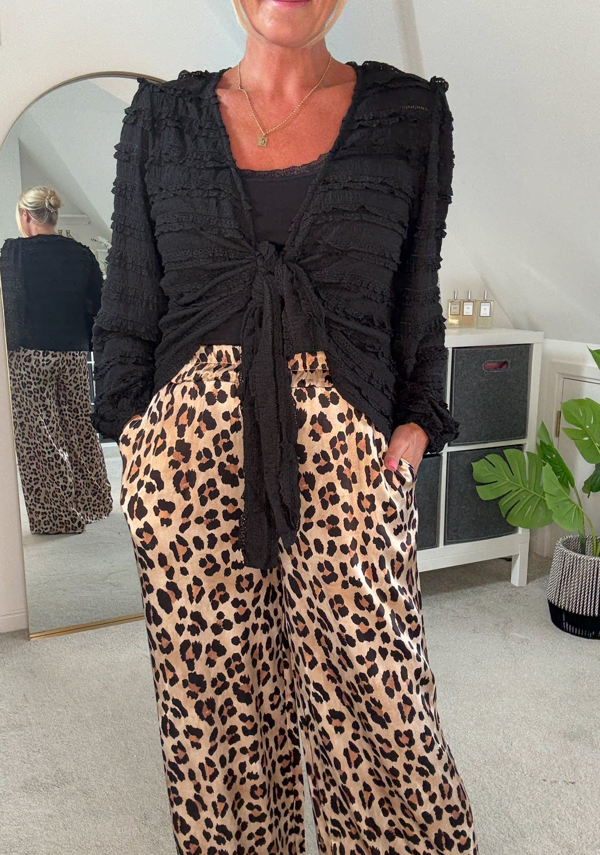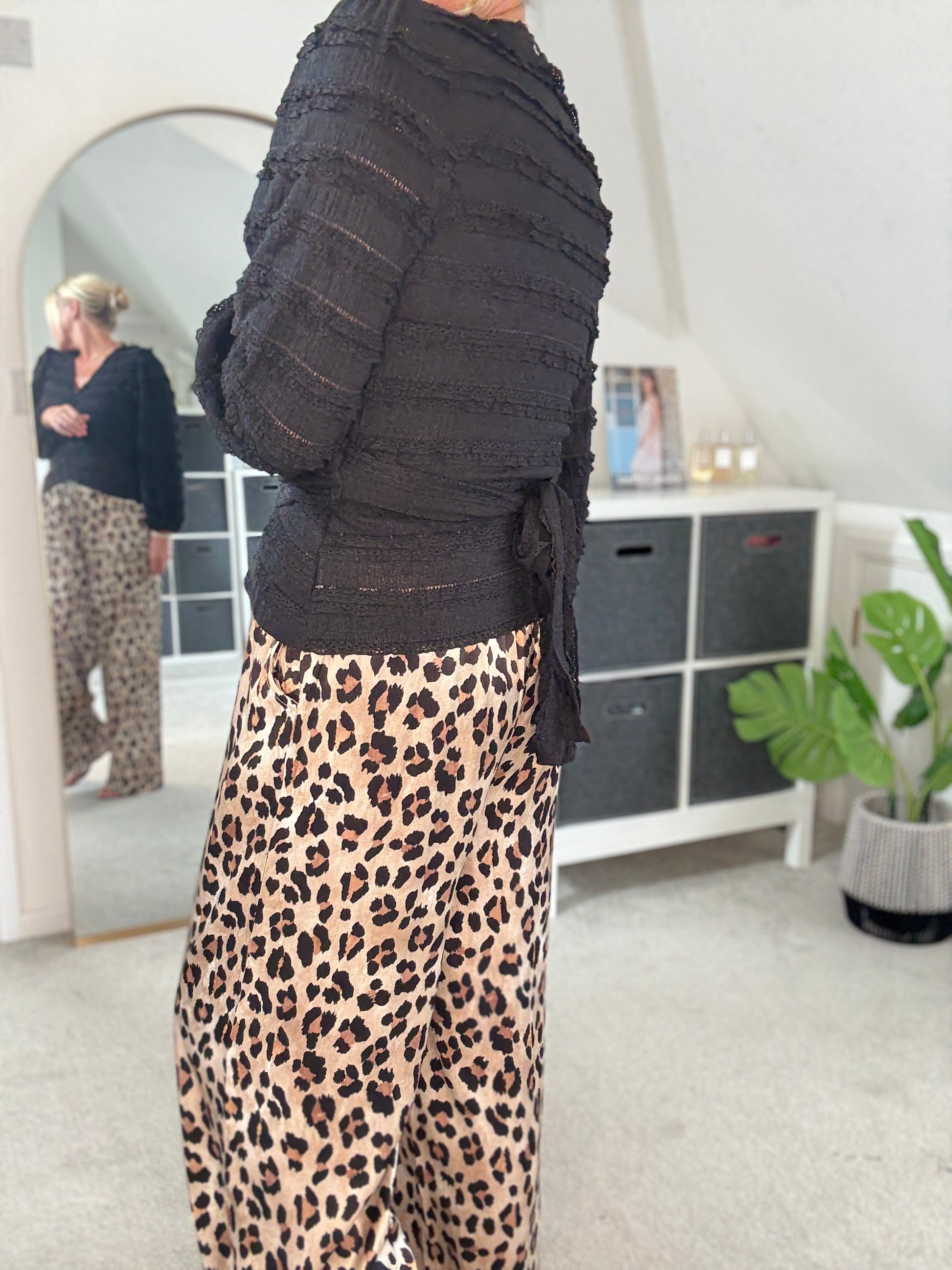 This so pretty! Long sleeve top with gorgeous all over ruffle detailing. Slight puff shoulders, balloon sleeves with elasticated cuffs and can be worn tied up at the front or lower with a cami underneath or threaded through the loop hole and wrapped around, tied to the side or back...lovely worn with jeans or trousers and heels for an evening out.