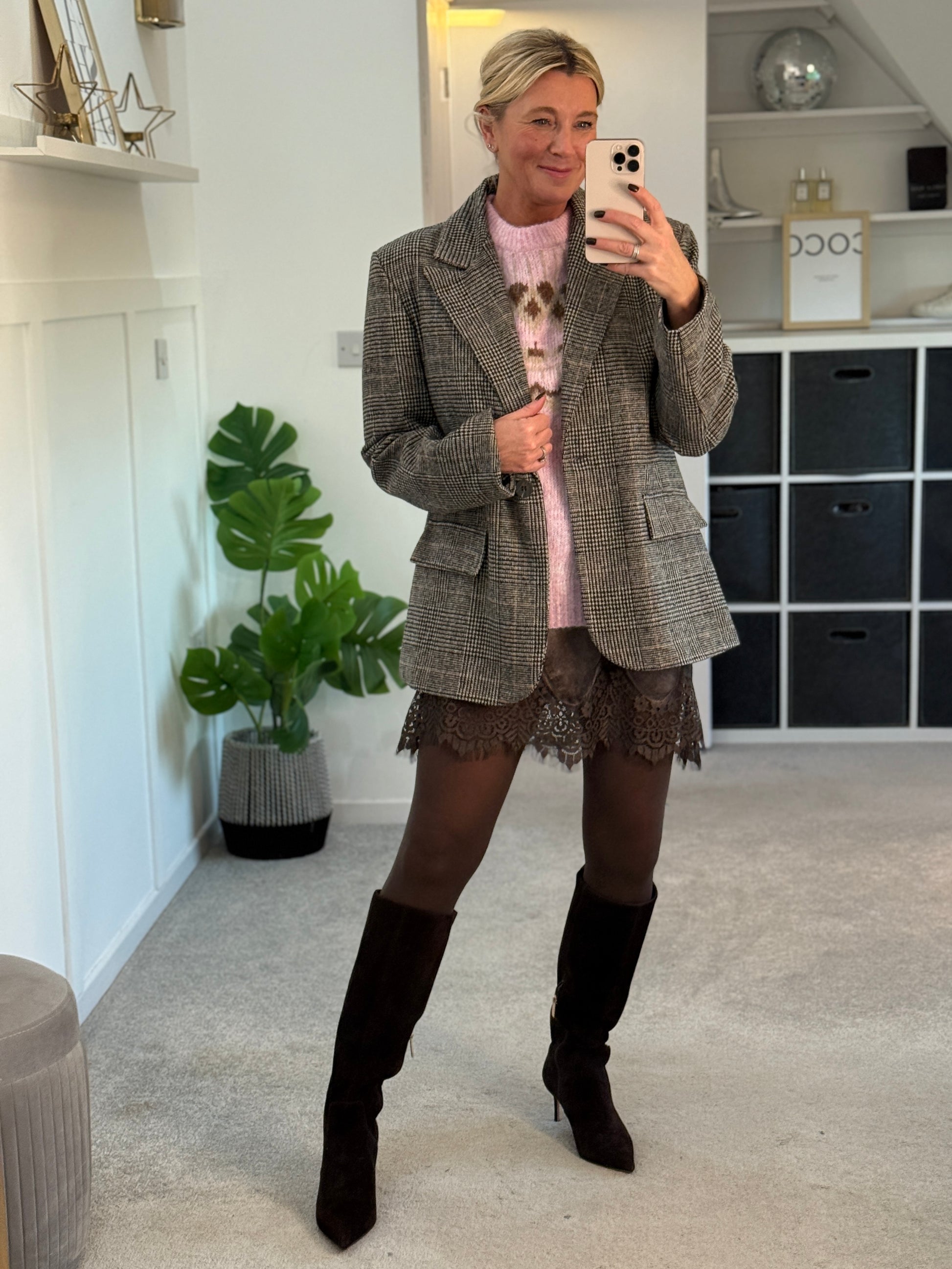 Style it with an oversized knits and long boots for a relaxed, chic daytime look, or dress it up with a cami and heels for evening.