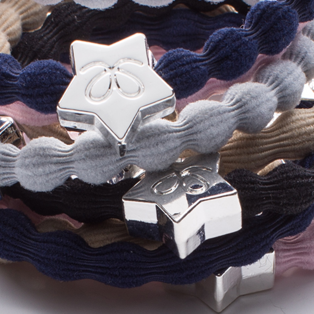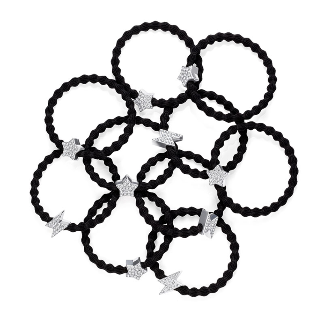 A beautiful set of 2 elastic hair bands with very pretty decorations. Wear either in your hair or on your wrist for an amazing bracelet. Great for gifts but also a perfect treat for you to add a little bit of bling to your outfit.