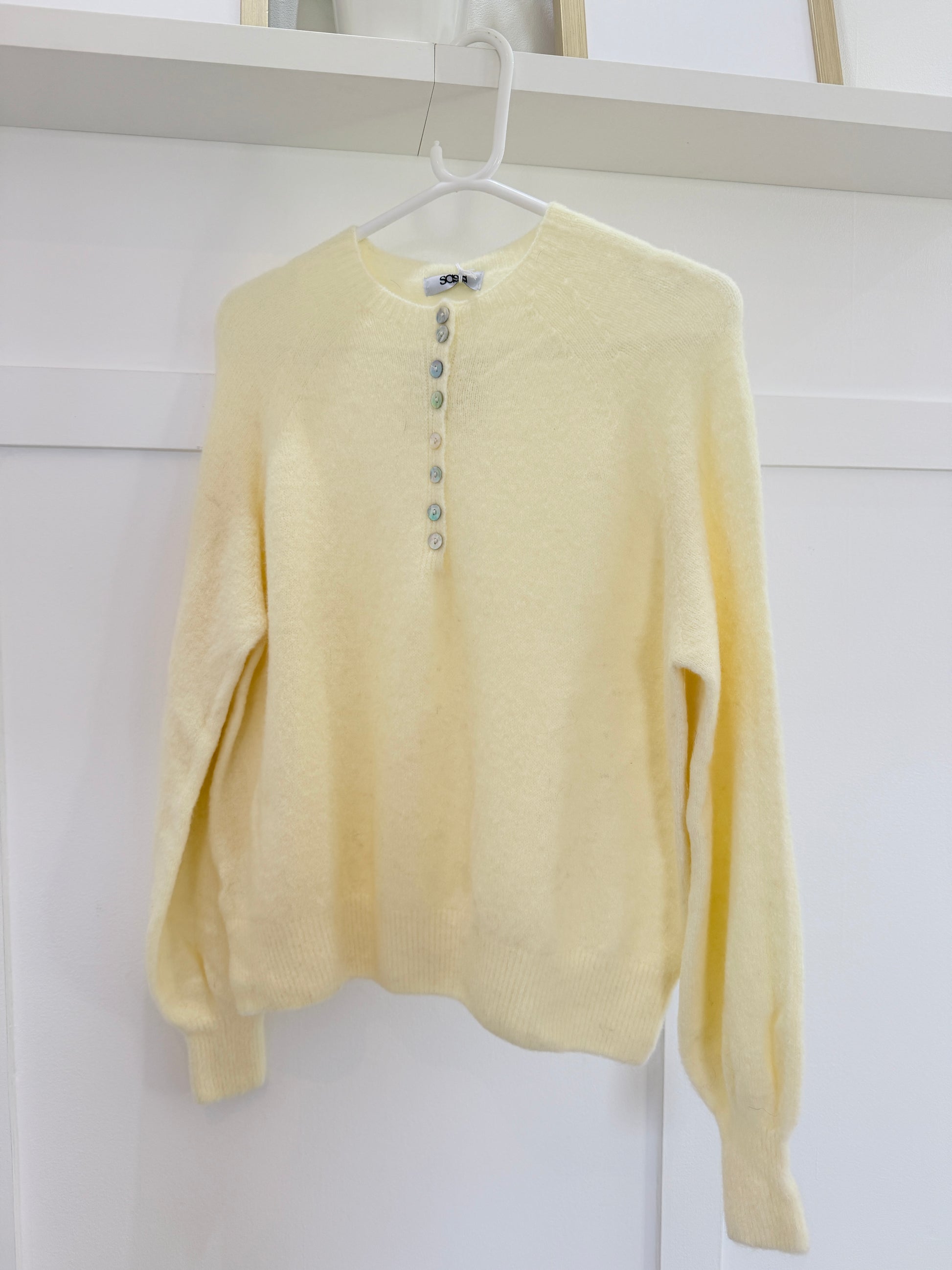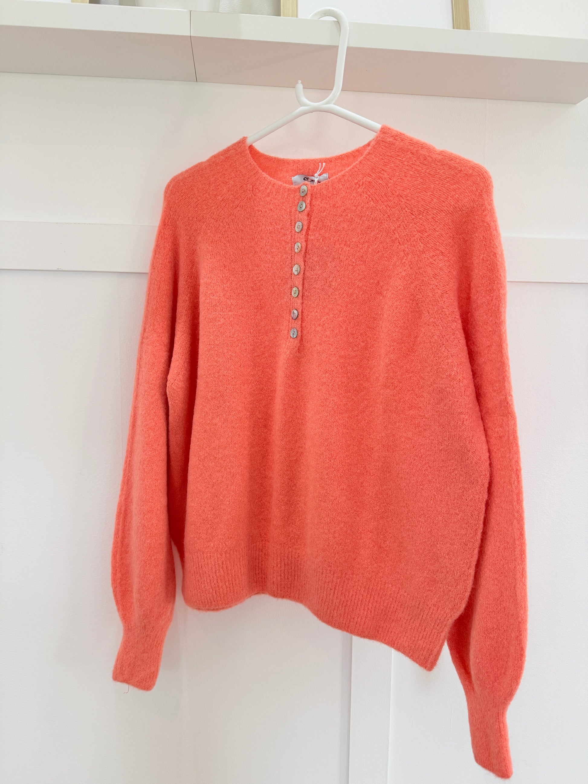 Gorgeous New Cornflower Blue Alpaca Mix fluffy jumper with lovely button detailing (these can be undone), available in 5 colours. A nice one size fit and a nice weight going into Spring. Super easy to wear casually over jeans. So cosy and soft.