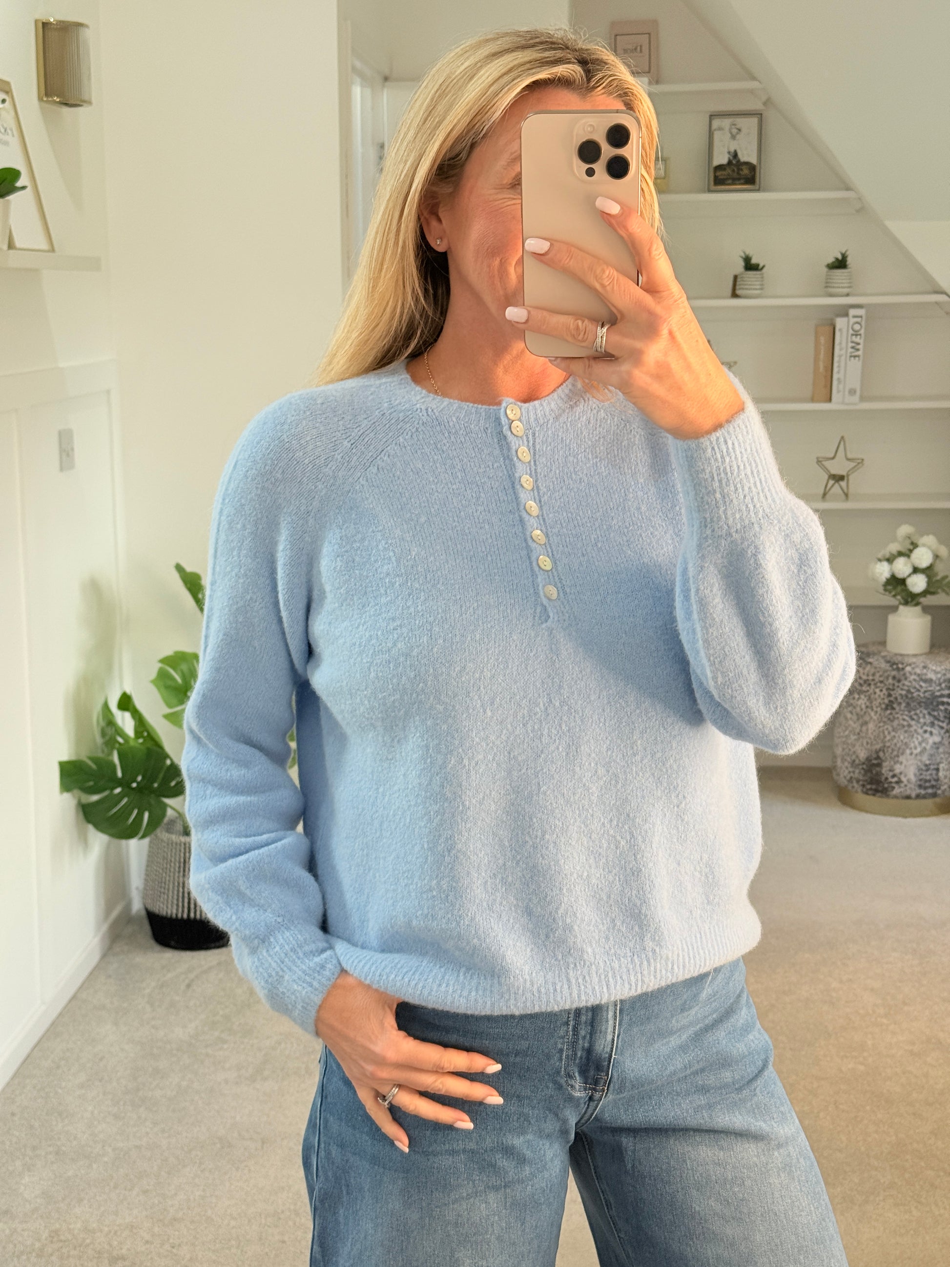 Cornflower Blue Alpaca Mix Button Jumper
