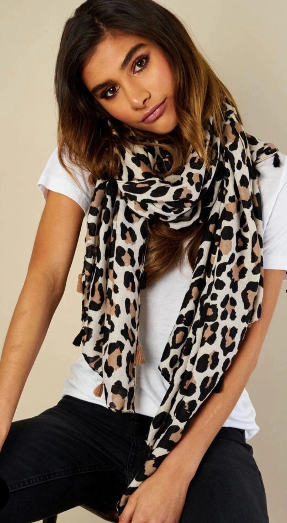 Add this gorgeous leopard print scarf with fab tassel detailing to your outfit to make a statement!