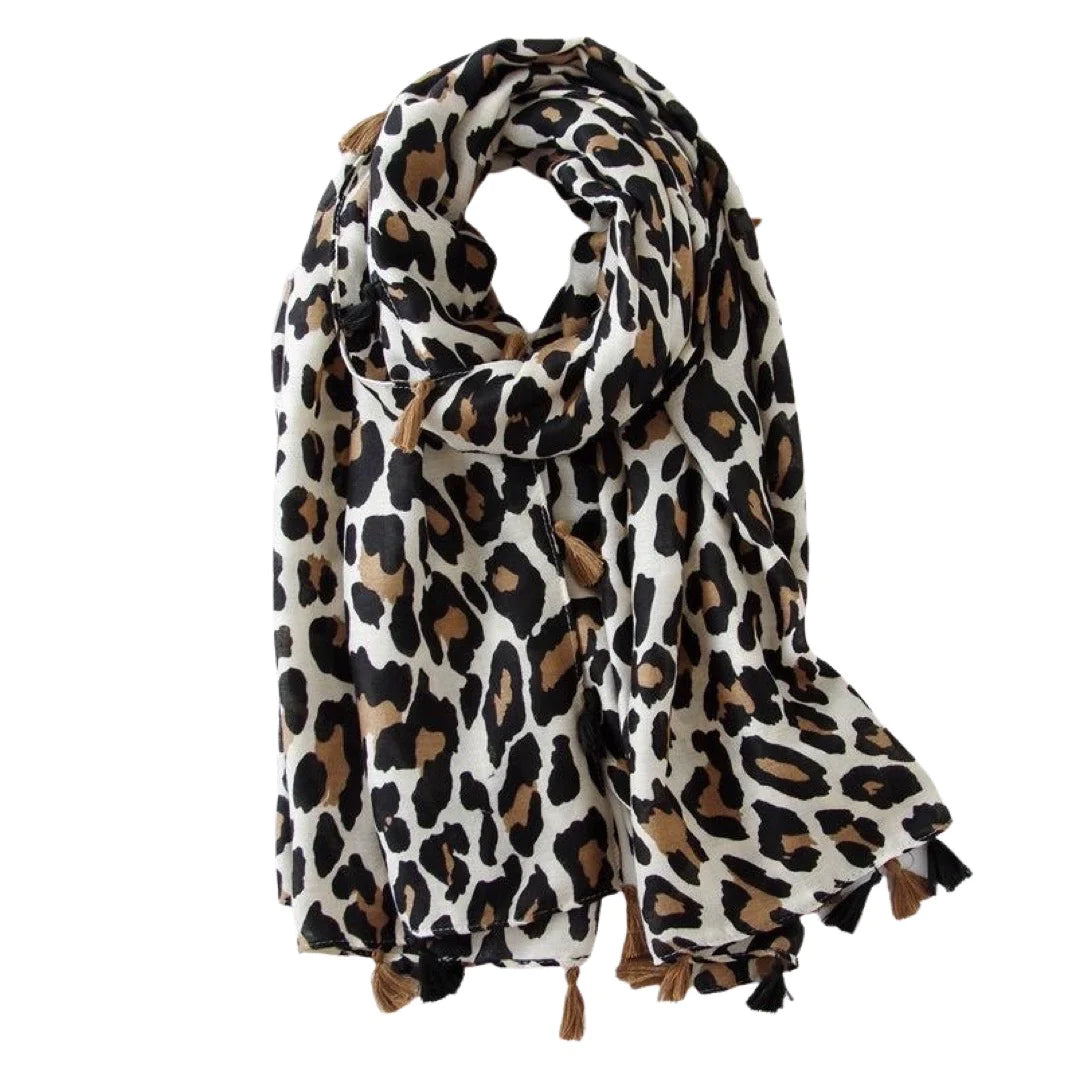 Cream Leopard Tassel Scarf