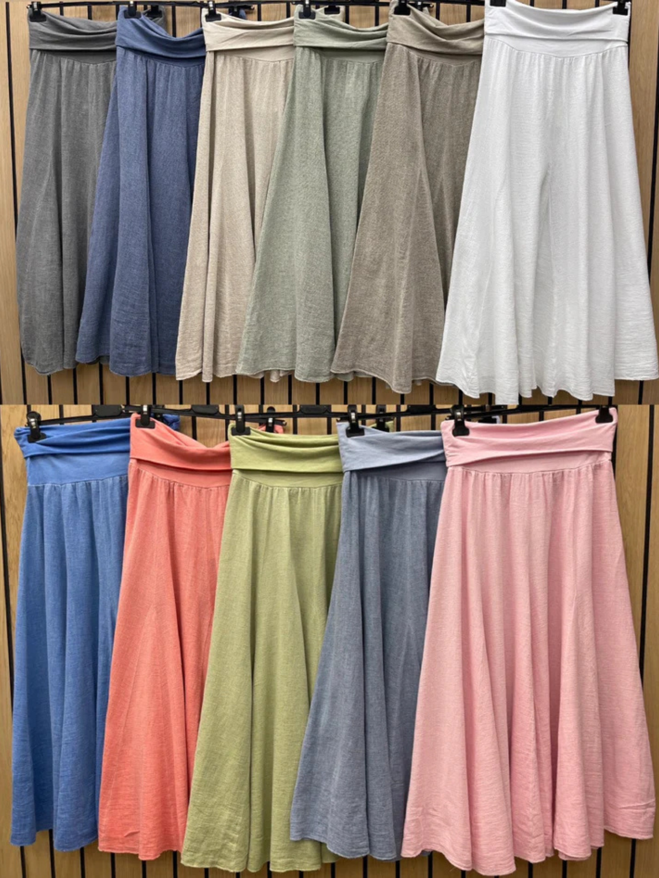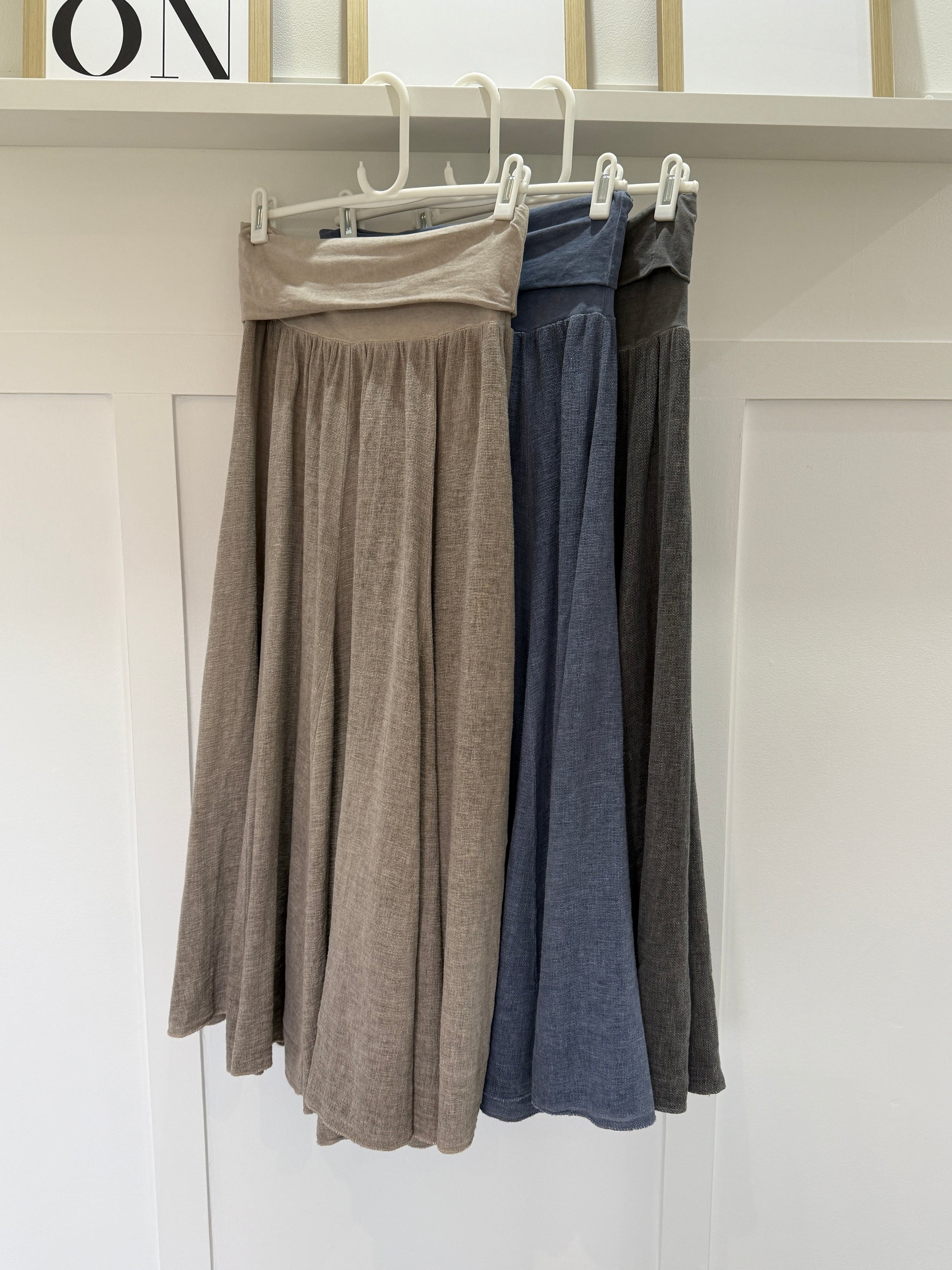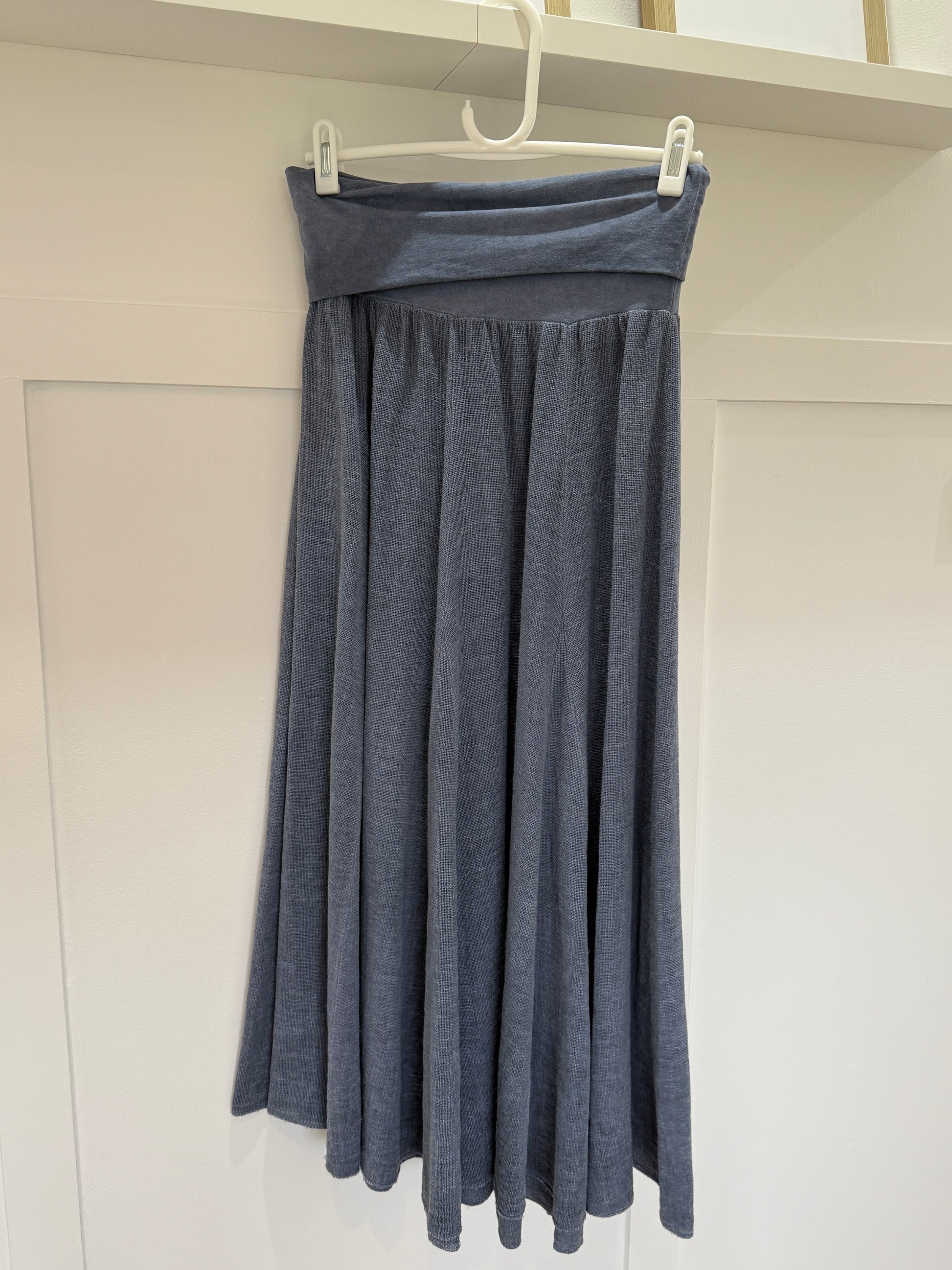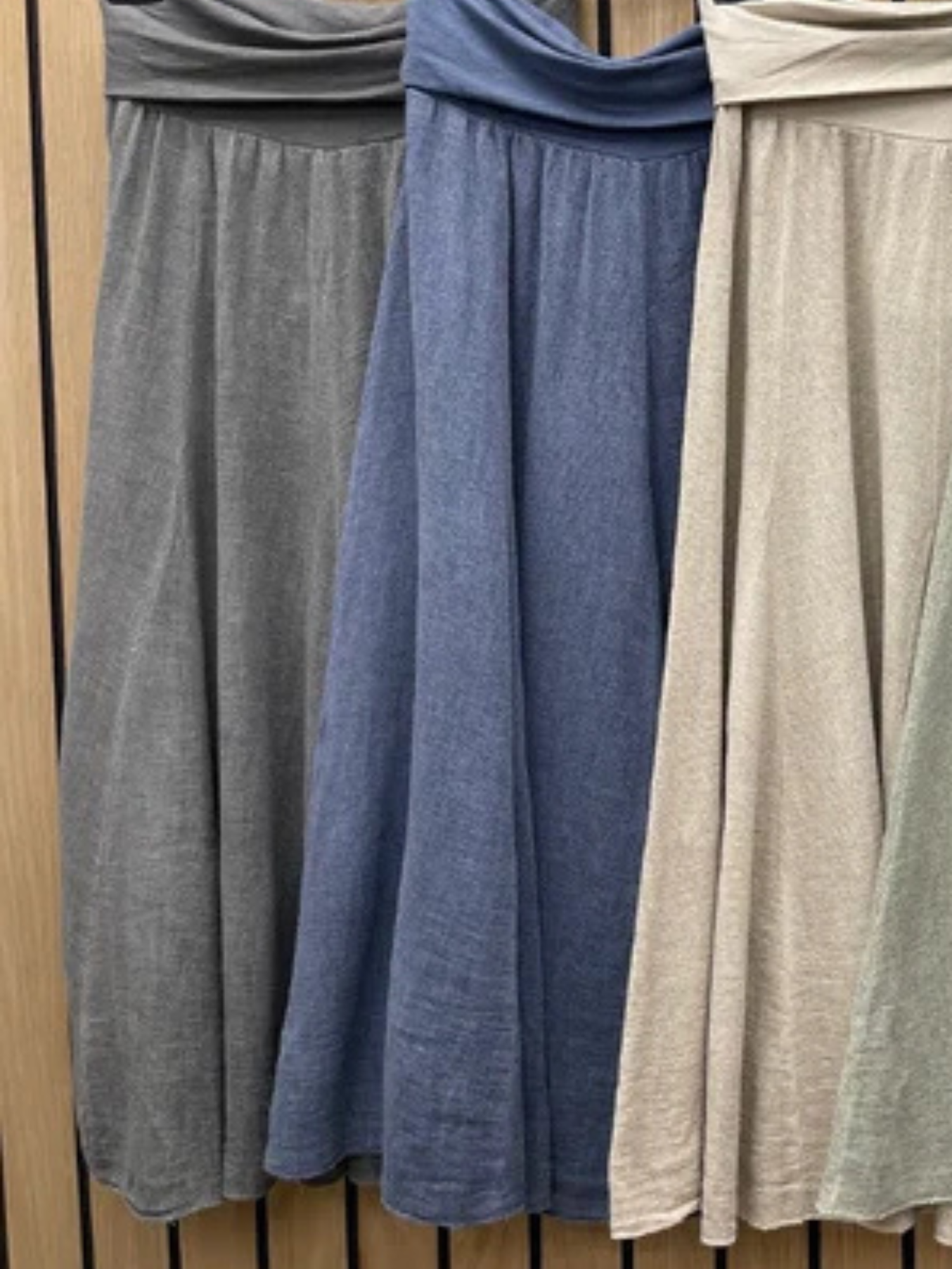 Gorgeous washed linen panelled waist skirt that can also be worn as a dress! Made from soft, breathable linen/cotton mix fabric with a relaxed washed finish, this skirt combines a laid-back Boho feel with flattering silhouette.
