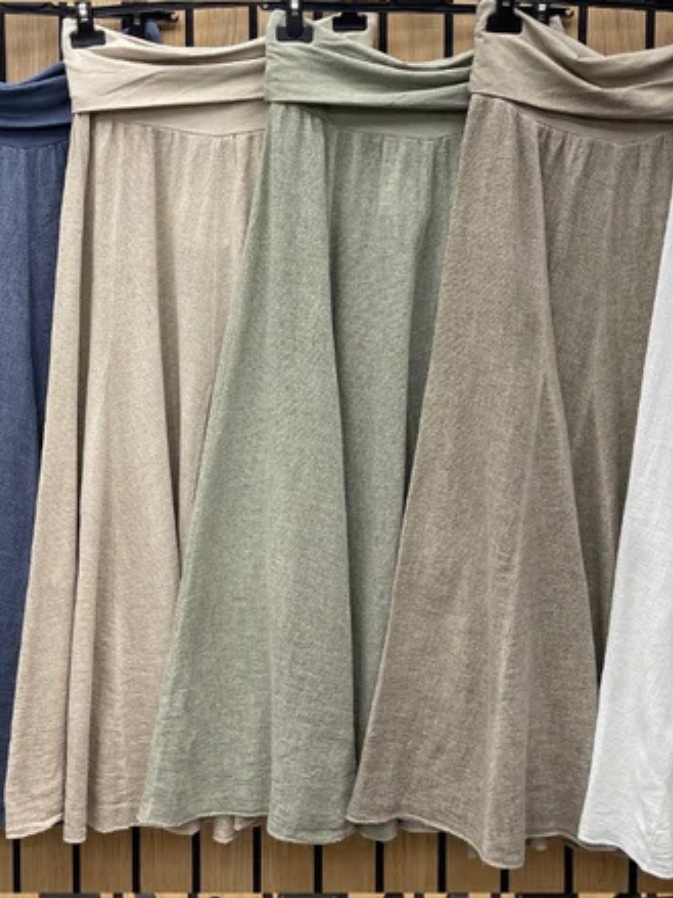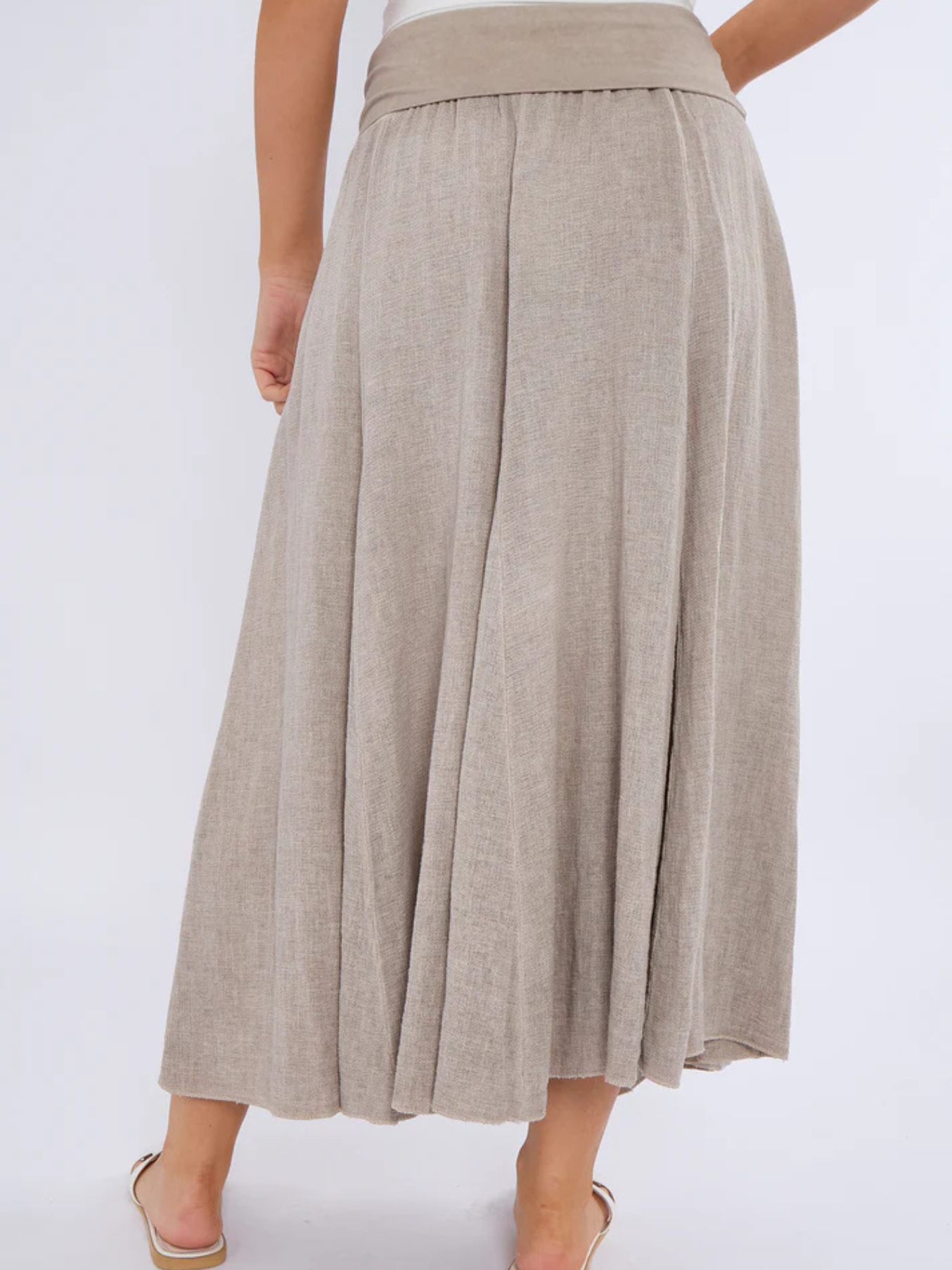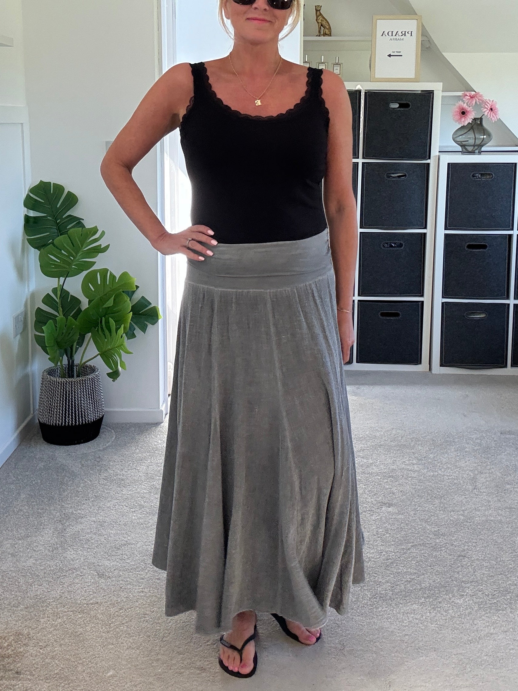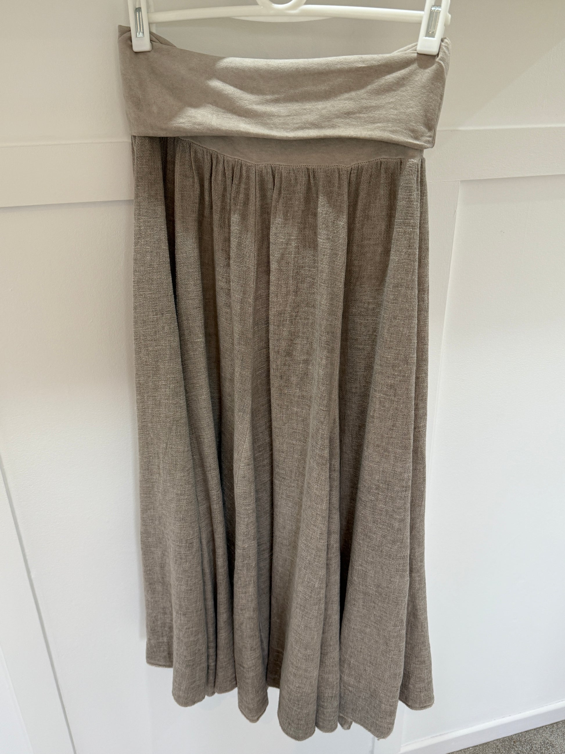 Gorgeous washed linen panelled waist skirt that can also be worn as a dress! Made from soft, breathable linen/cotton mix fabric with a relaxed washed finish, this skirt combines a laid-back Boho feel with flattering silhouette.