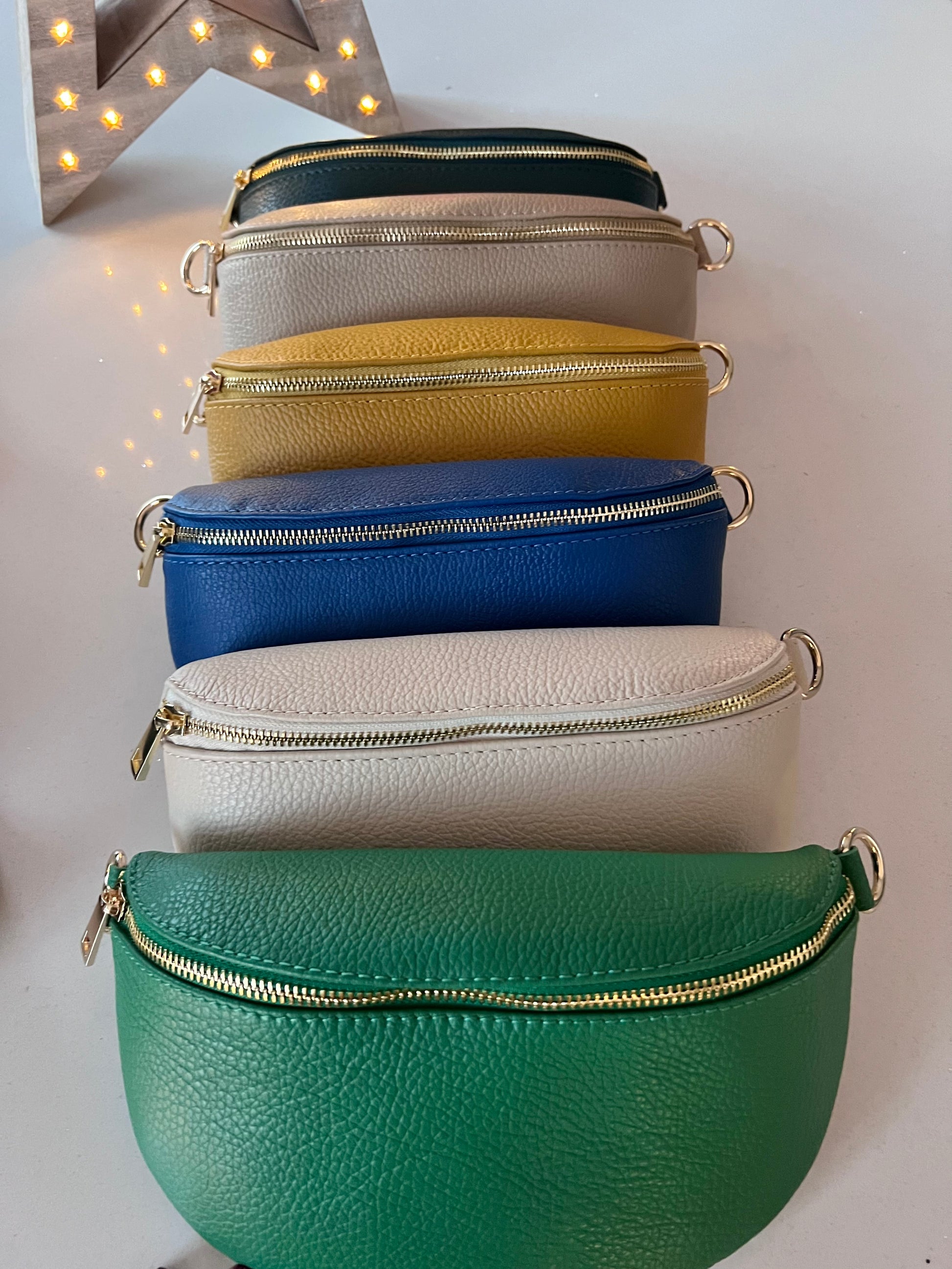 This versatile and very cool real Italian leather bum bag is ideal for keeping all your essentials in! Wear over your shoulder or around your waist or through your jean loops! It comes with its own adjustable strap but you can also add one of my statement bag straps and bag charms for a bit of individuality!