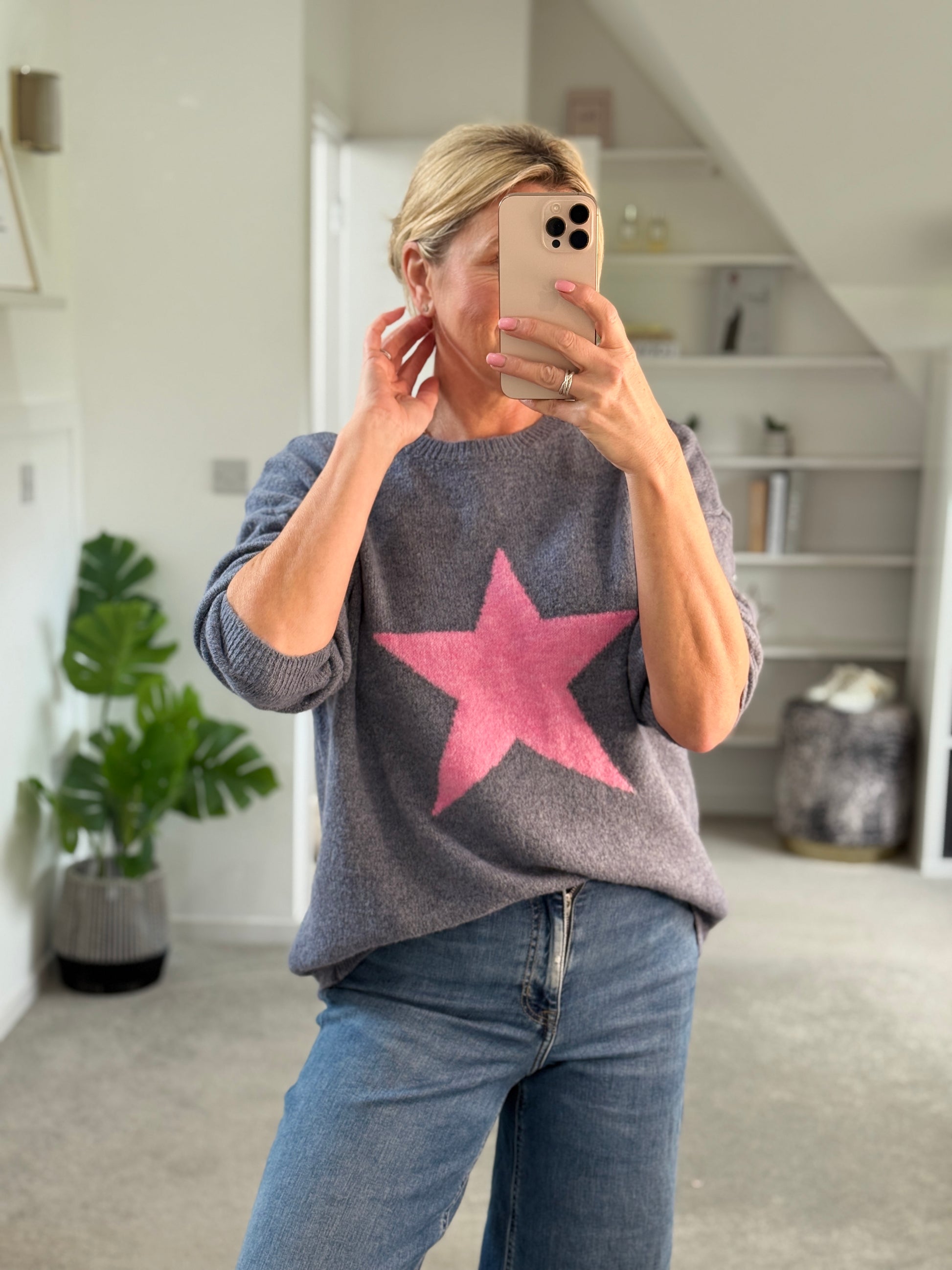 Wrap up in effortless style with this gorgeous crew-neck knit, designed with a nice one size fit (not too oversized or fitted) and a statement star motif for a cool, laid-back feel. Perfect for everyday wear, it’s easy to layer and instantly elevates your casual looks.