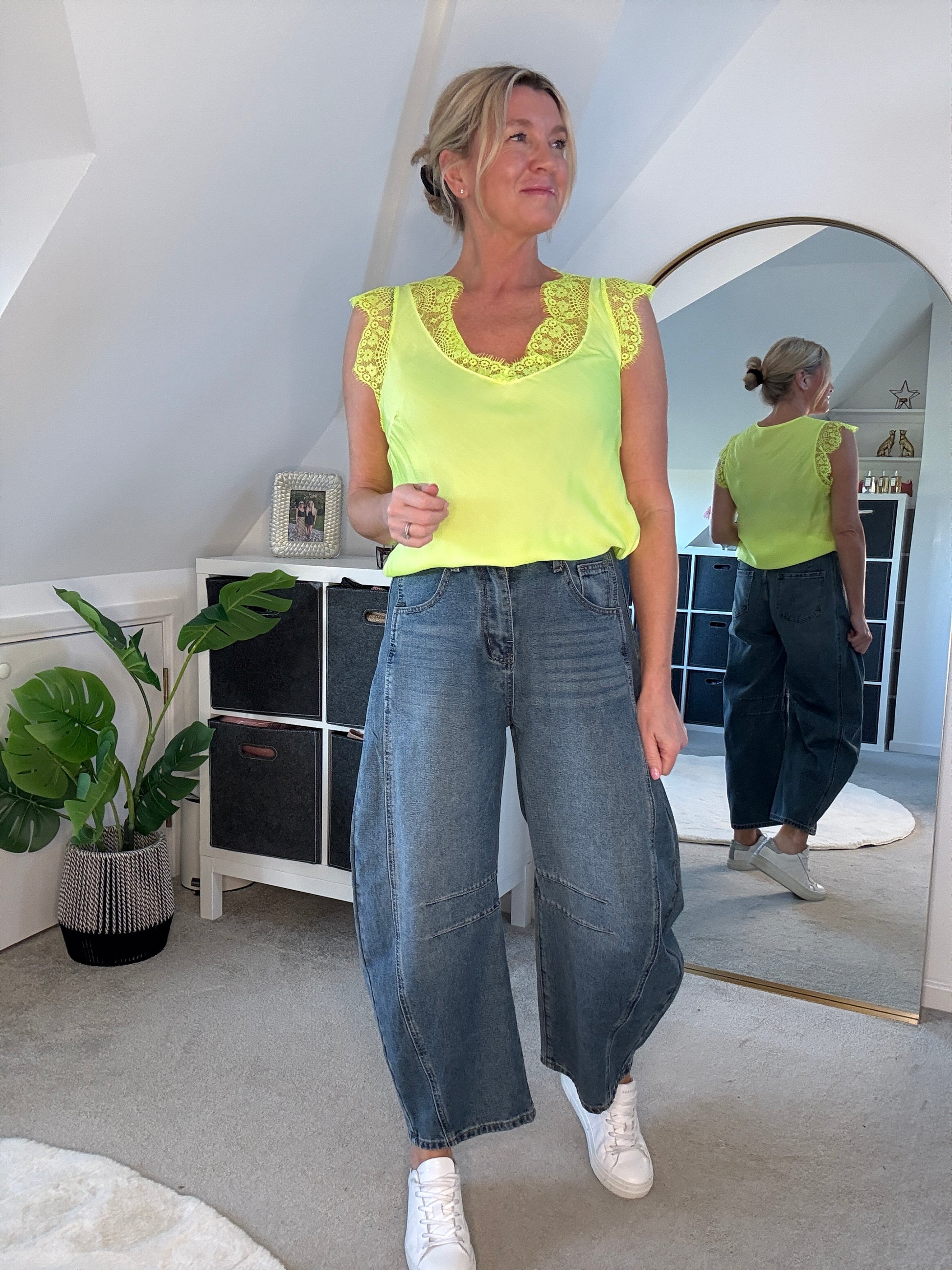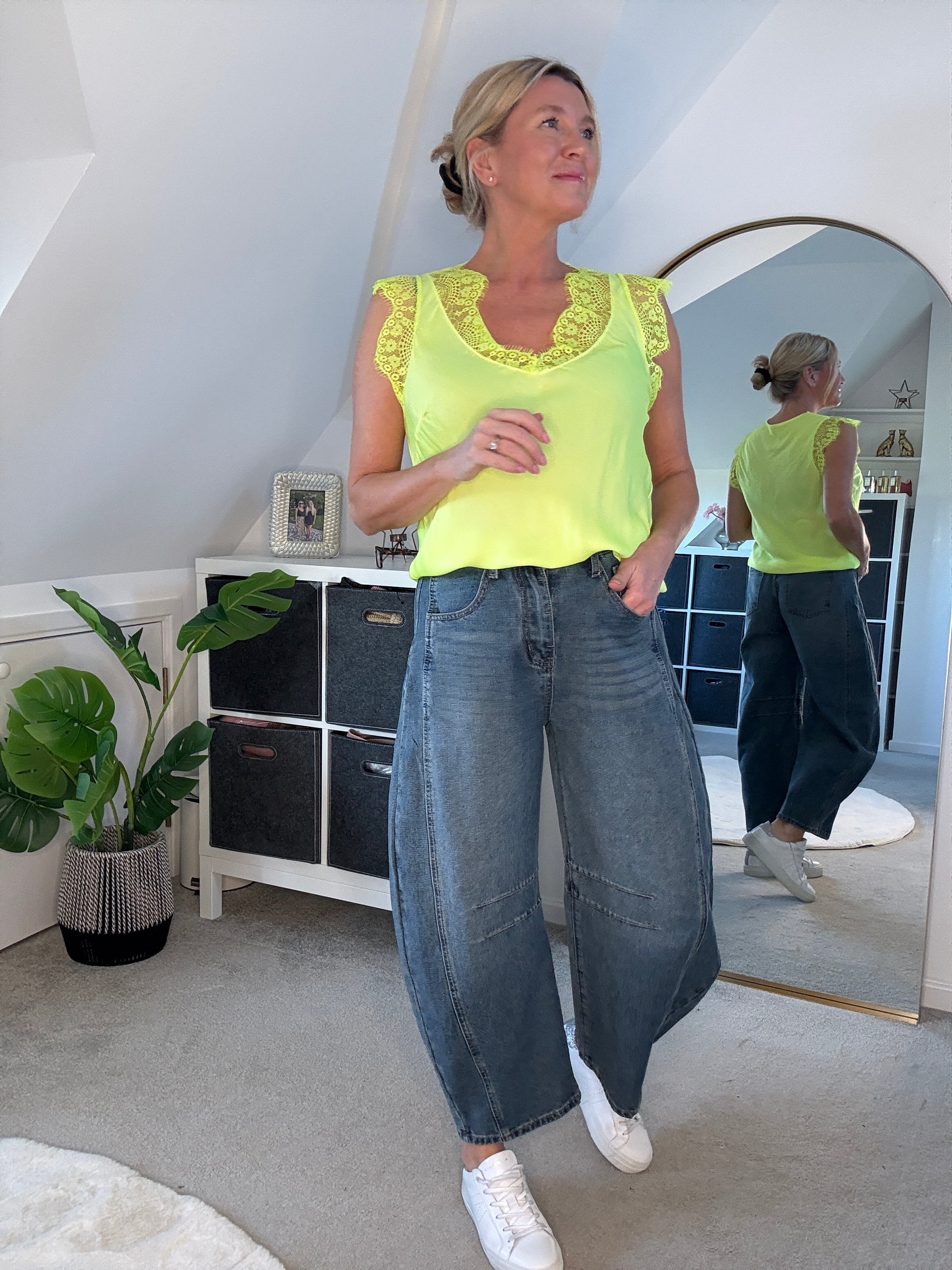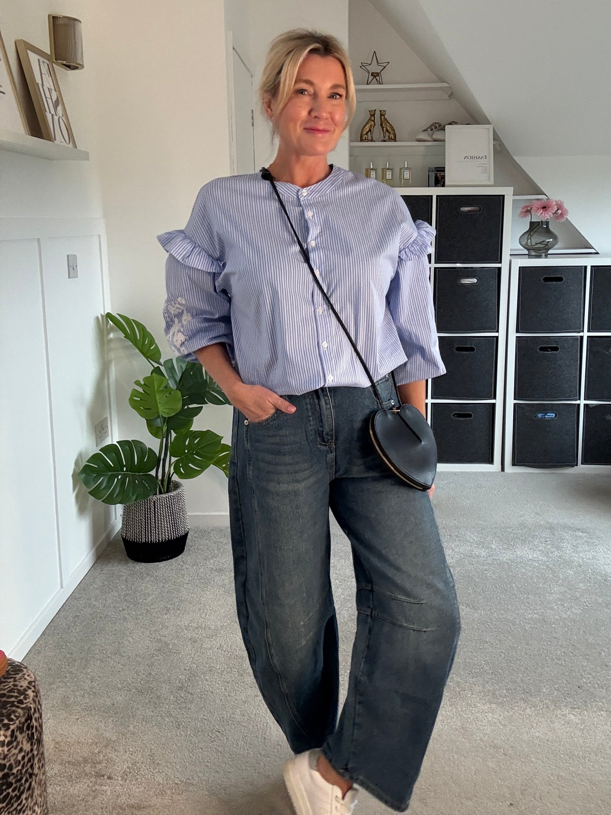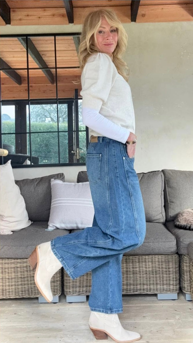 Super cool and trendy and extremely flattering barrel leg jeans. These mid rise slouchy