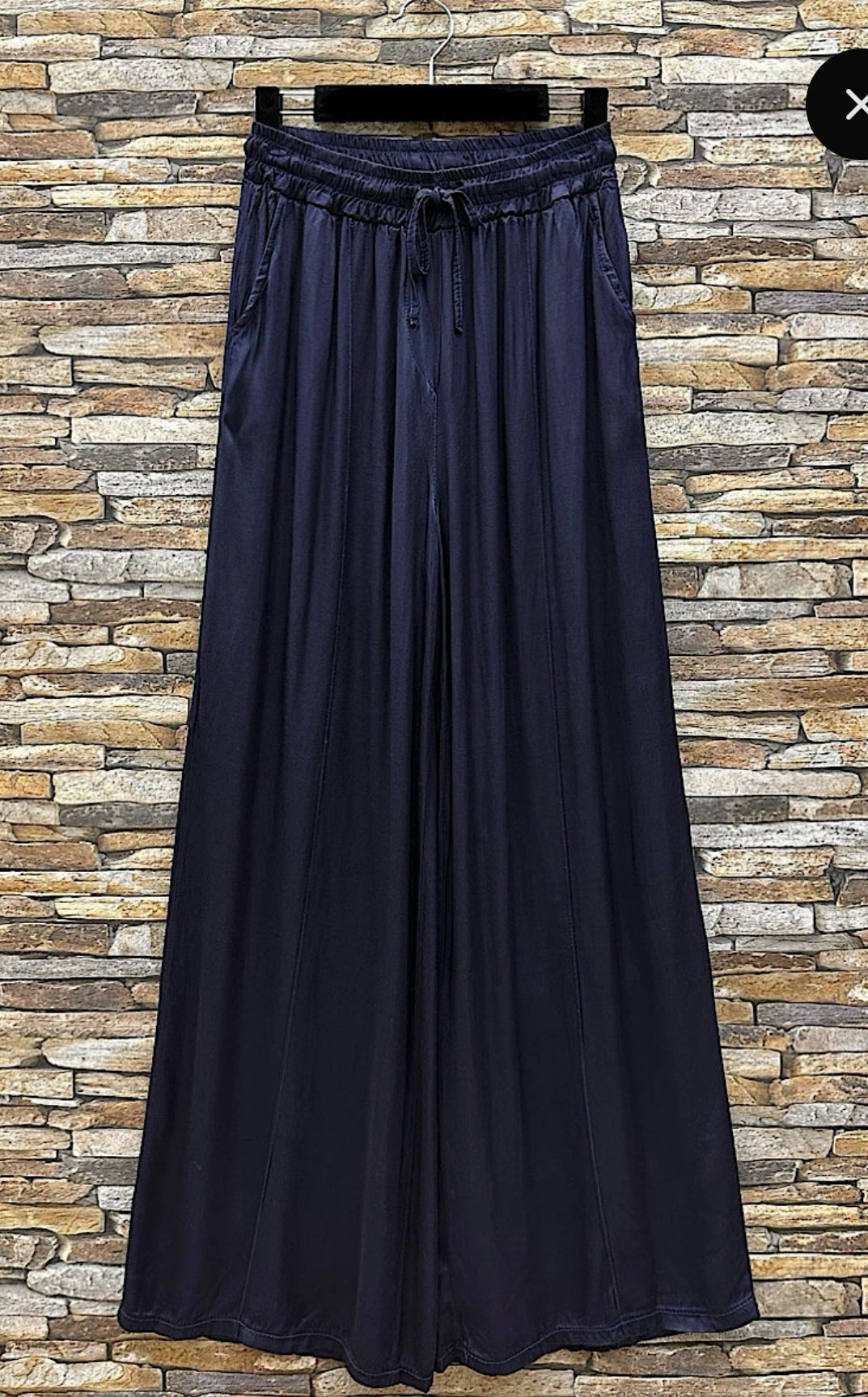Easy, breezy, and endlessly wearable, these plain wide leg trousers are your go-to for effortless style. Made from soft, silky/satin viscose with a fluid drape and elasticated waistband and drawstring tie, they offer all-day comfort with a flattering, laid-back fit.