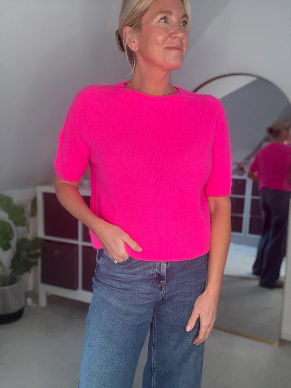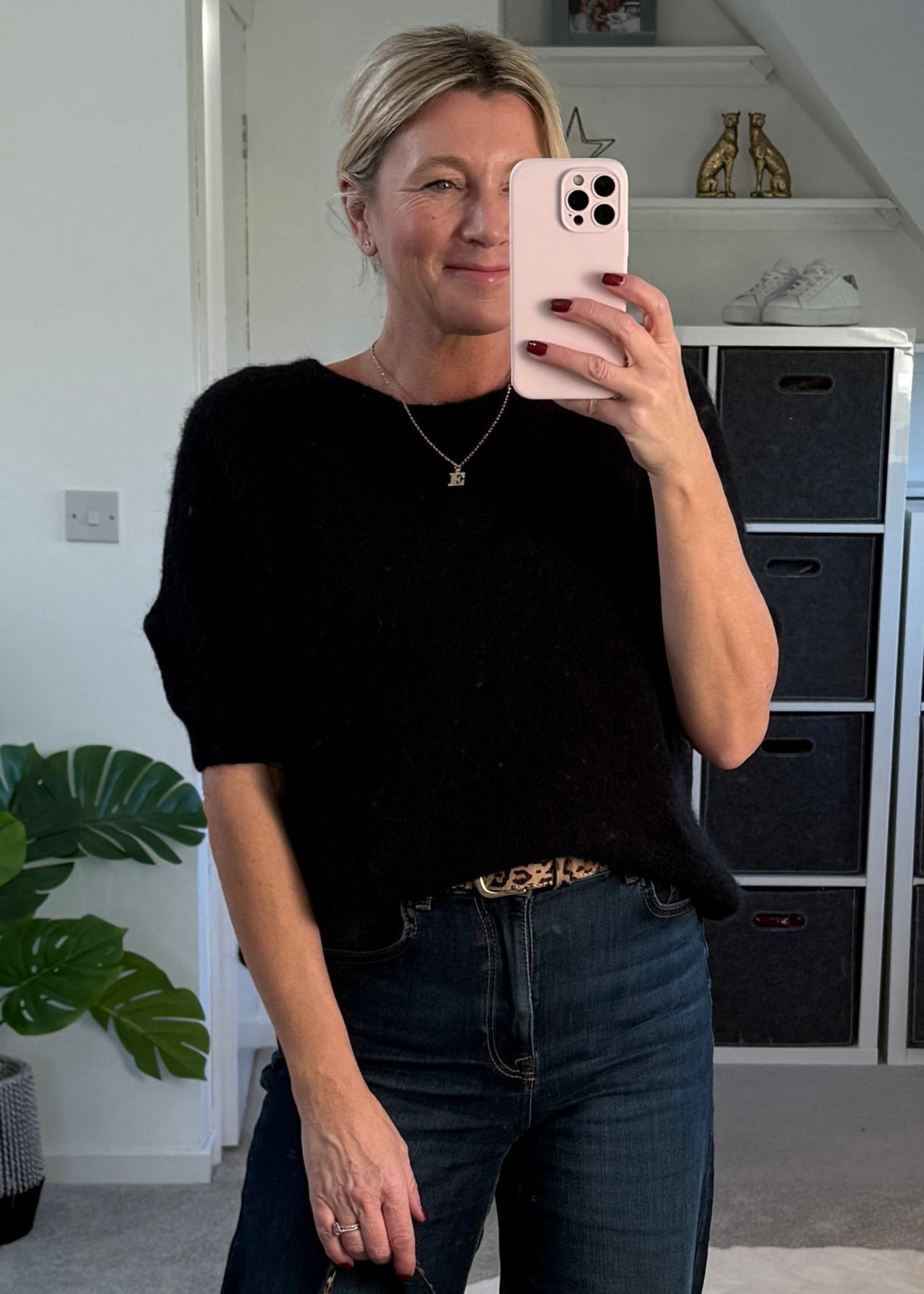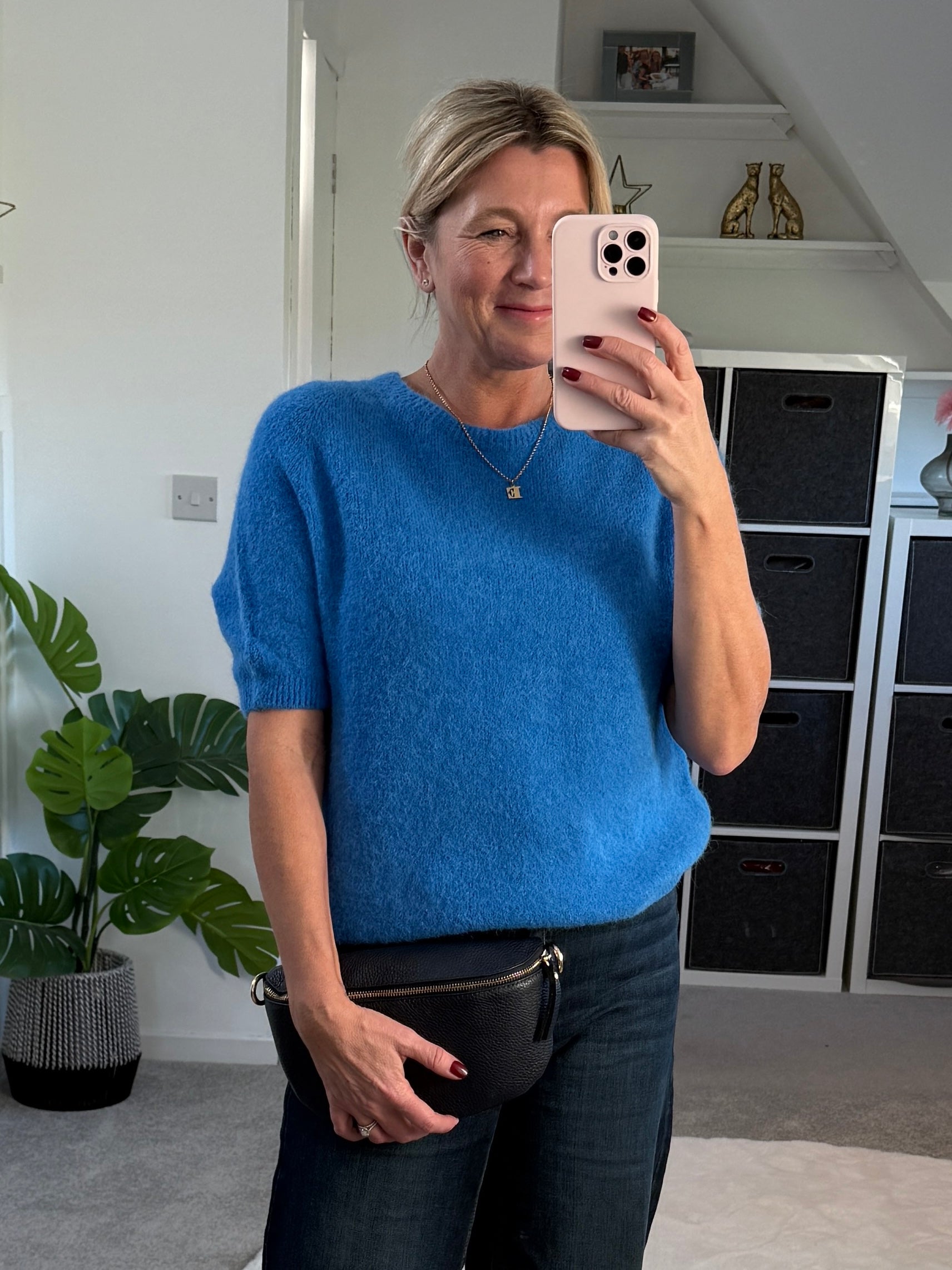 Super chic, soft fluffy short sleeve jumper. A wardrobe staple that will go will lots of outfits. Easy to layer over a long sleeve tee and I love it styled with jeans and boots/trainers and a smart coat...Also looks fab with the sequin shorts (coming soon) and tights for the festive season!