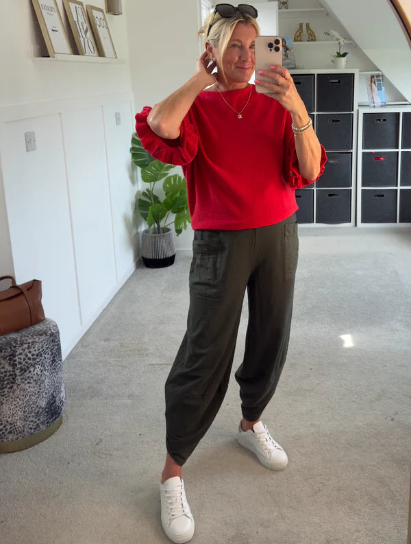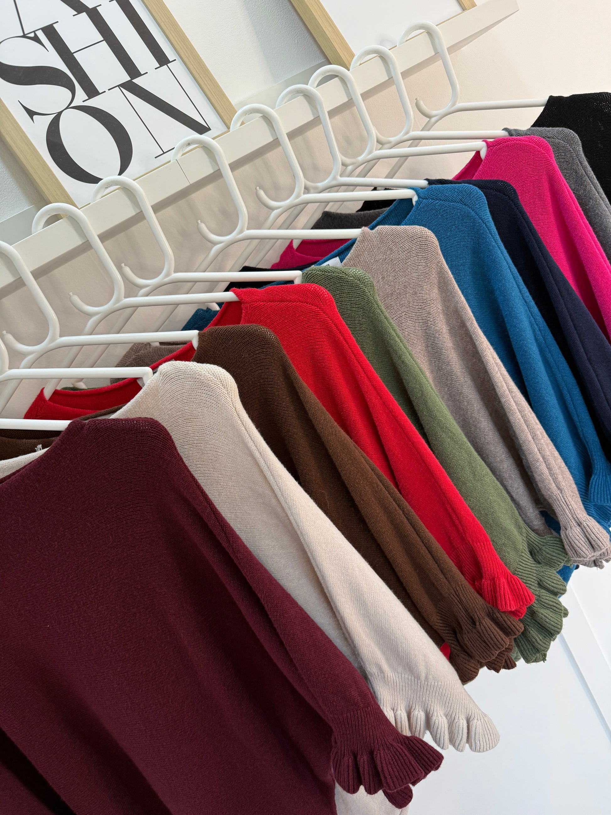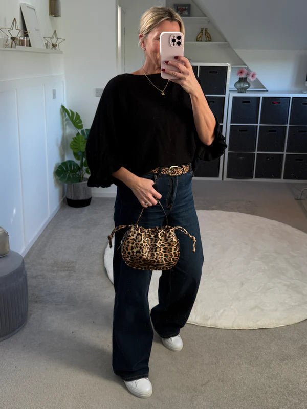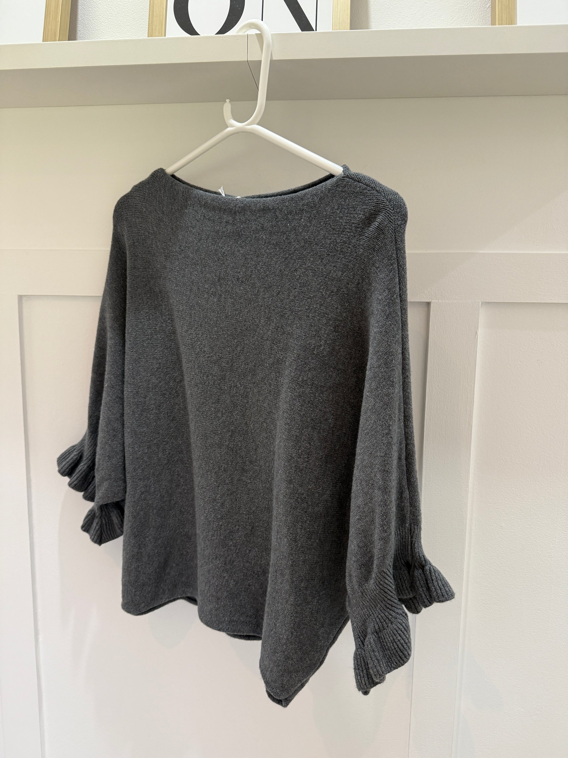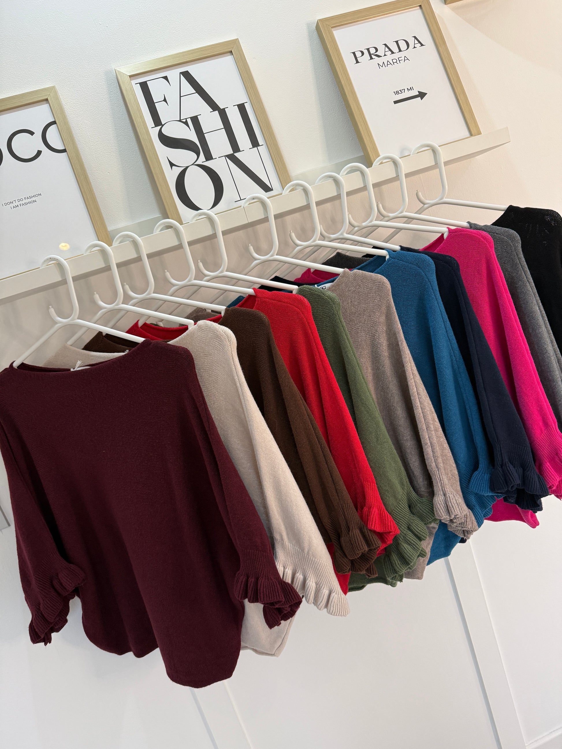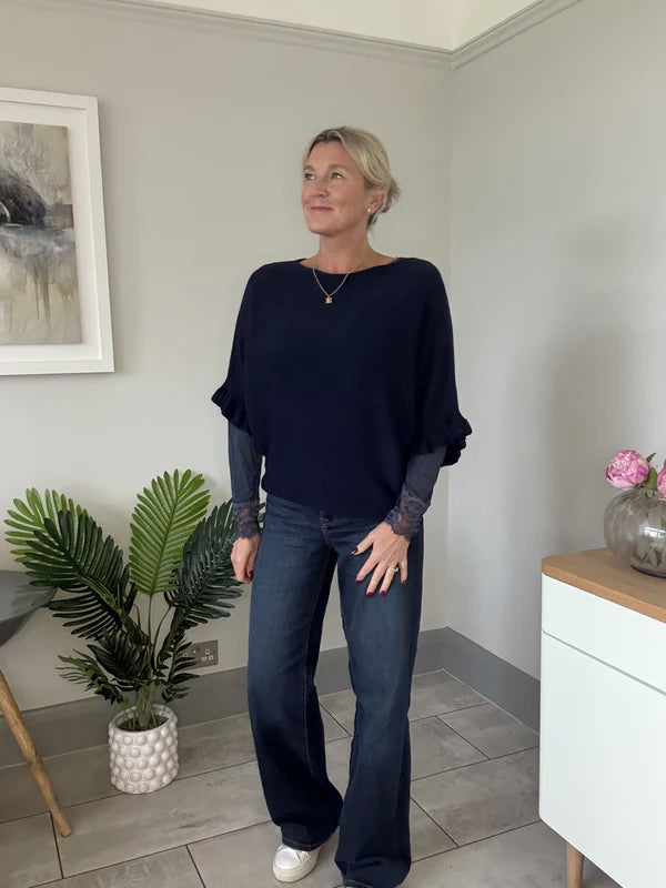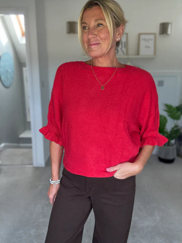 Absolutely gorgeous soft batwing jumper with cute 3/4 frill sleeves. Such a classic, flattering style. A nice one size relaxed fit that can be easily layered with a long sleeve top underneath.