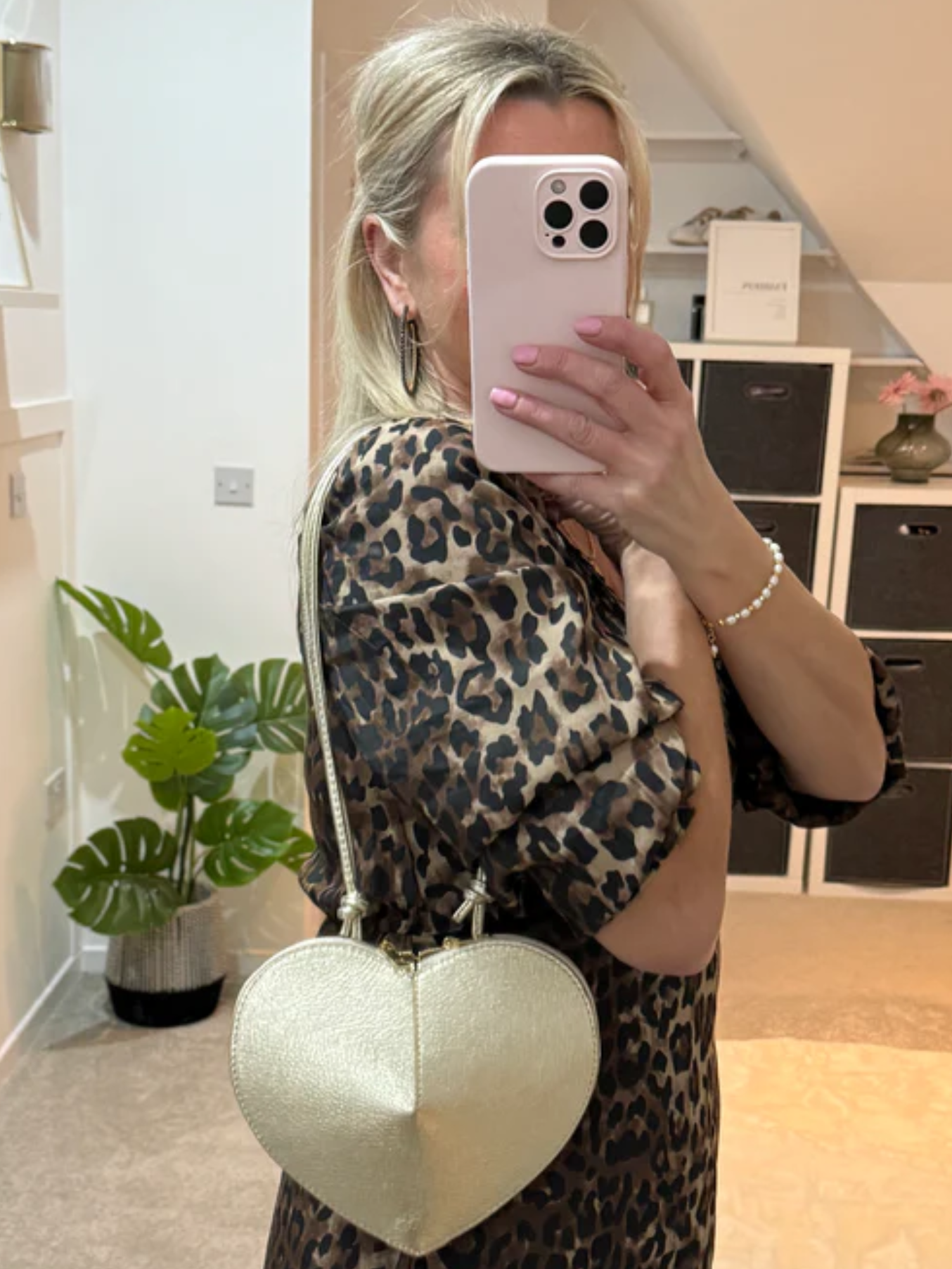 Super gorgeous heart bag made from Italian leather. With two zips and adjustable strap so can be worn crossbody aswell as over the shoulder. Such a cute bag to take on an evening out.