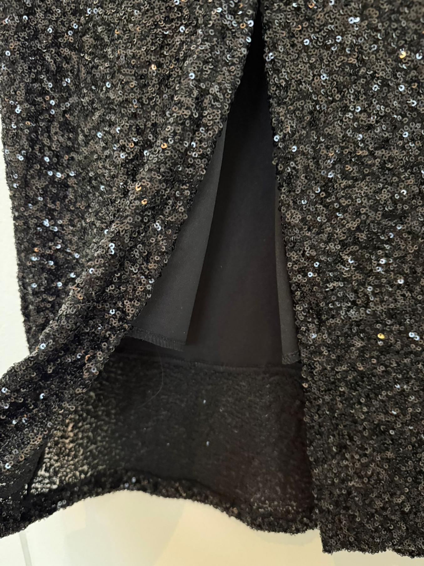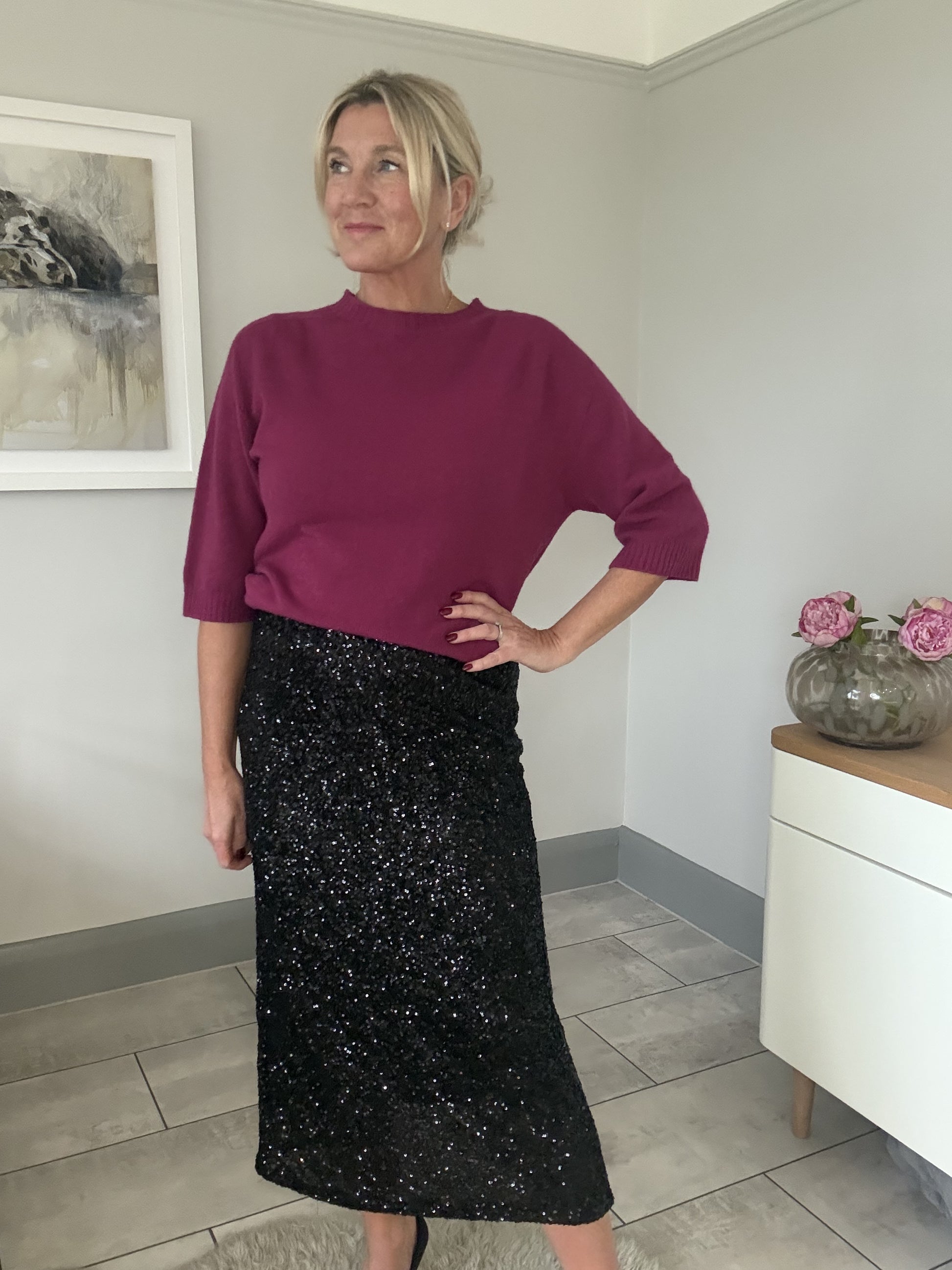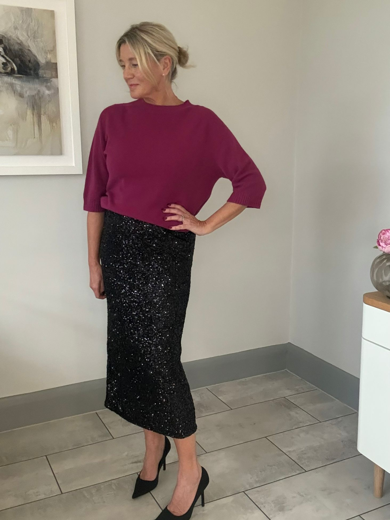 Stunning sequin pencil midi skirt with back split. Super quality and it's fully lined. Wear with a sparkly knit for truly show stopping evening look. Or, team with T shirt or fine knit and heels for a more laid back party look.