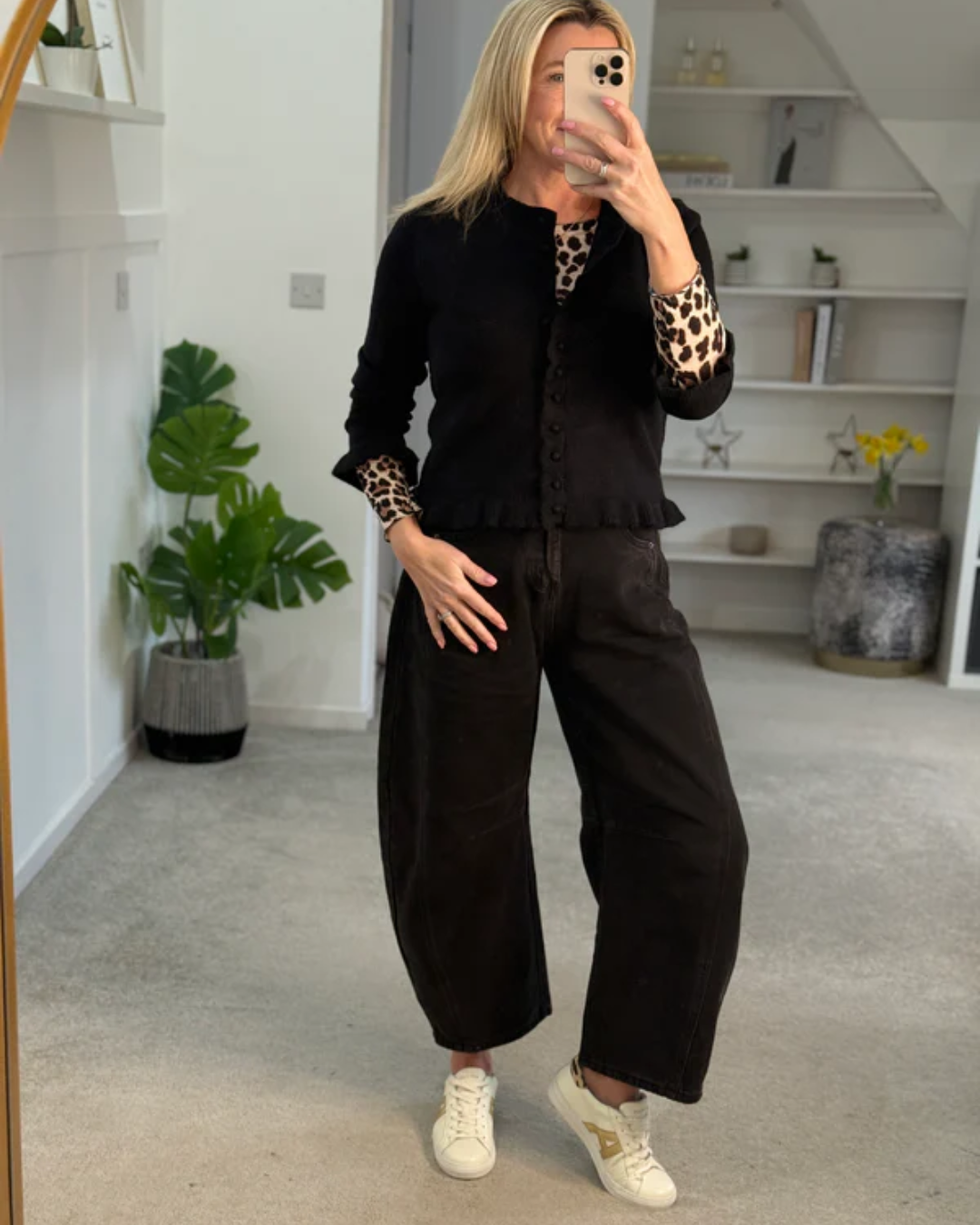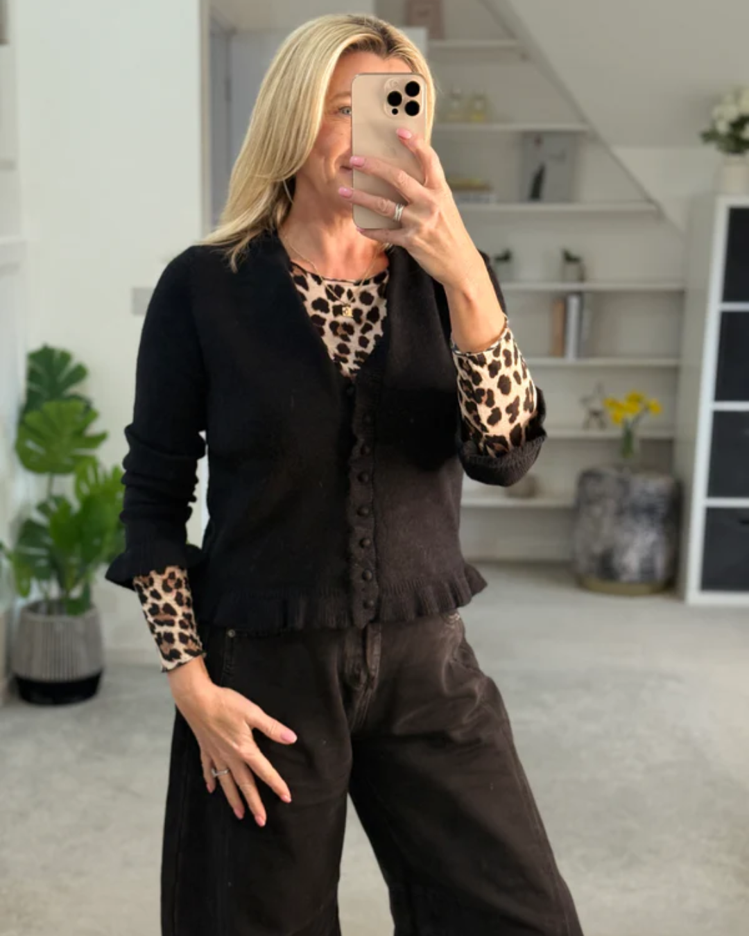Style it with the Leopard Cashmere Blend Layering Top and slouchy jeans for an effortless look.