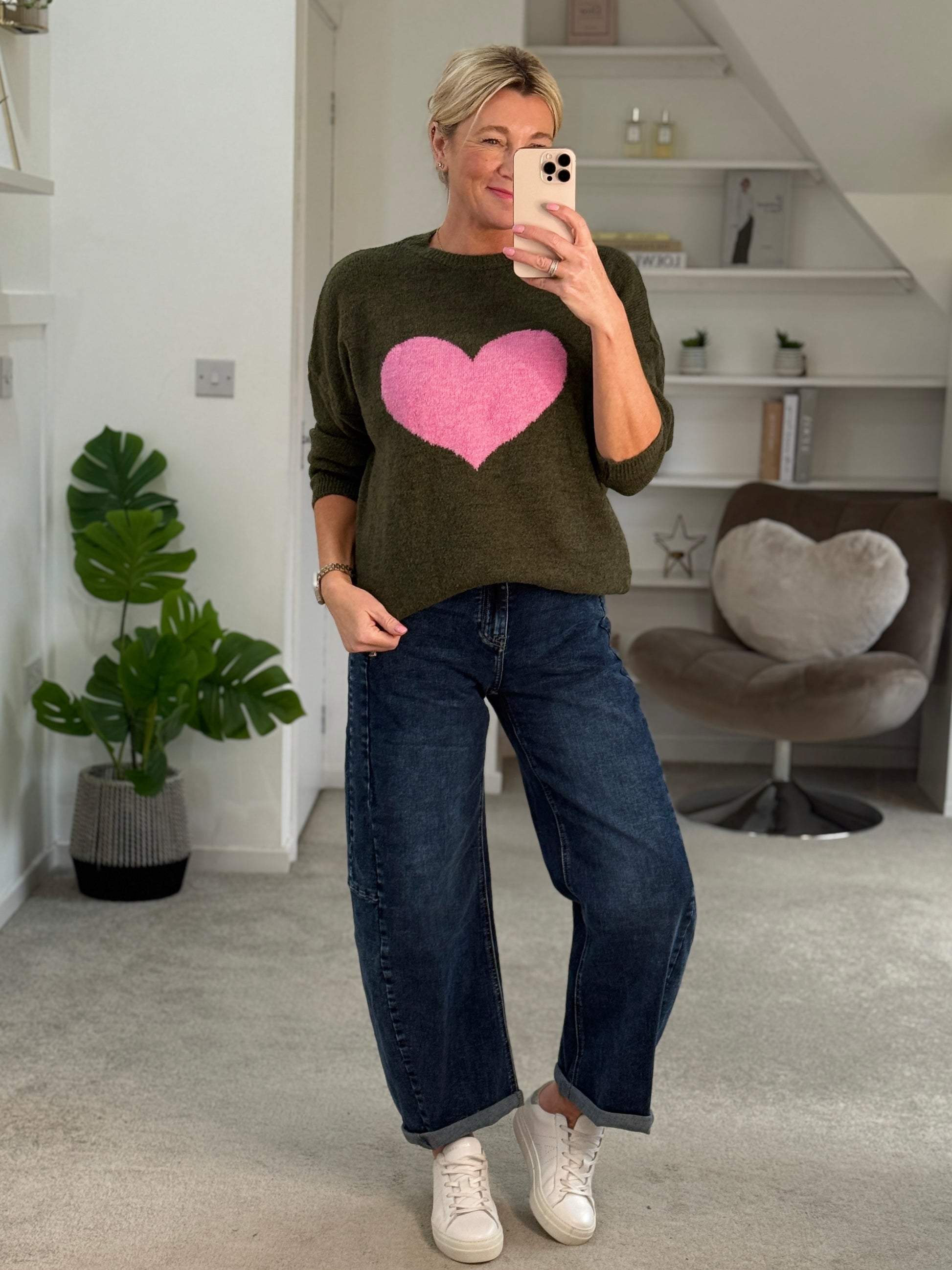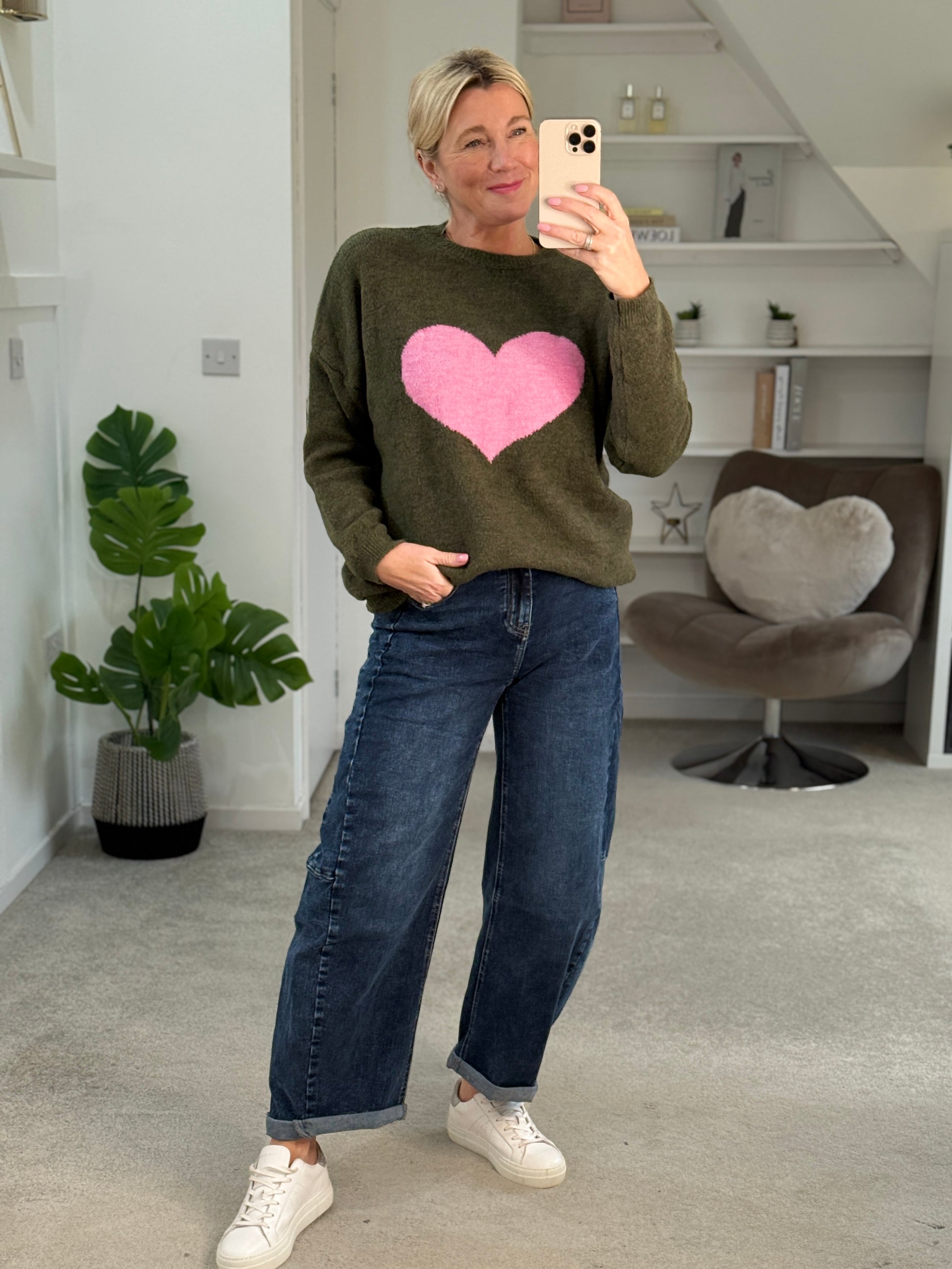 Khaki/Pink Heart Jumper