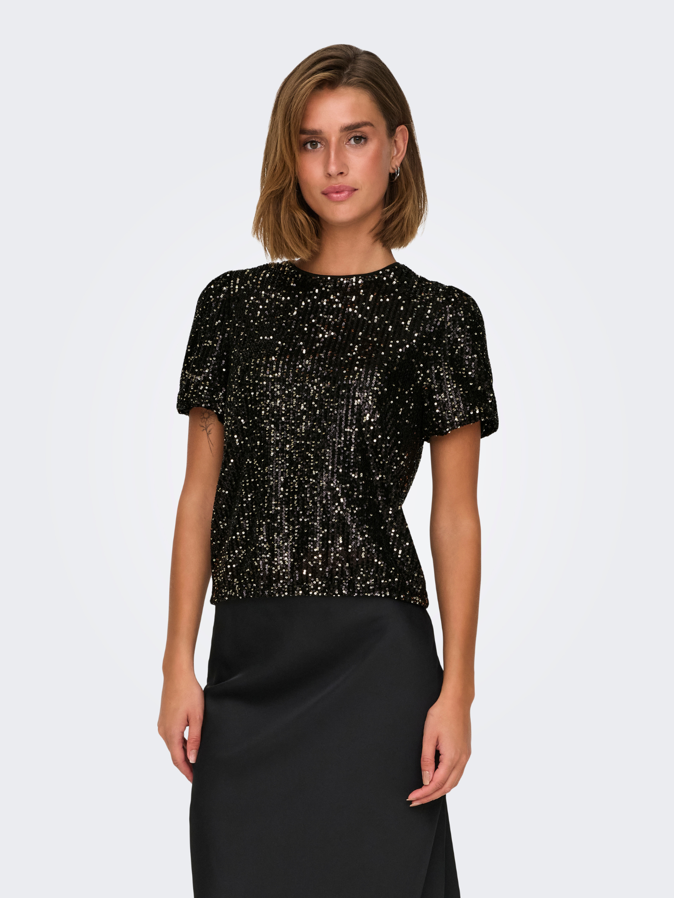 Super gorgeous sequin puff sleeve top. It has a very flattering classic regular fit top and so versatile, will go with lots of party outfits!!! Style with coated black jeans and boots or with a contrasting satin slip skirt or trousers and heels for the evening.