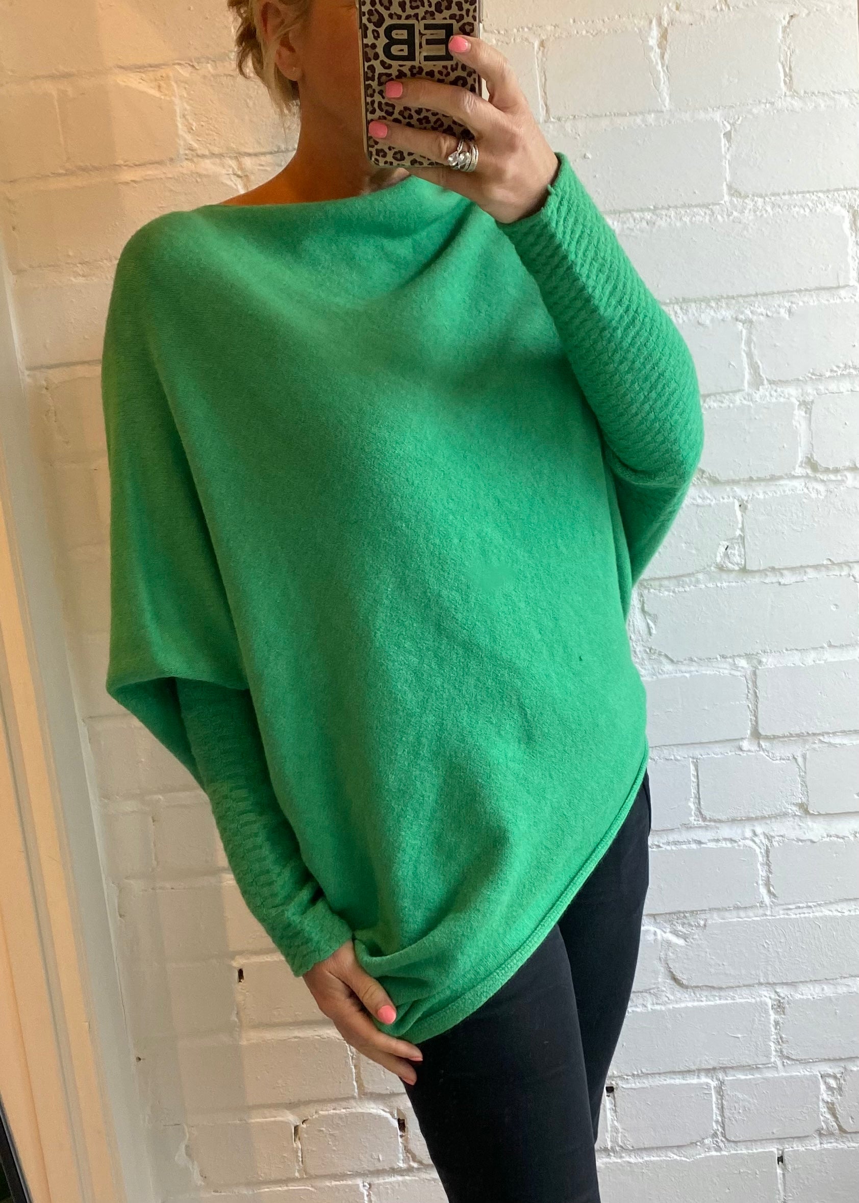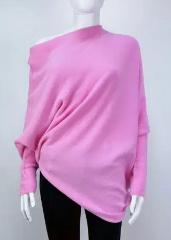 Such a classic & flattering draped style. This lovely jumper can be worn on or off the shoulder and is such a fabulous shape. It's a great wardrobe staple and is really soft to touch.