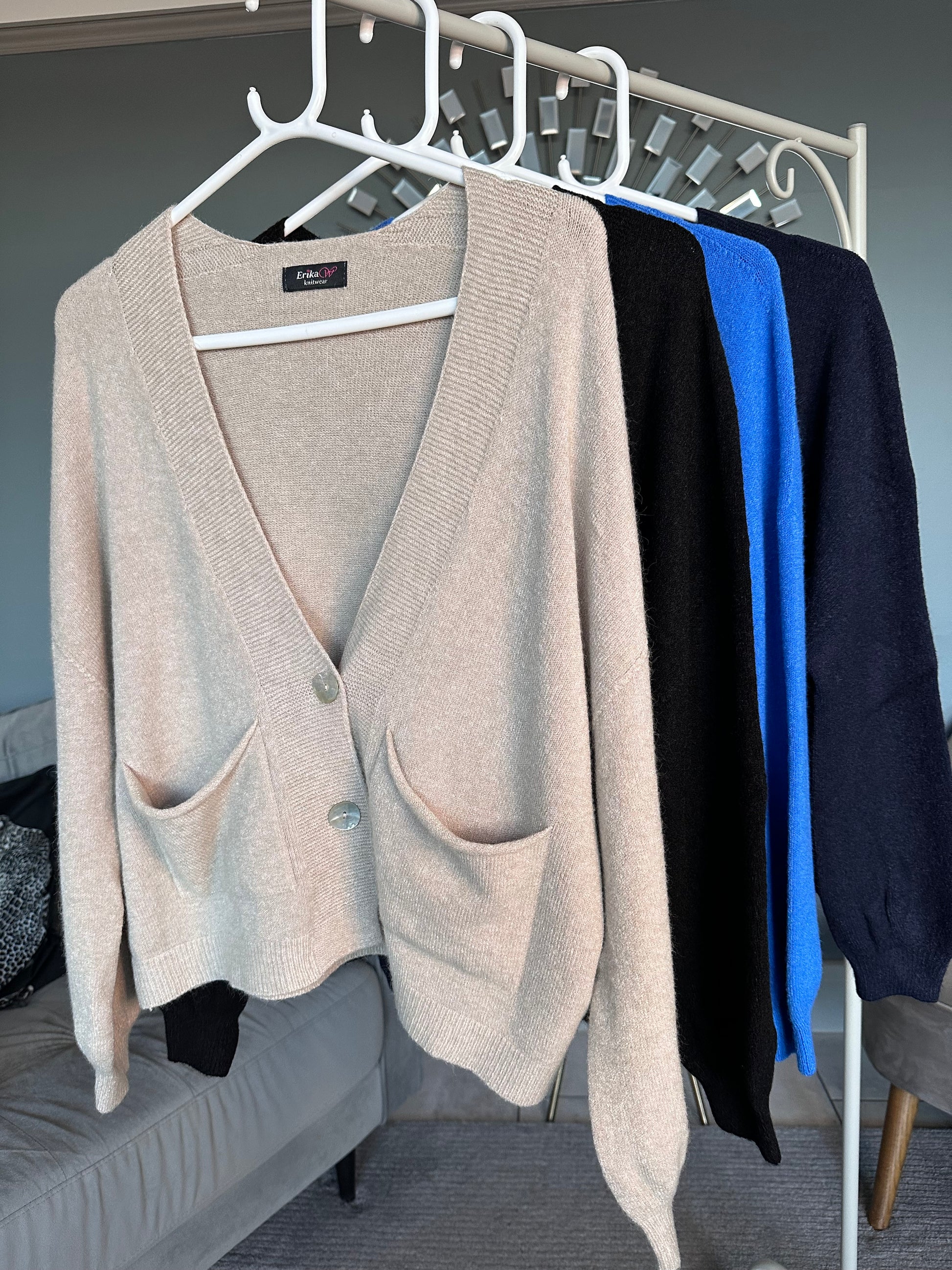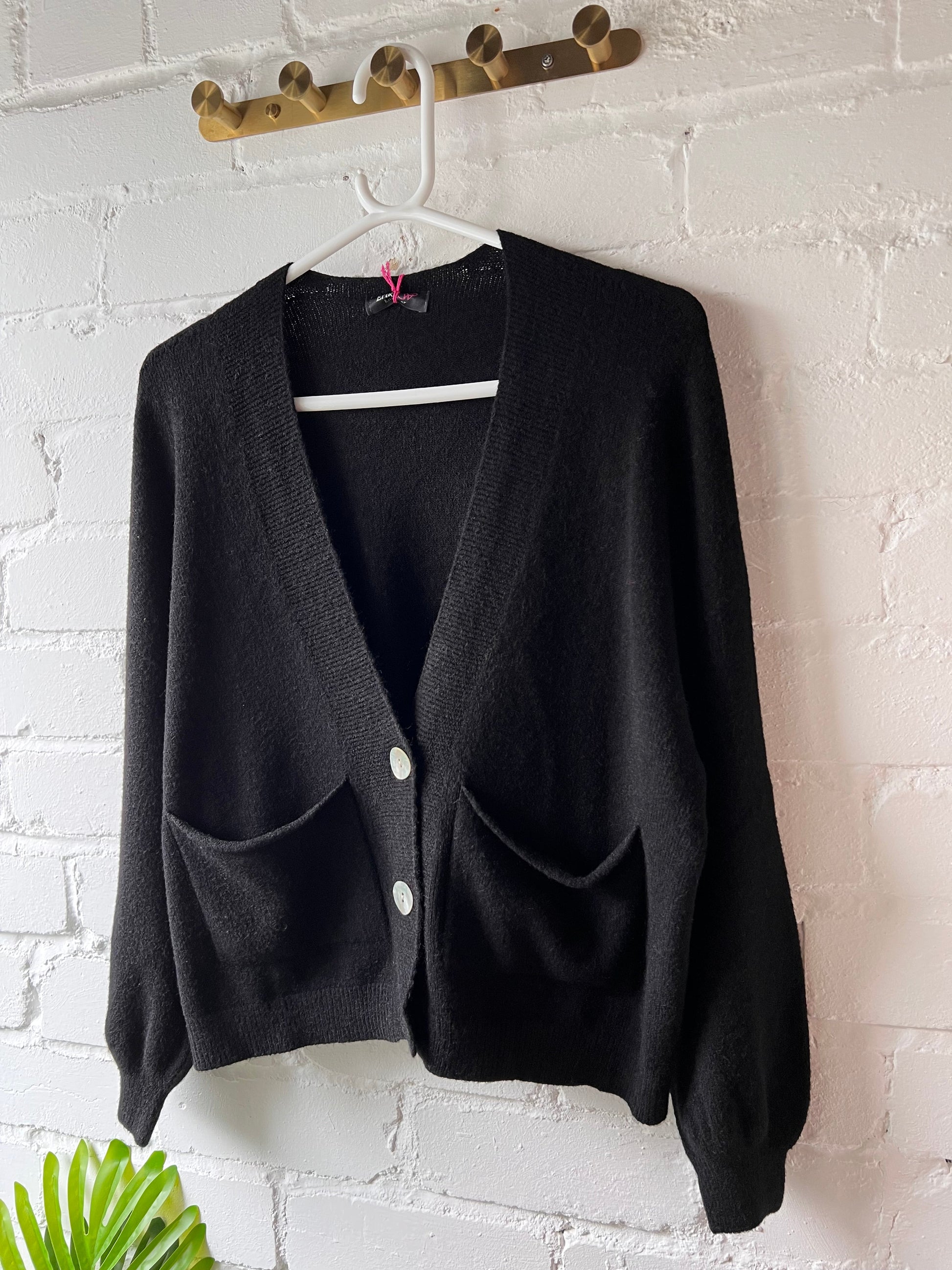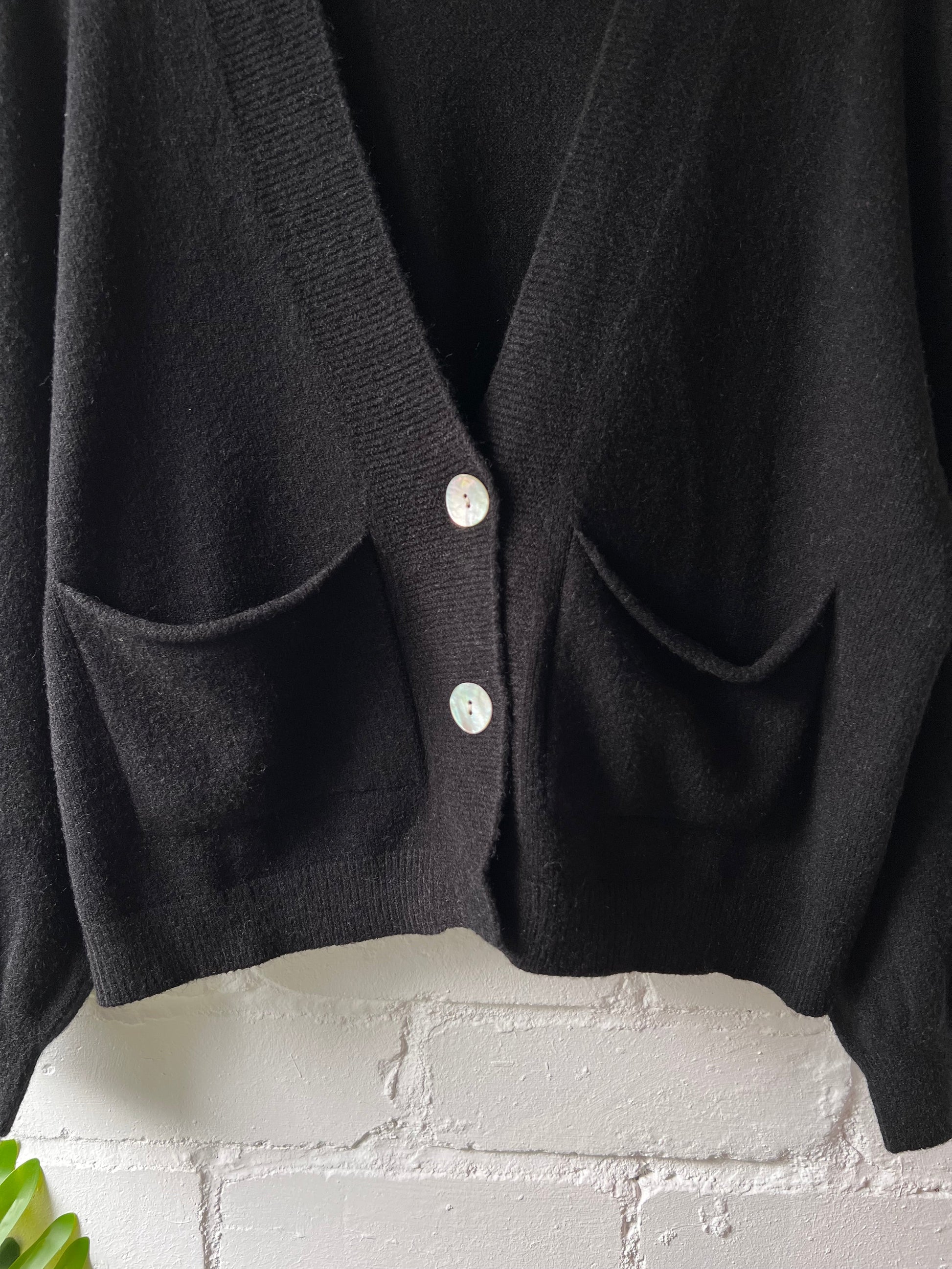 Super soft cardigan with a V-neckline and ribbed edge at the hem and cuff. So versatile and can be worn over dresses or with jeans or skirts. A nice weight, not too thick so will be great going through to Autumn.