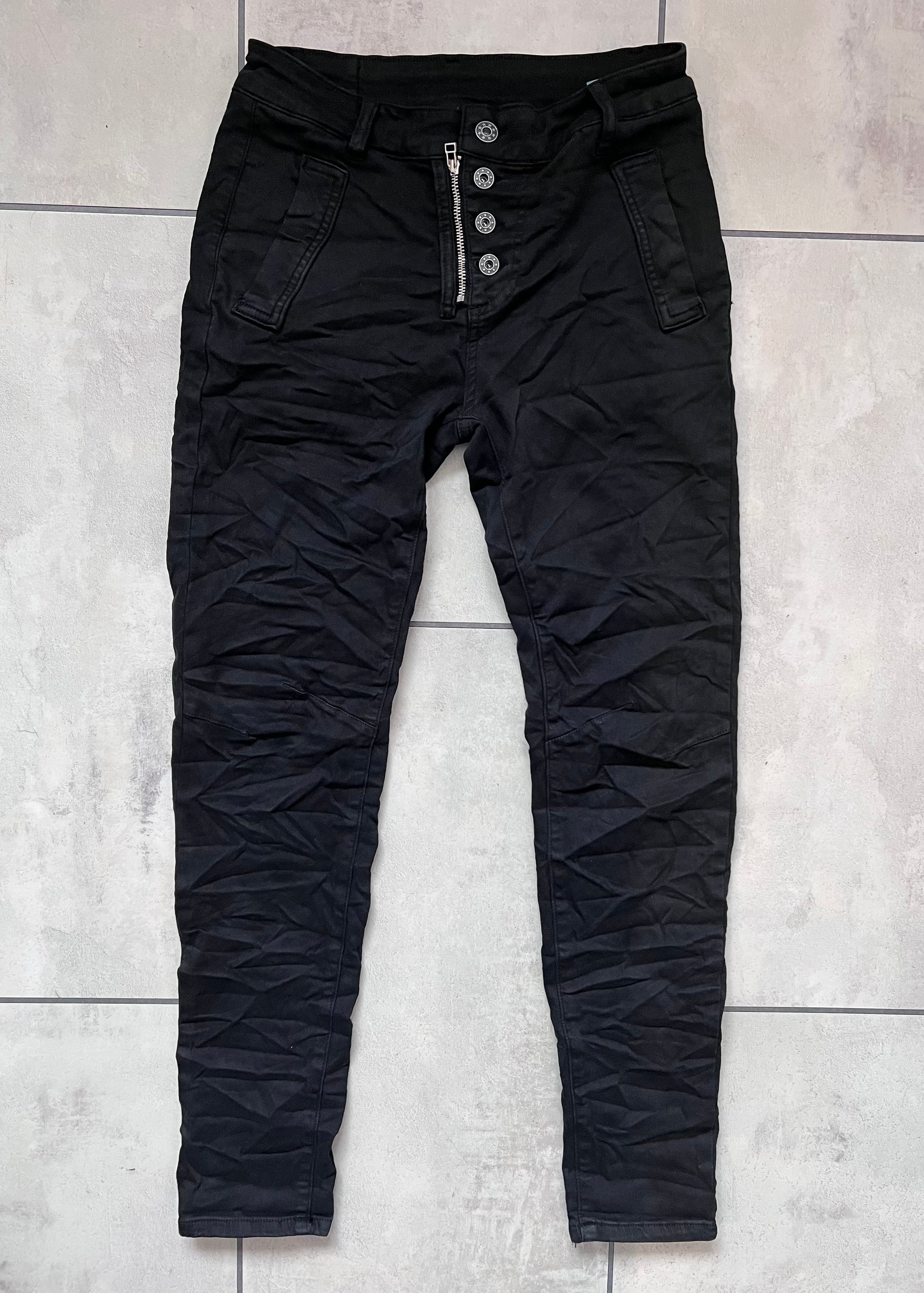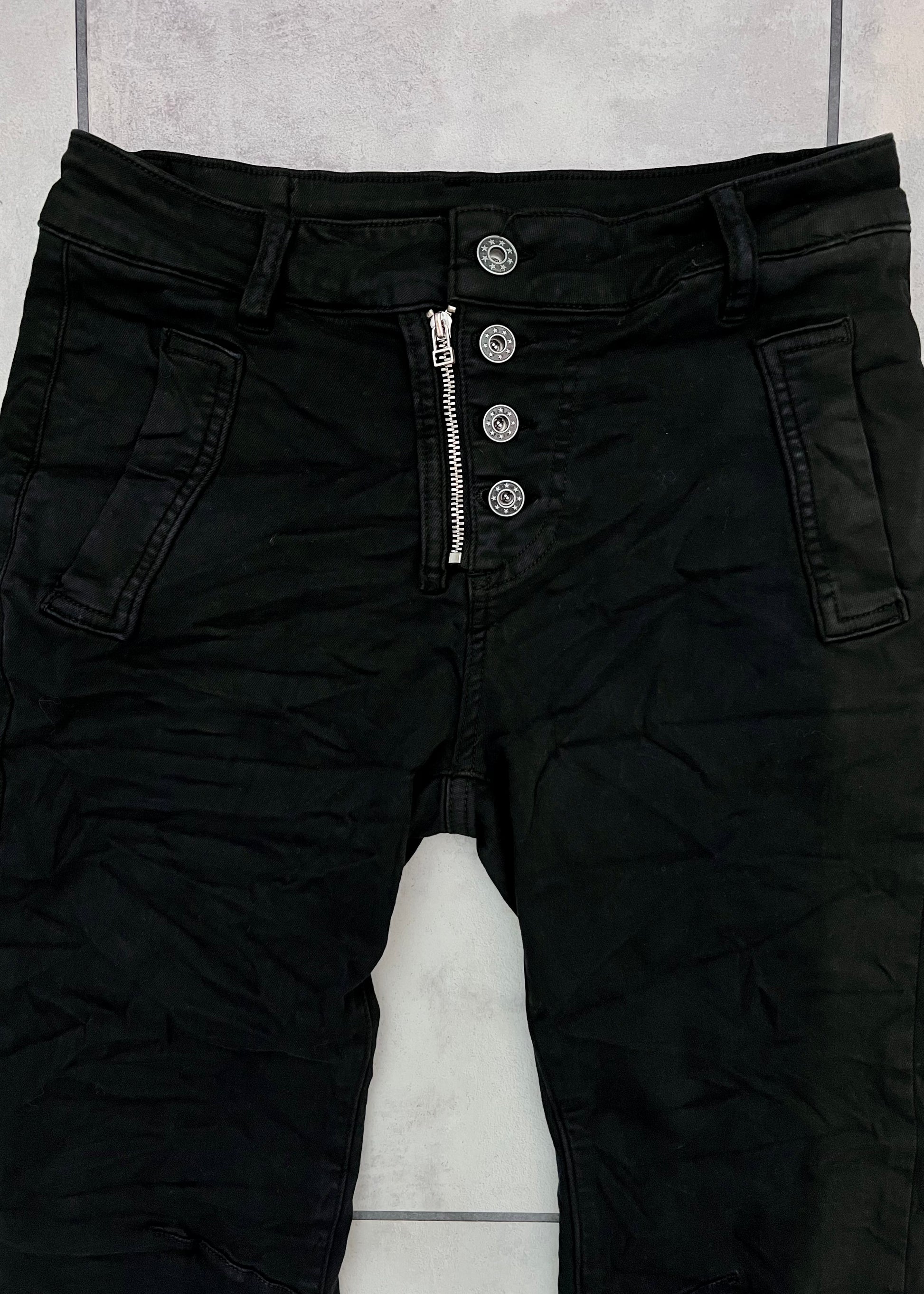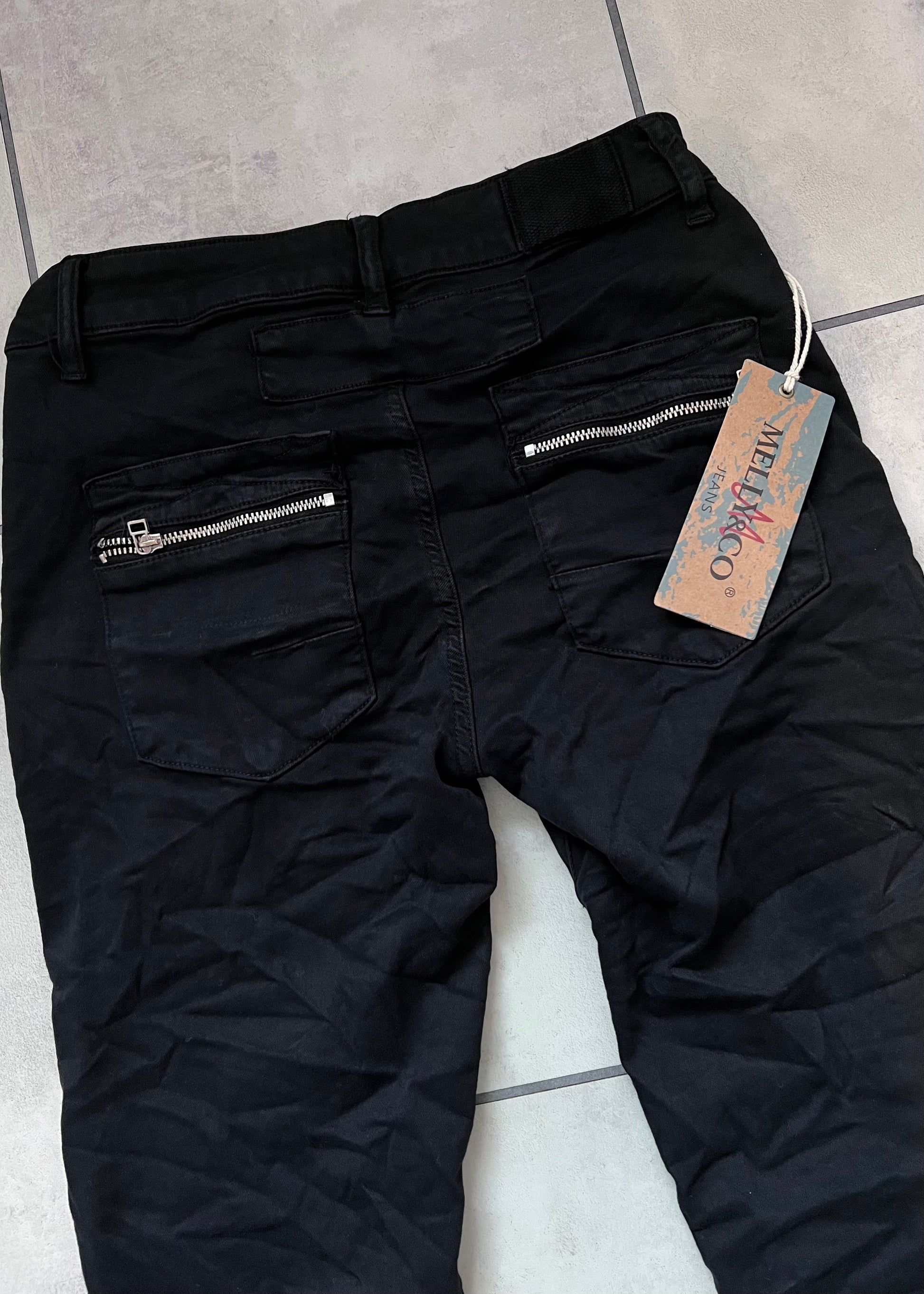 Super comfy and extremely flattering Melly & Co jeans! The elastane in these makes them so comfortable. With a four button and zip front fastening and pockets with zips on the back. Great dressed up with a blazer and heels or down with knitwear and trainers.