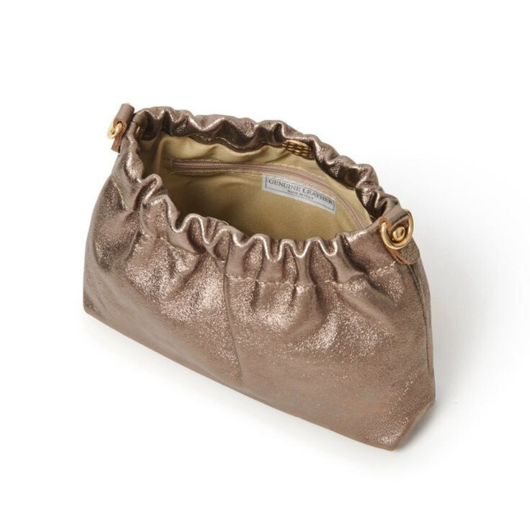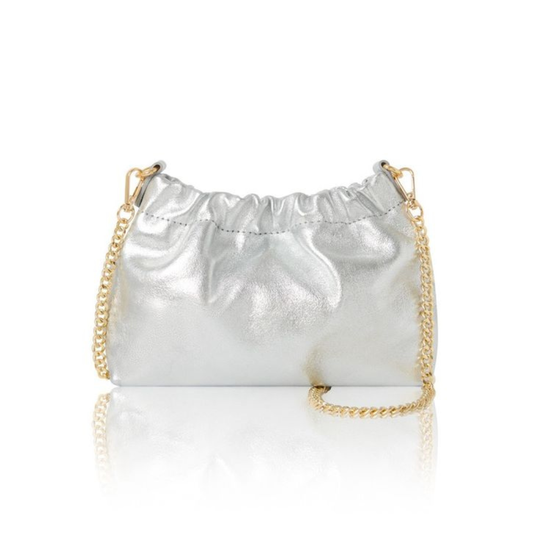 This NEW LEATHER squishy metallic Clutch Bag is expertly crafted with Italian leather, making it a must-have for any stylish occasion. Whether you're attending a party or an evening event, this bag will add a touch of elegance to your look.