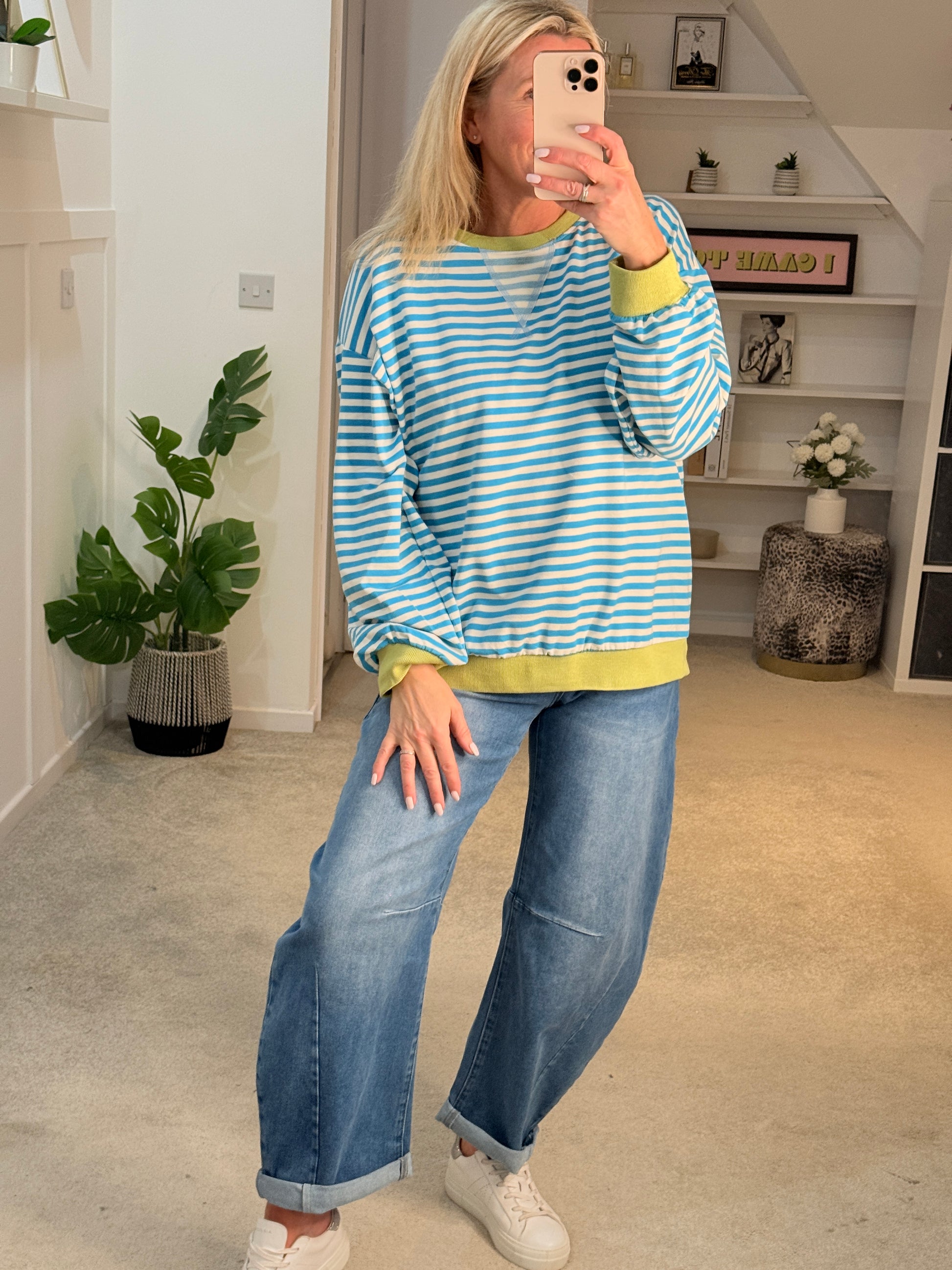 New Barrel Leg Jeans in a NEW light denim wash...so super comfy with a lovely stretch to them. A really lovely fit, not too loose or baggy on the legs. Just perfect for every day wear styled with trainers and a knit.