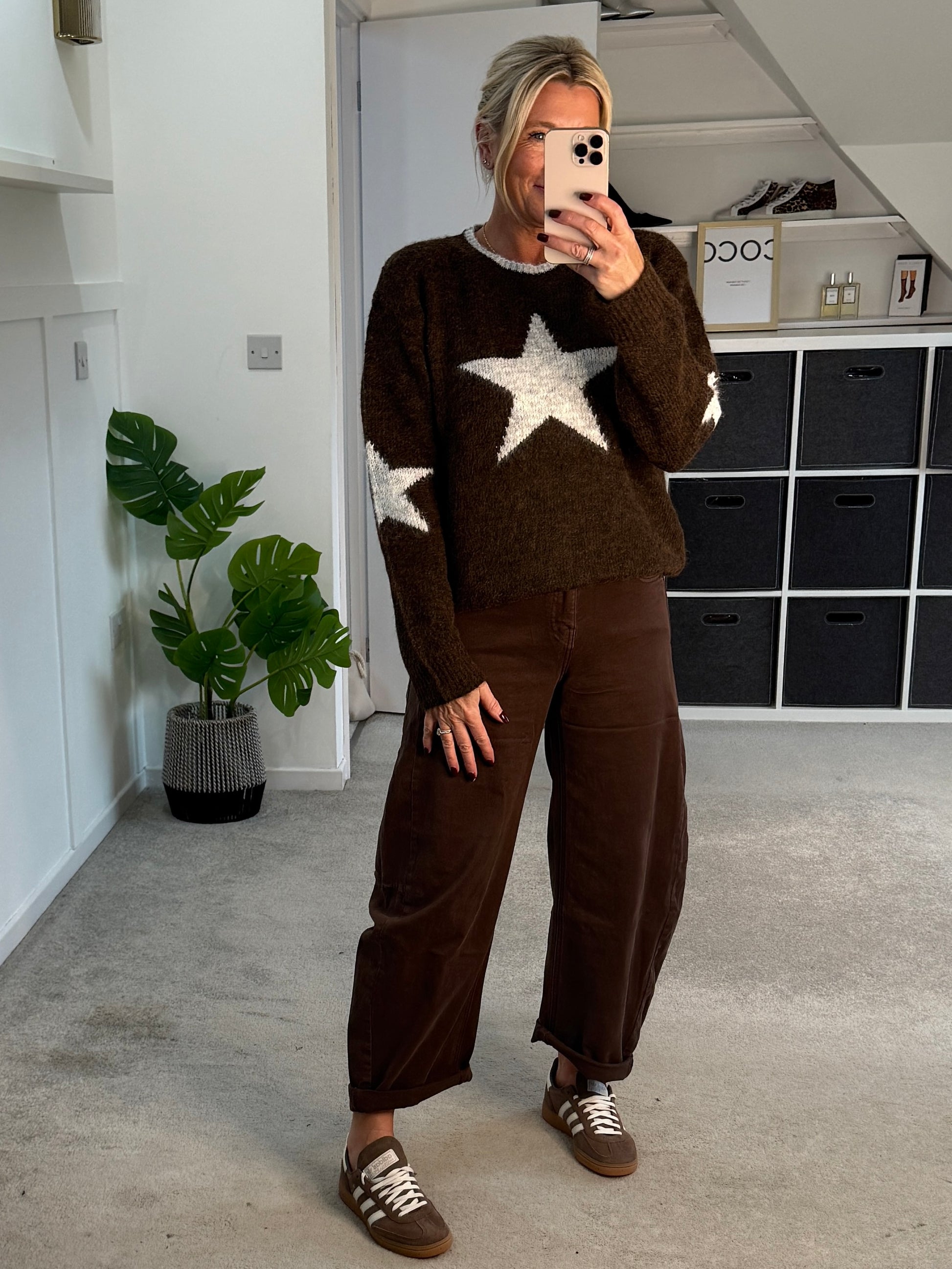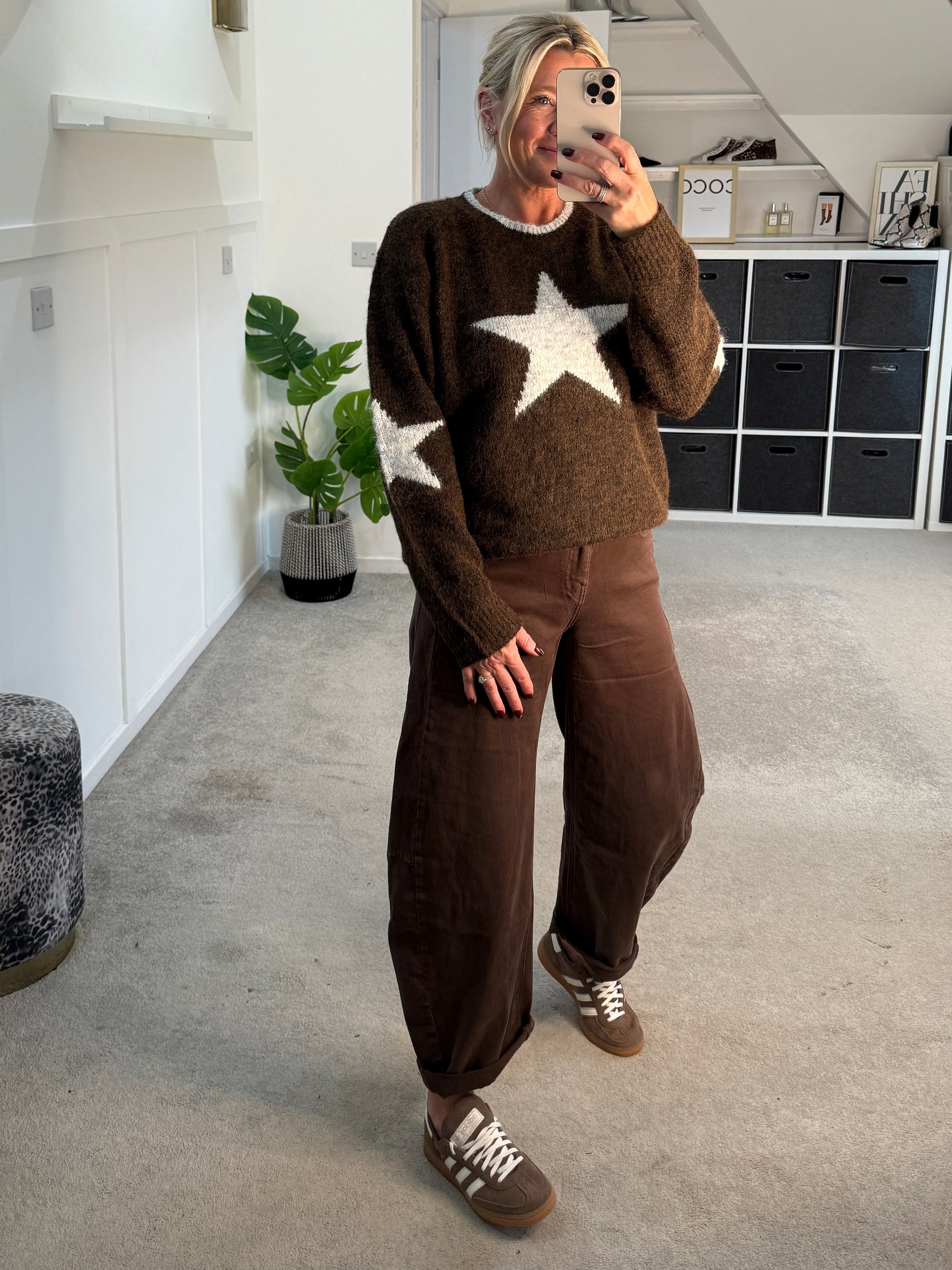New barrel leg jeans. These mid rise slouchy barrel Leg jeans sit nicely on the ankle, have a zip closure and classic 4 pocket styling.
