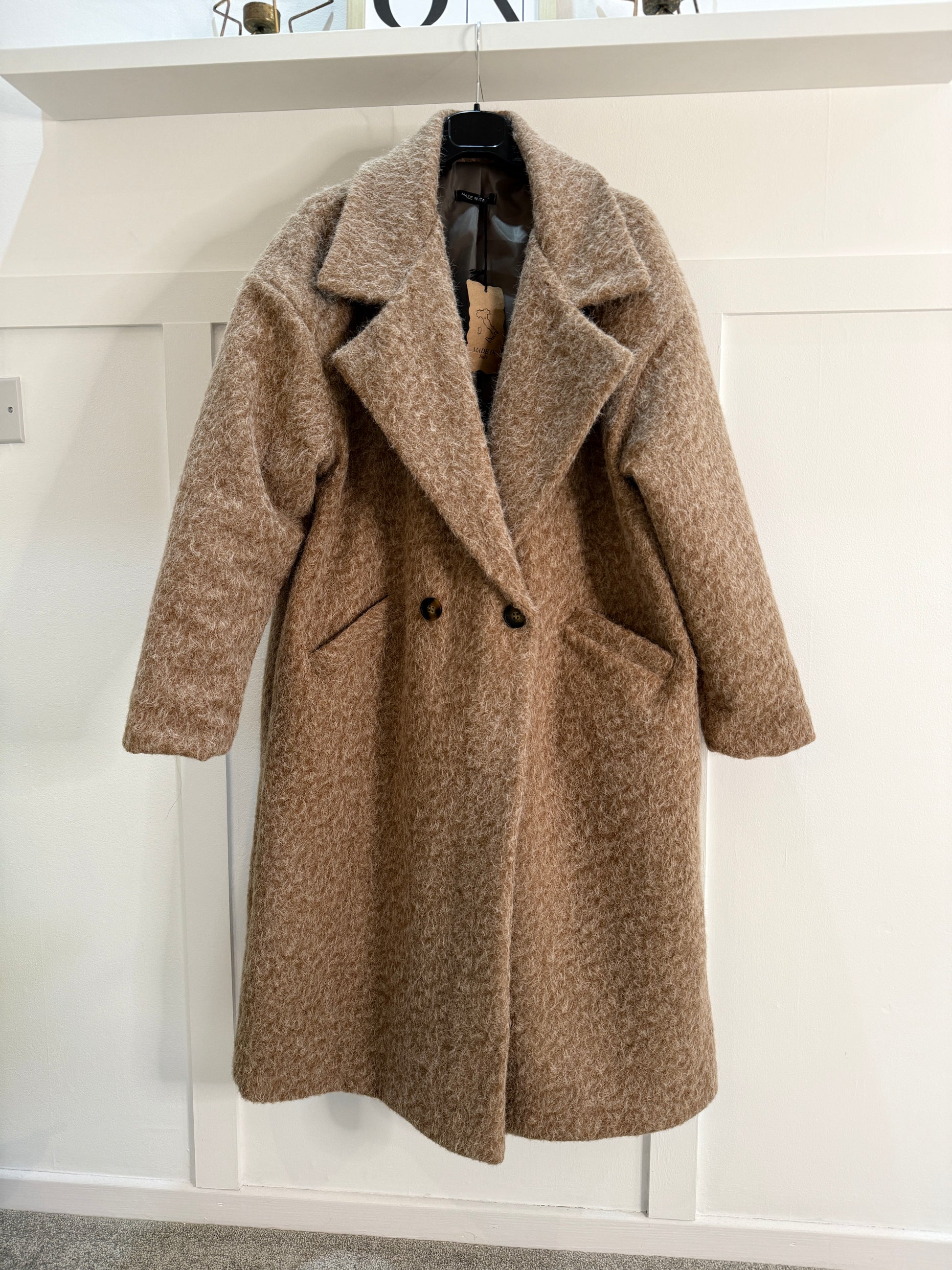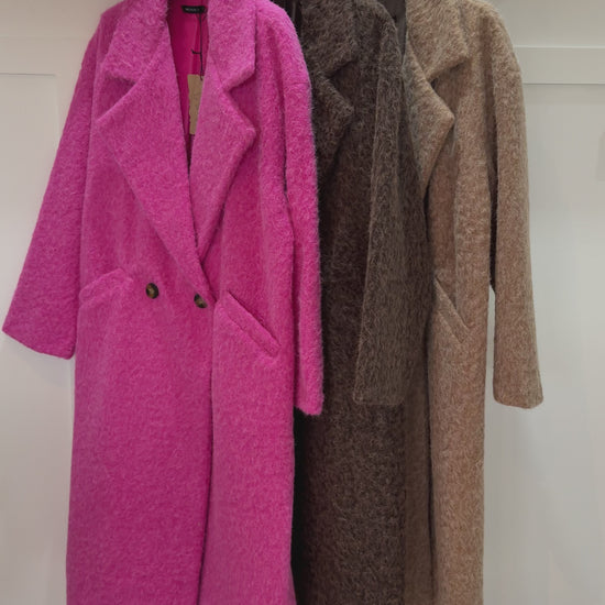 Make a bold and beautiful statement this winter with oversized cosy coat. Crafted in a brushed fabric, it features a deep revere collar, flattering midi length, and clean double-breasted front with two buttons for an effortlessly chic silhouette.