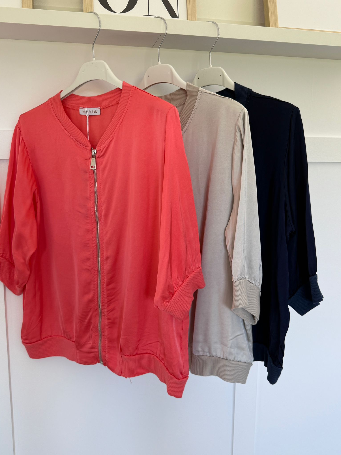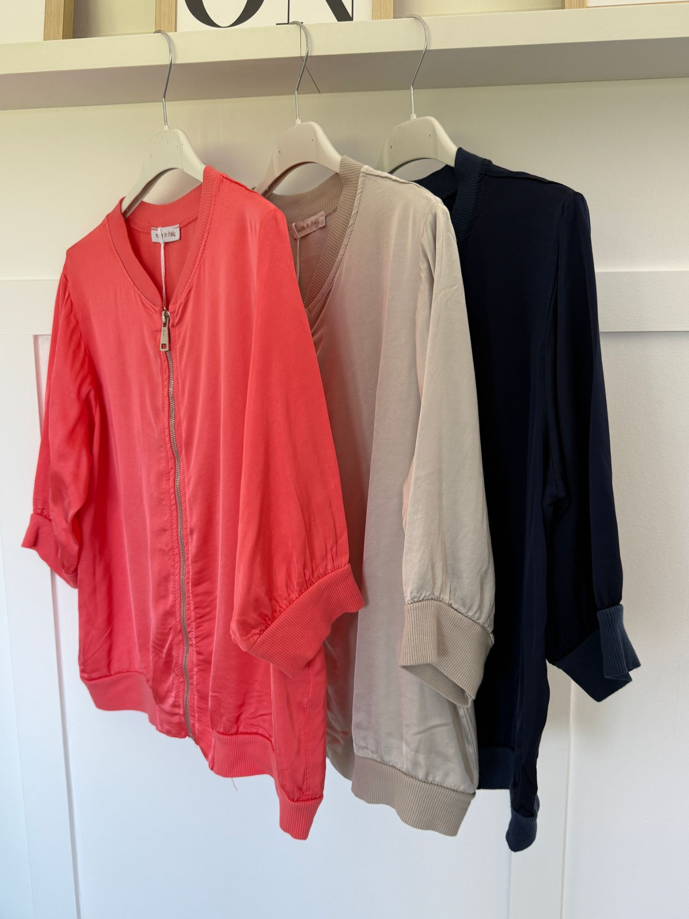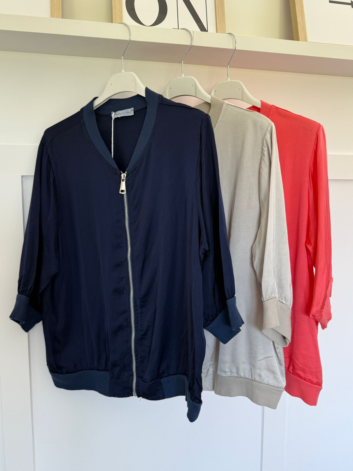Add a touch of laid-back luxe to your wardrobe with this gorgeous silk mix bomber jacket!