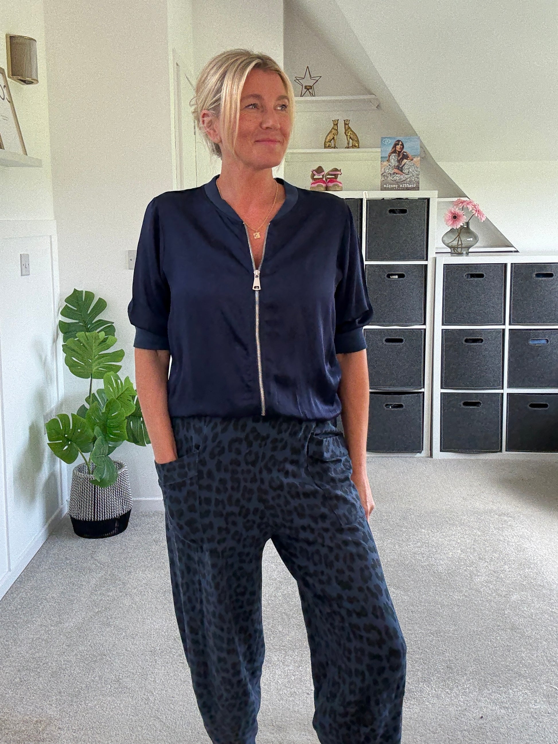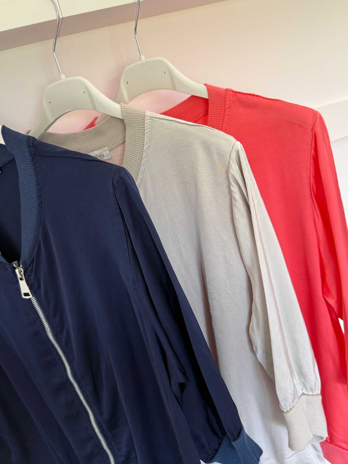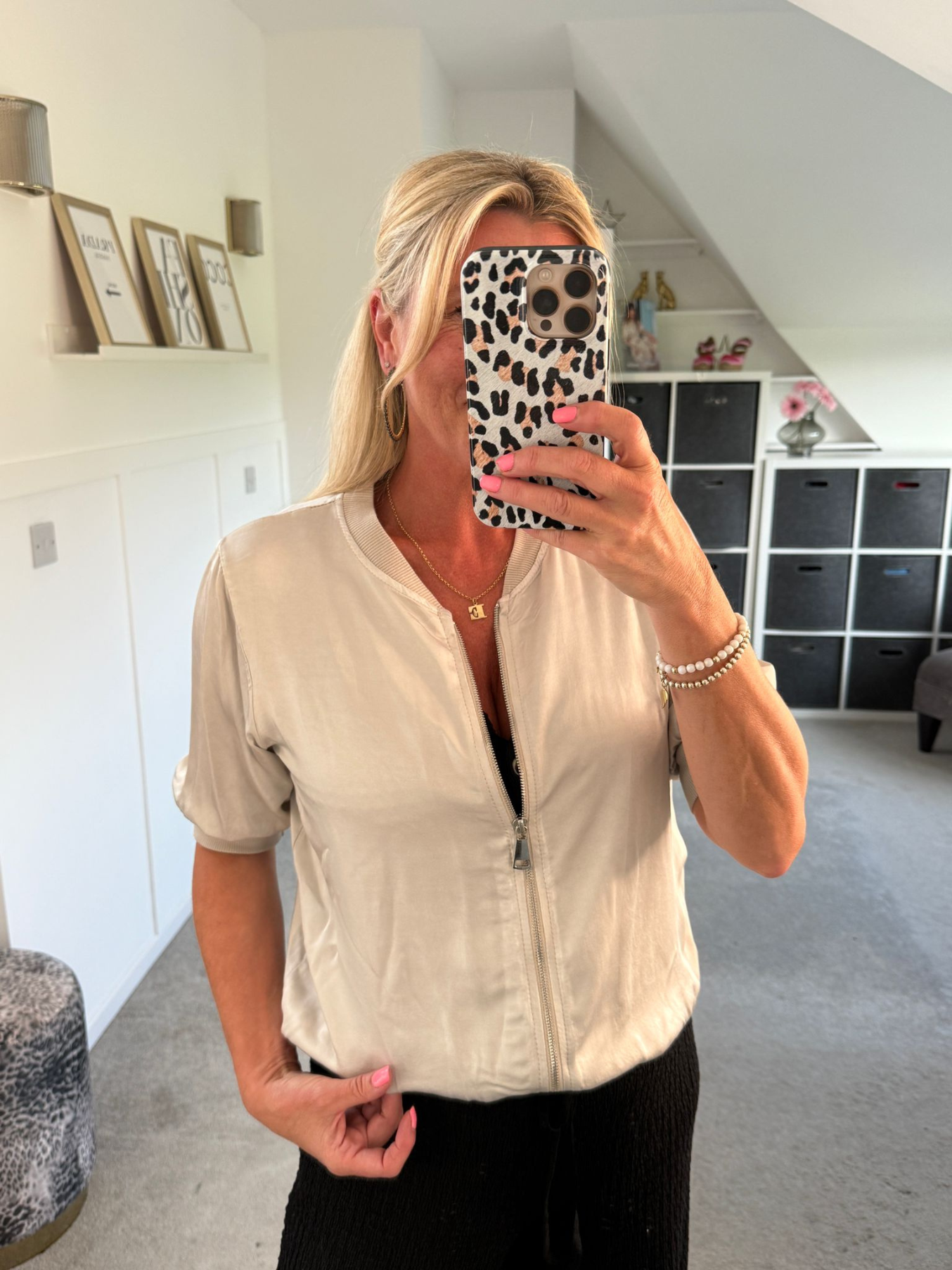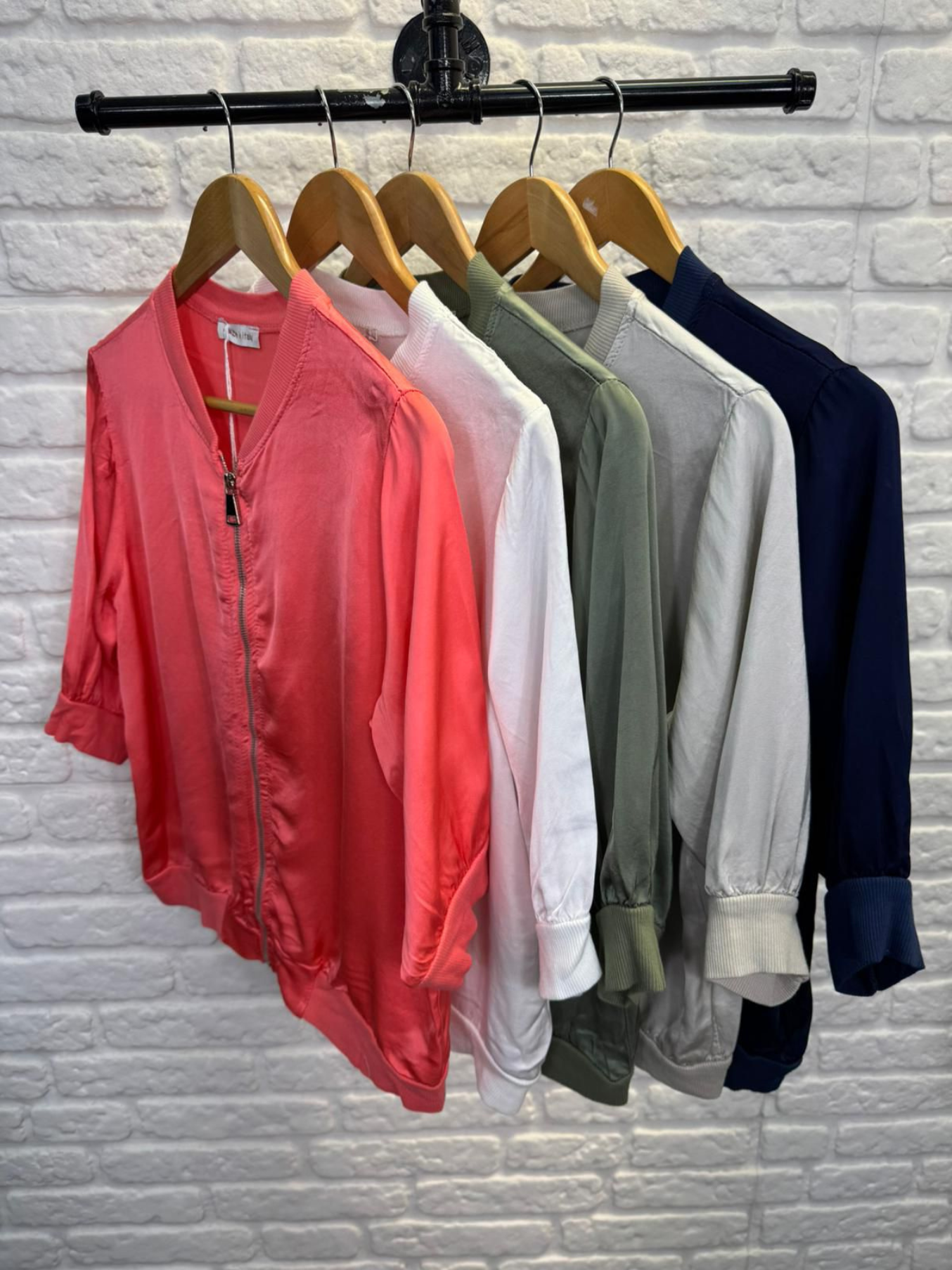 Add a touch of laid-back luxe to your wardrobe with this gorgeous silk mix bomber jacket!