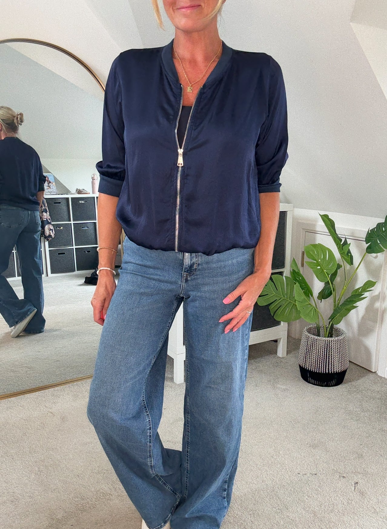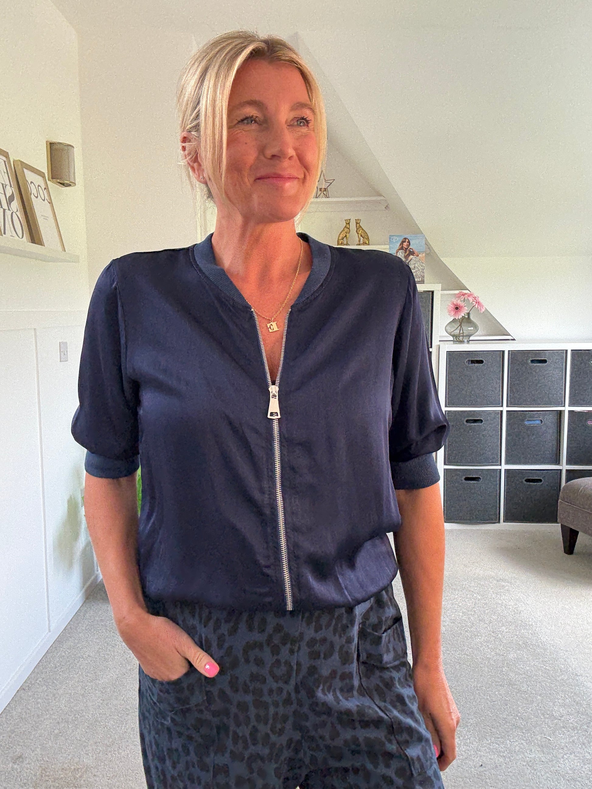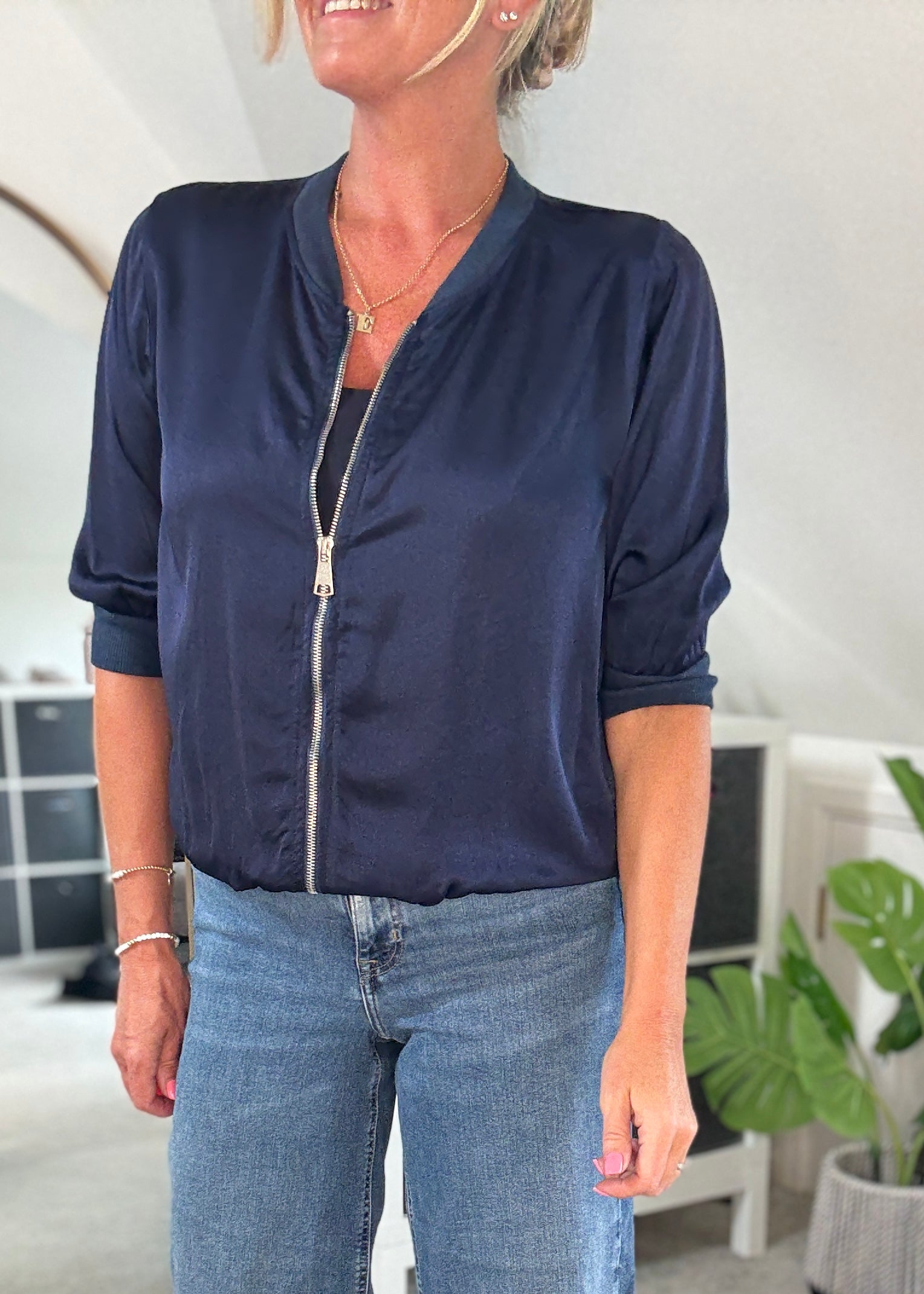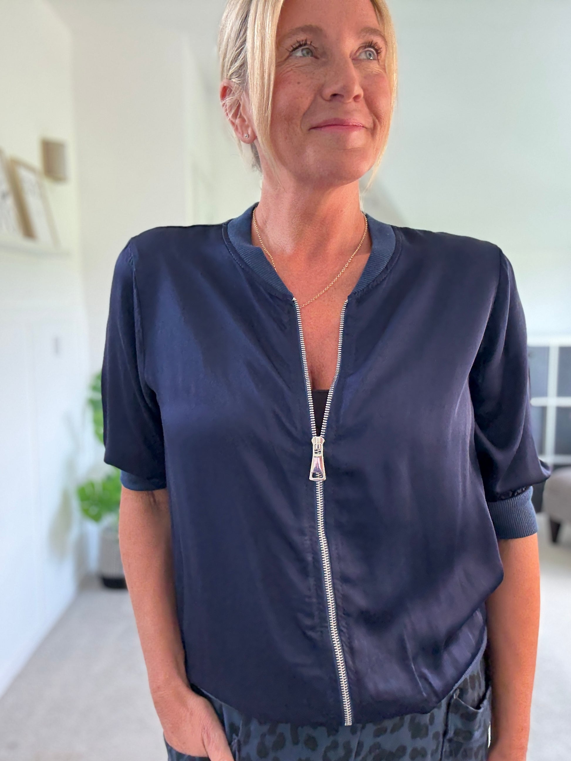 Navy Silk Mix 1/2 Sleeve Bomber Jacket